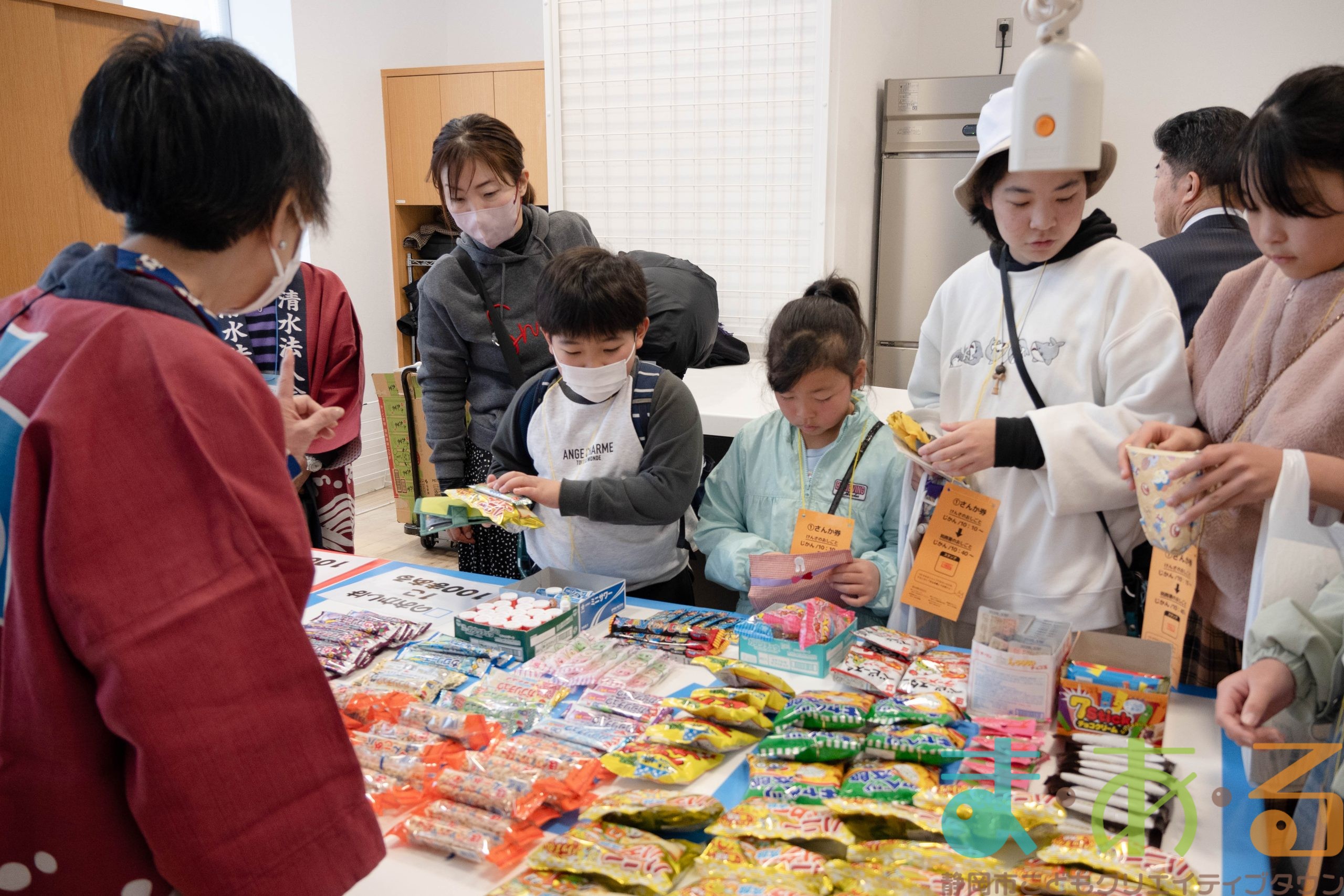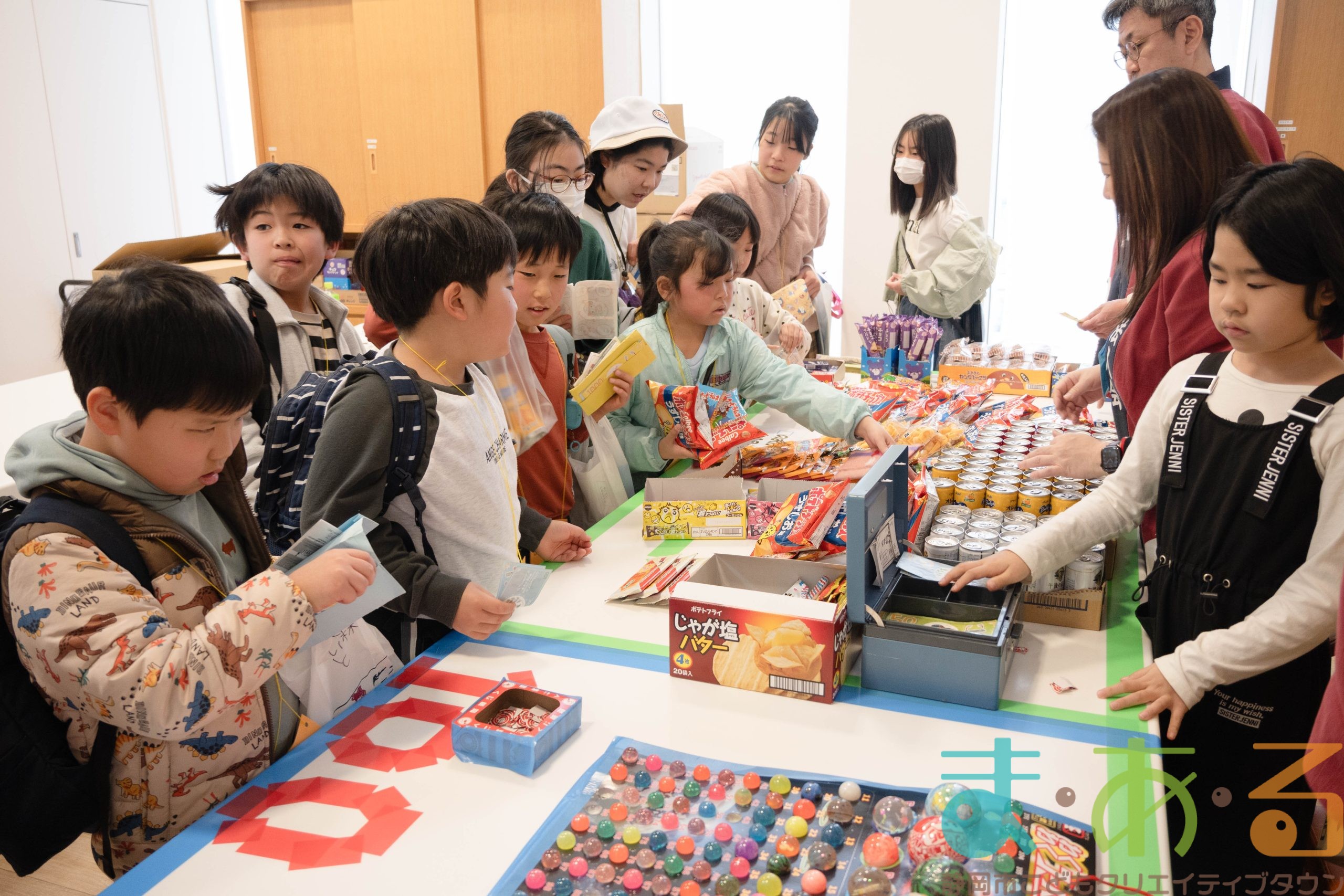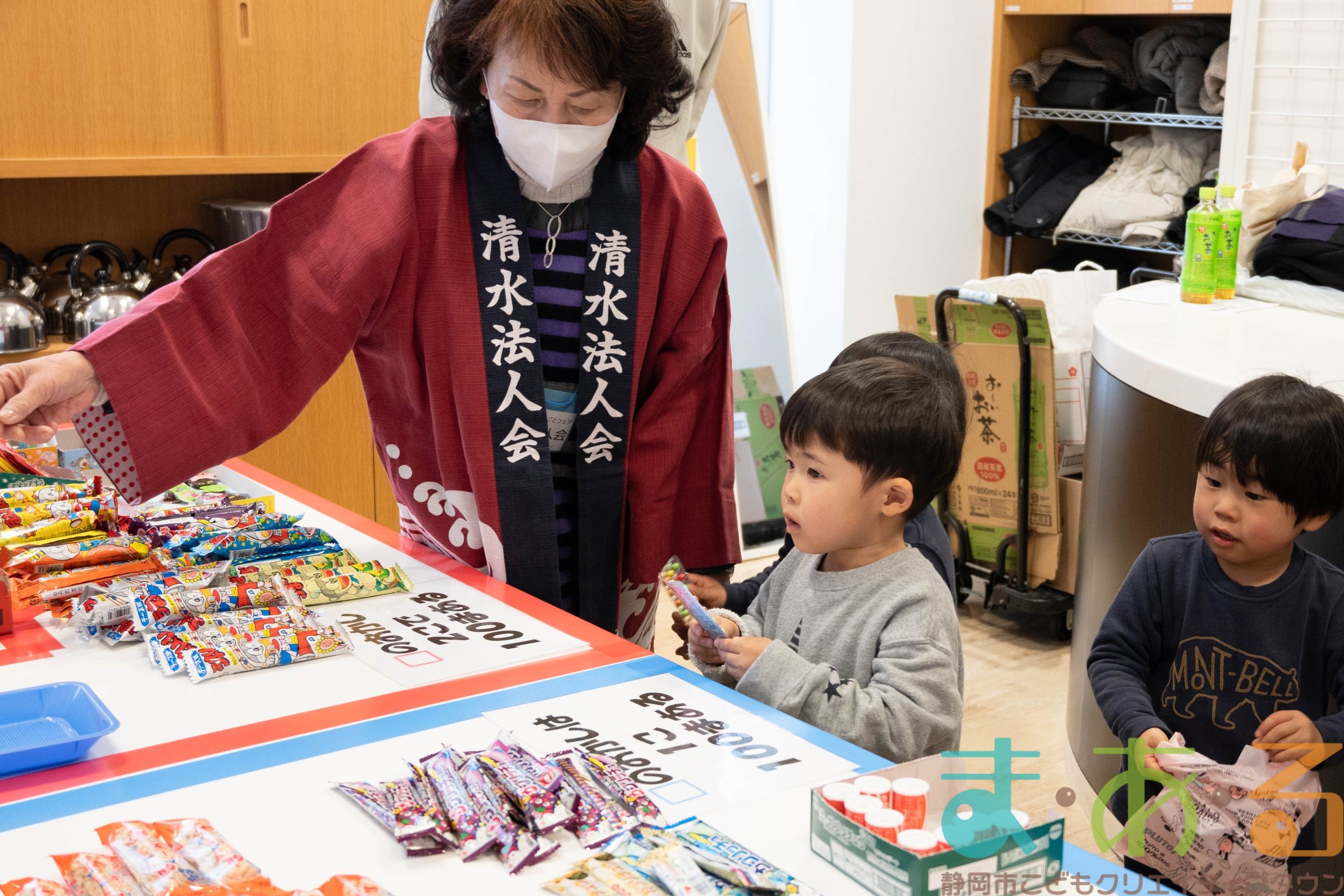 午前におしごとに参加した方は午前中のみ、午後におしごとに参加した方は午後のみ、「100まあるショップ」でお買い物をすることができます。