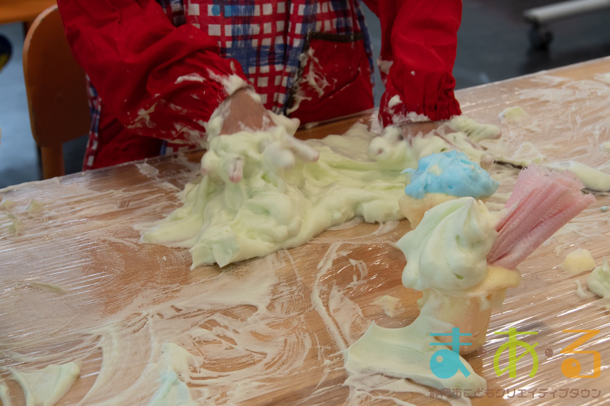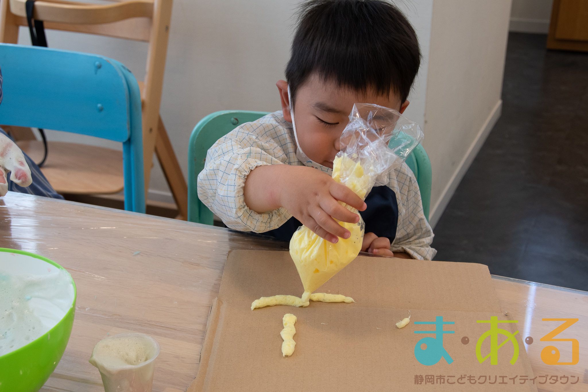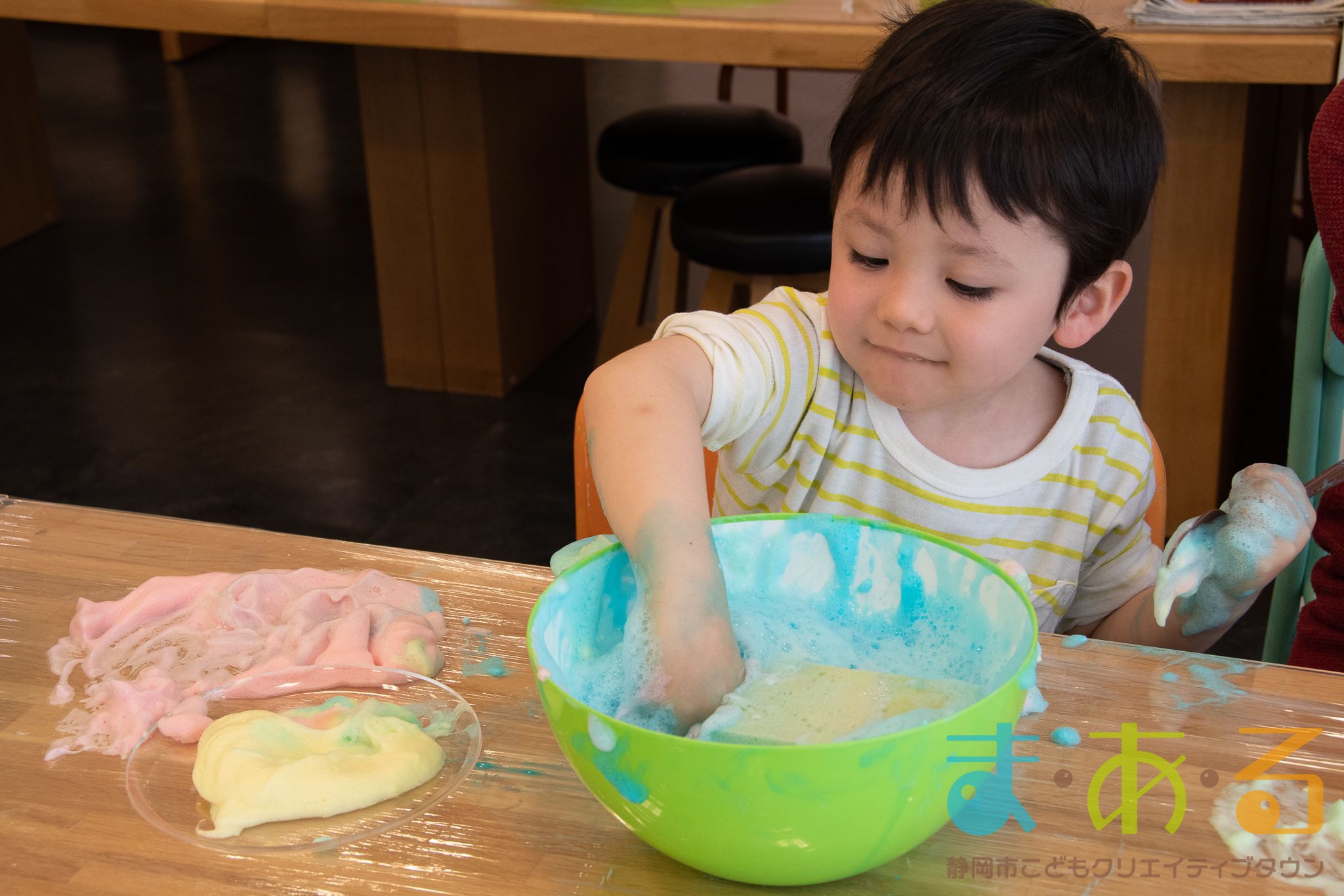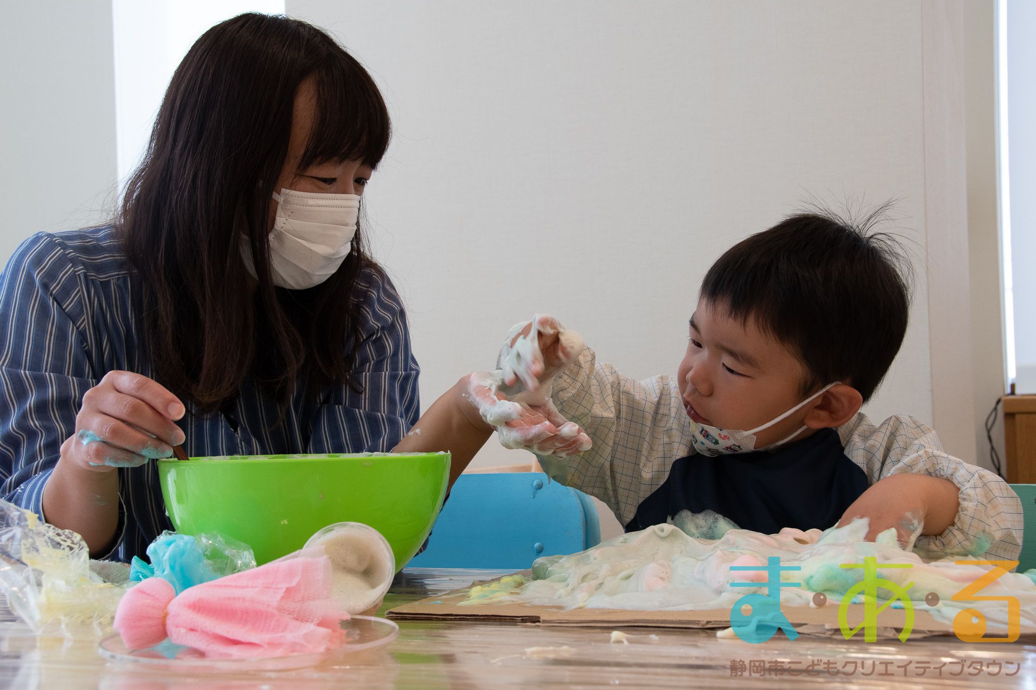 ぞうけいあそび(ぶくぶく・もこもこ・あわであそぼう) ちびっこプログラムの様子(2021年4月9日開催)