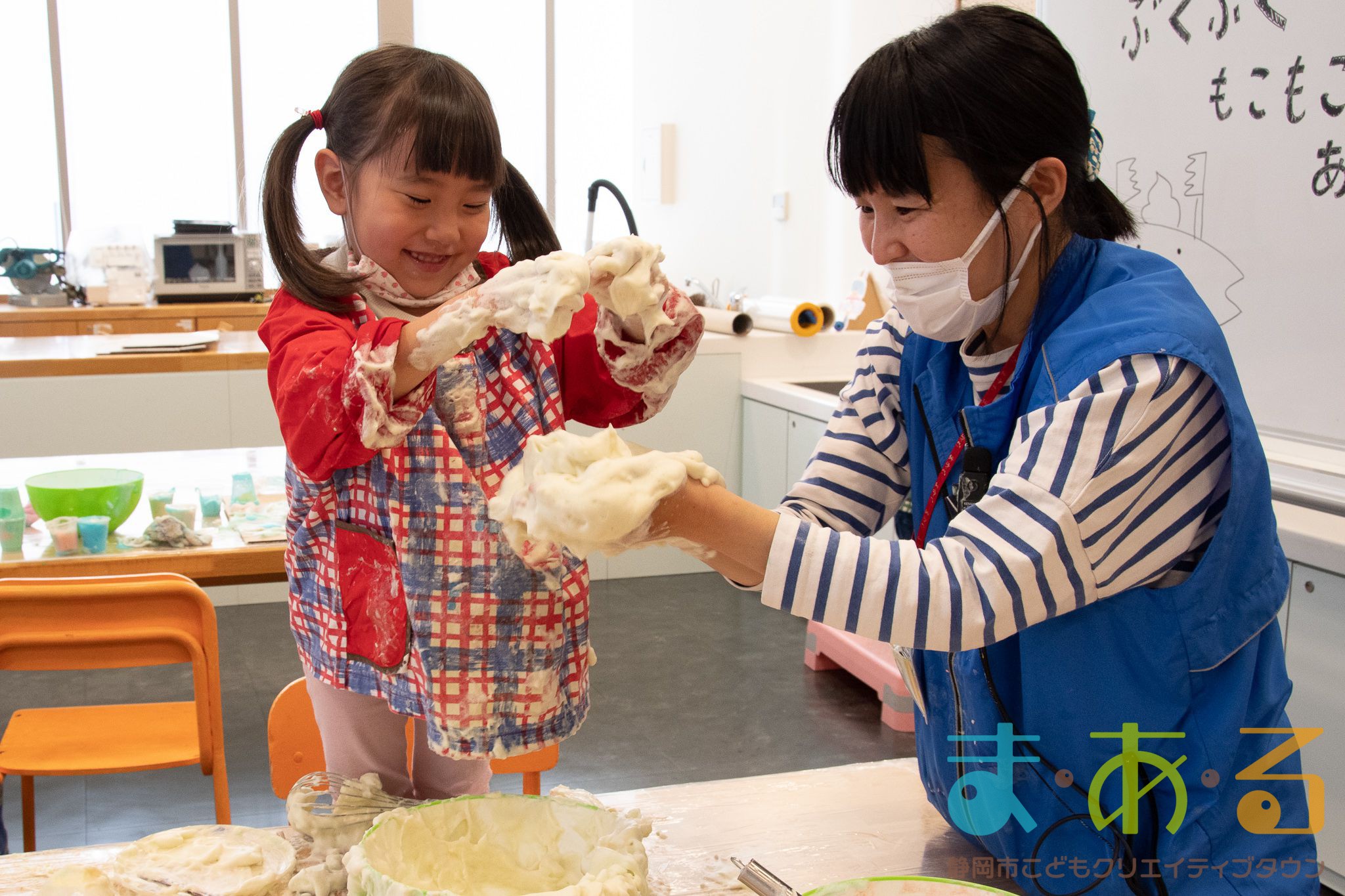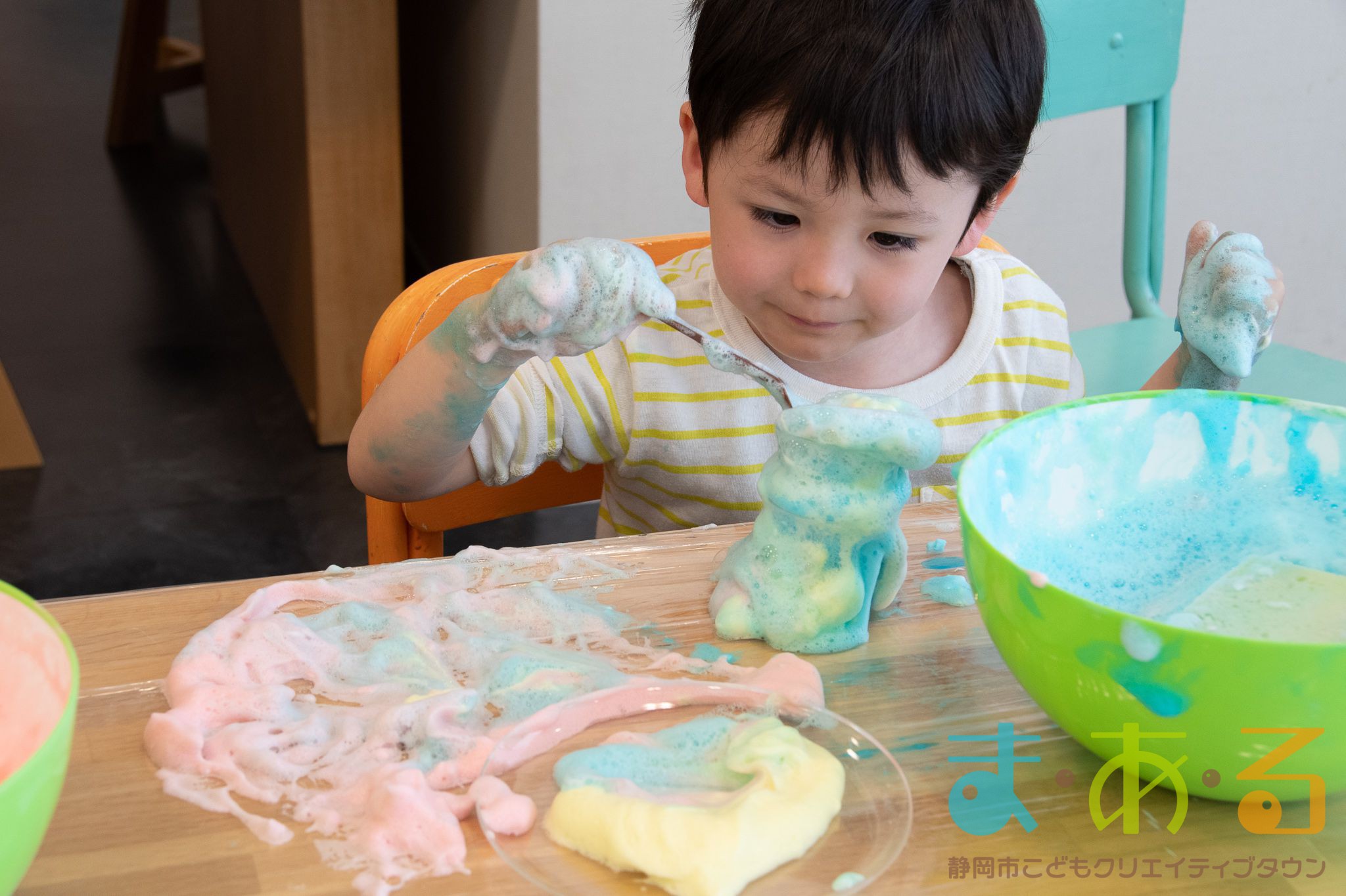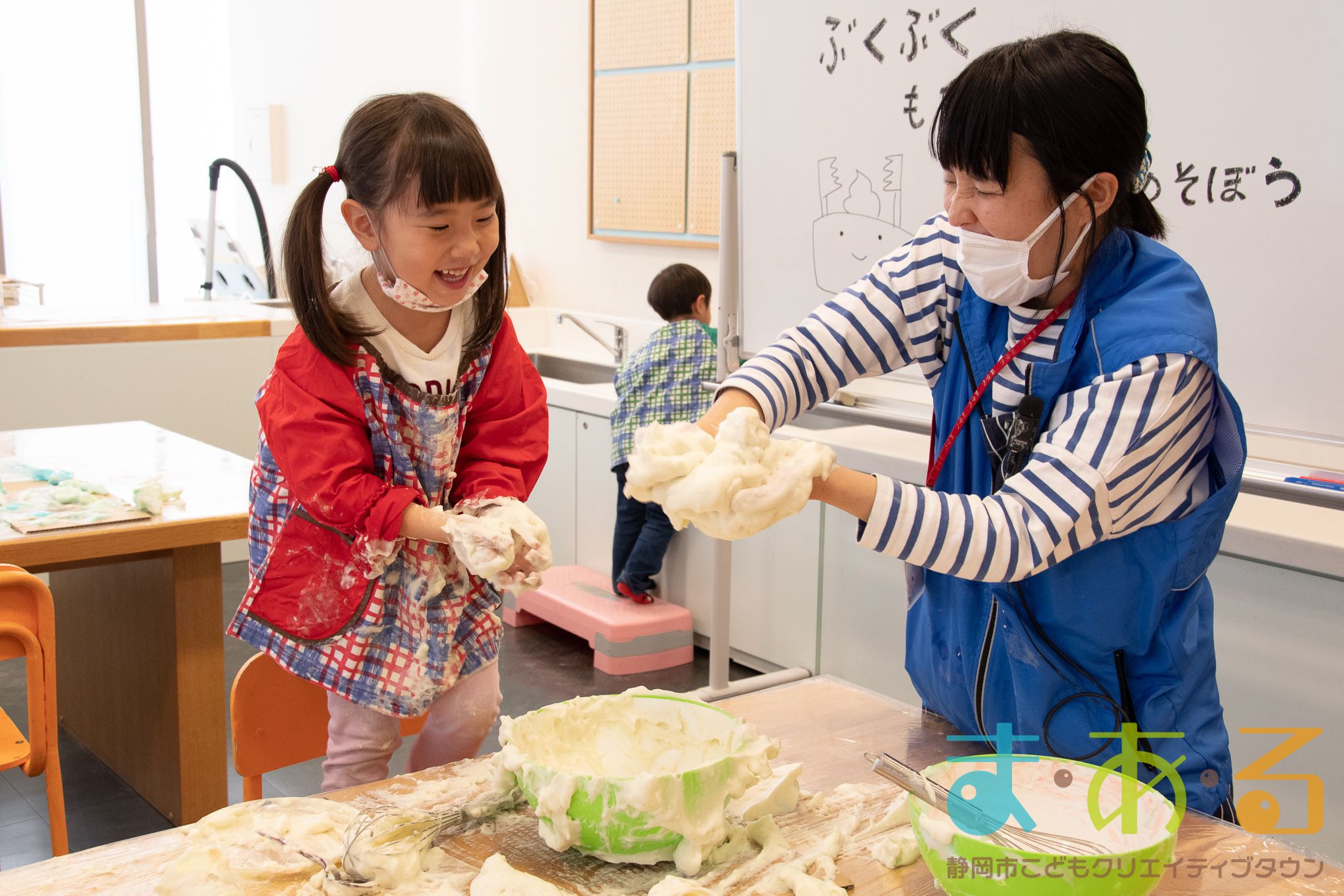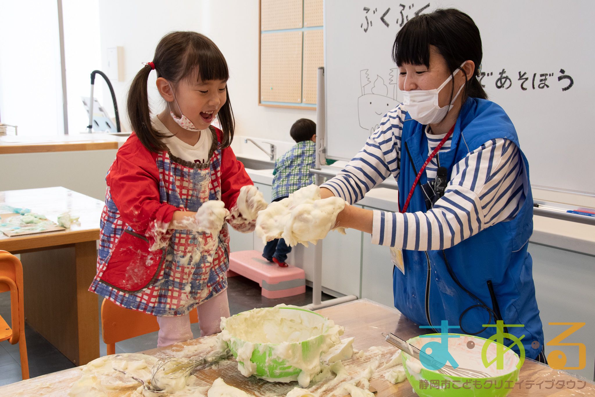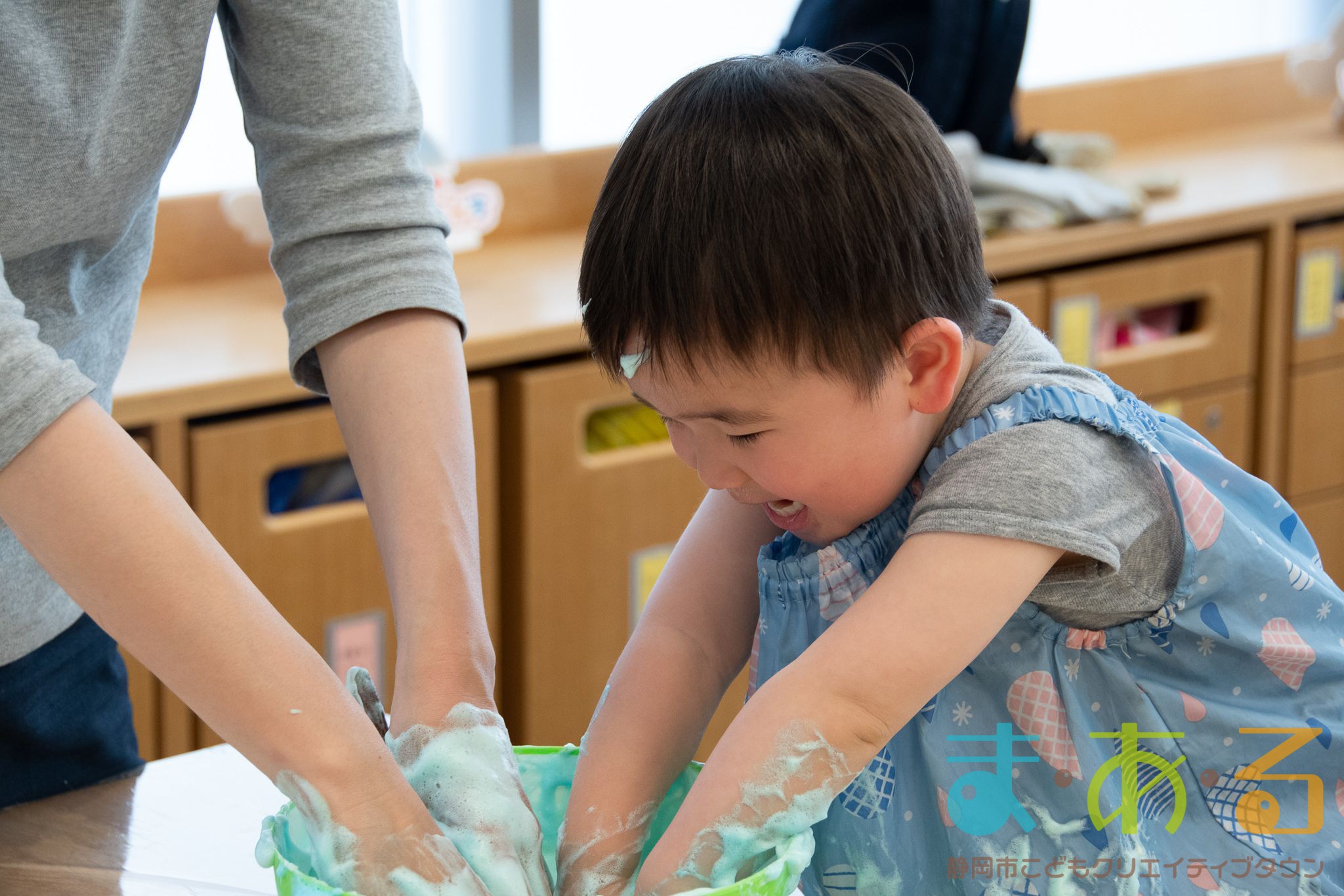 ぞうけいあそび(ぶくぶく・もこもこ・あわであそぼう) ちびっこプログラムの様子(2021年4月9日開催)