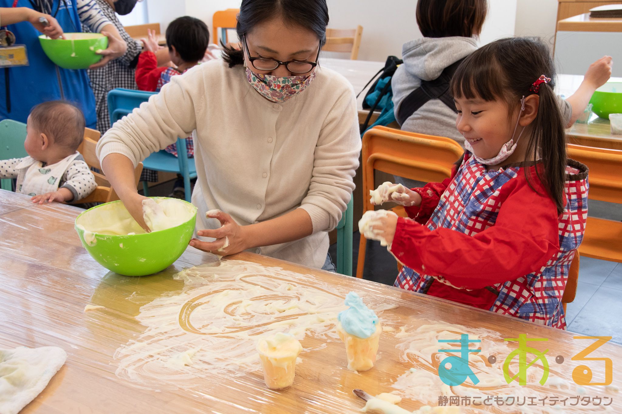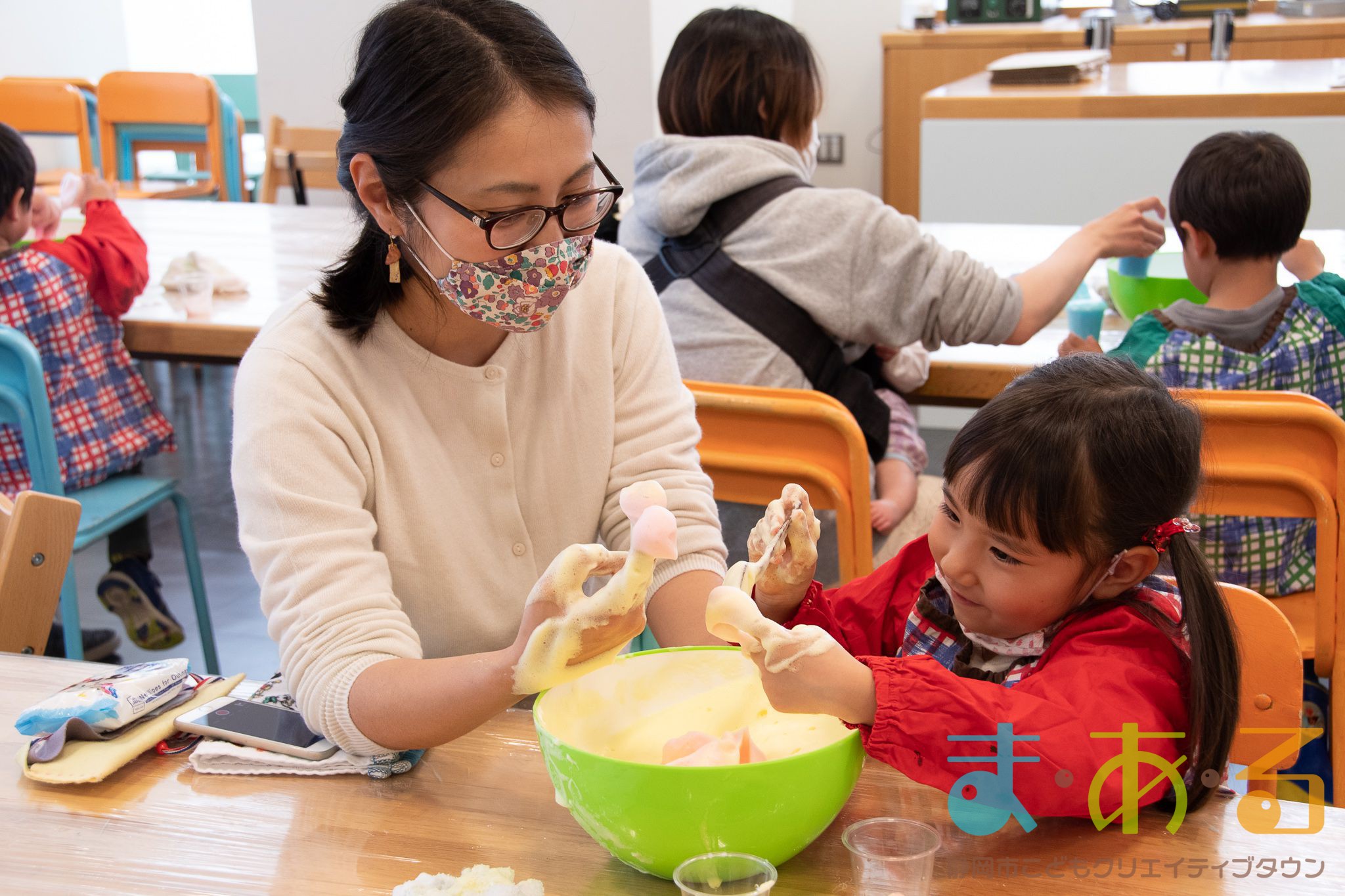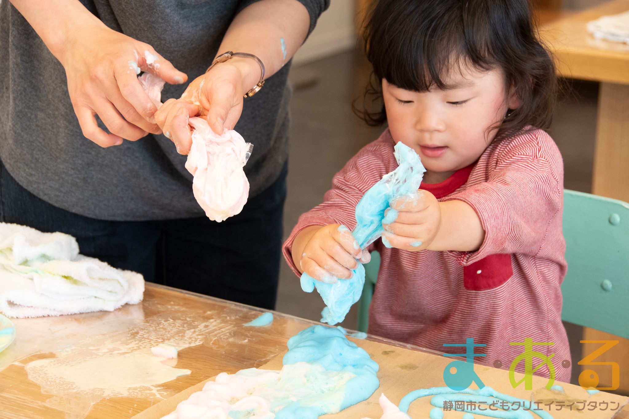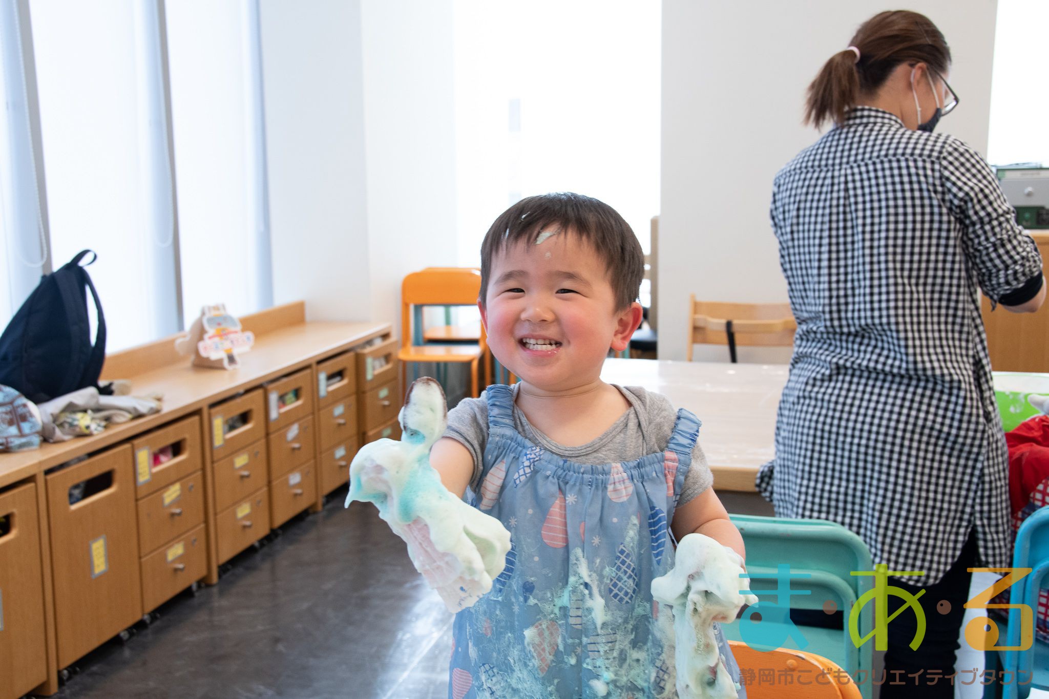 ぞうけいあそび(ぶくぶく・もこもこ・あわであそぼう) ちびっこプログラムの様子(2021年4月9日開催)