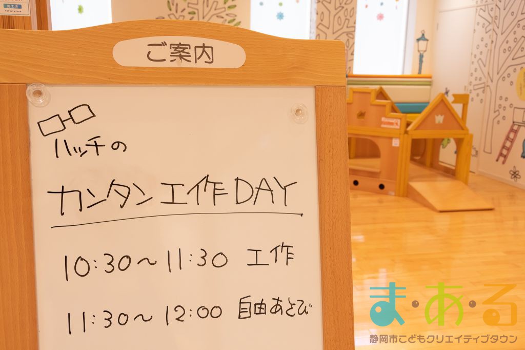 「カンタン!工作DAY」は工作遊びと館内利用(ひだまりパーク、サーキット、落書きウォールでのあそび)がセットになったプログラムです。