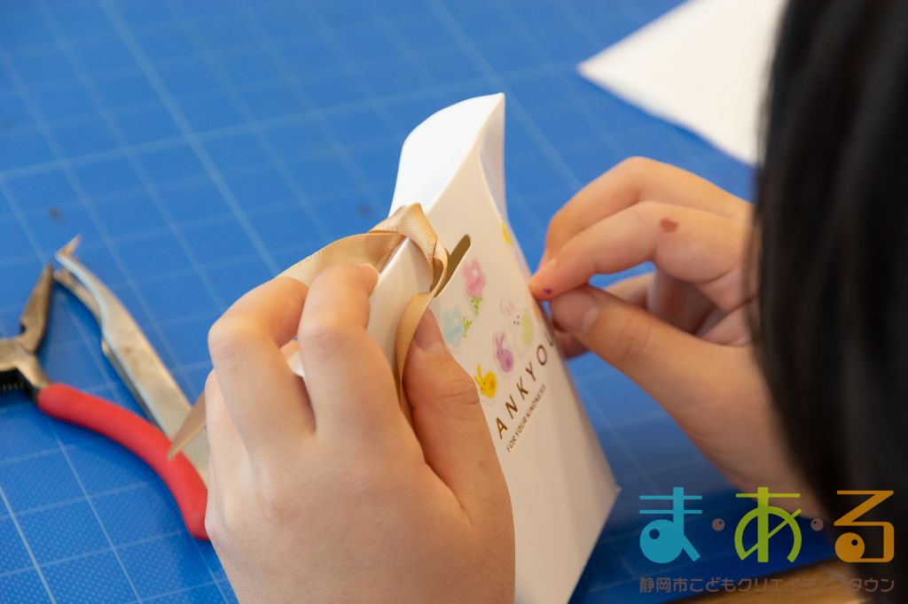最後はお持ち帰り用のギフトボックスをデコレーションしました。