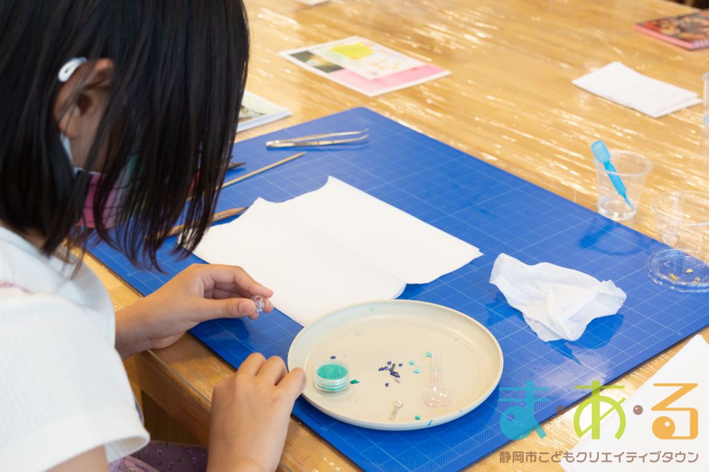 自分の数字、自分の色が分かったら、今度はハーバリウムのマスクチャームを作ります。