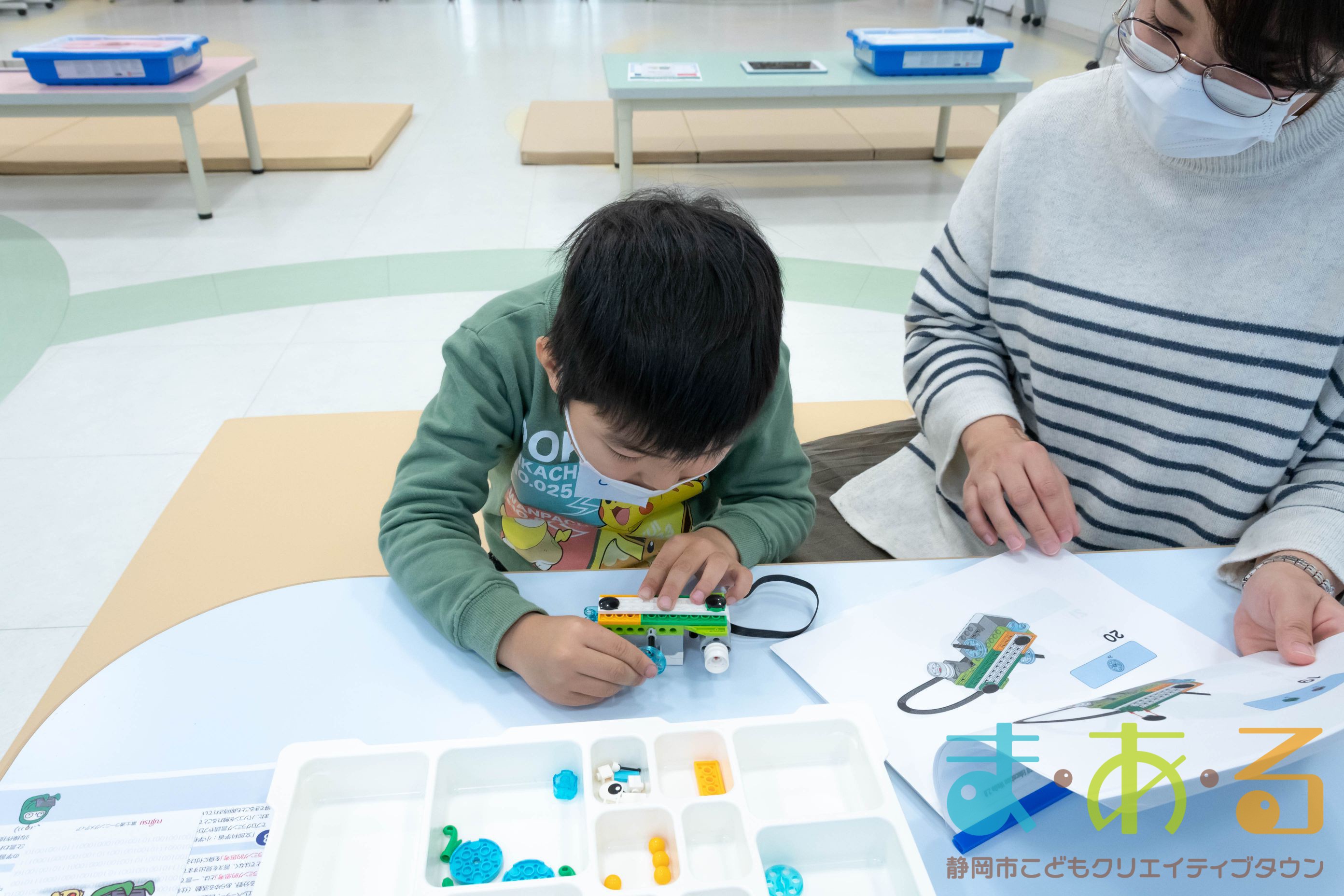 今回も、レゴ®We Do 2.0を組み立てて、プログラミングで光らせたり、音を出したり、走らせたりする講座を開催しました。