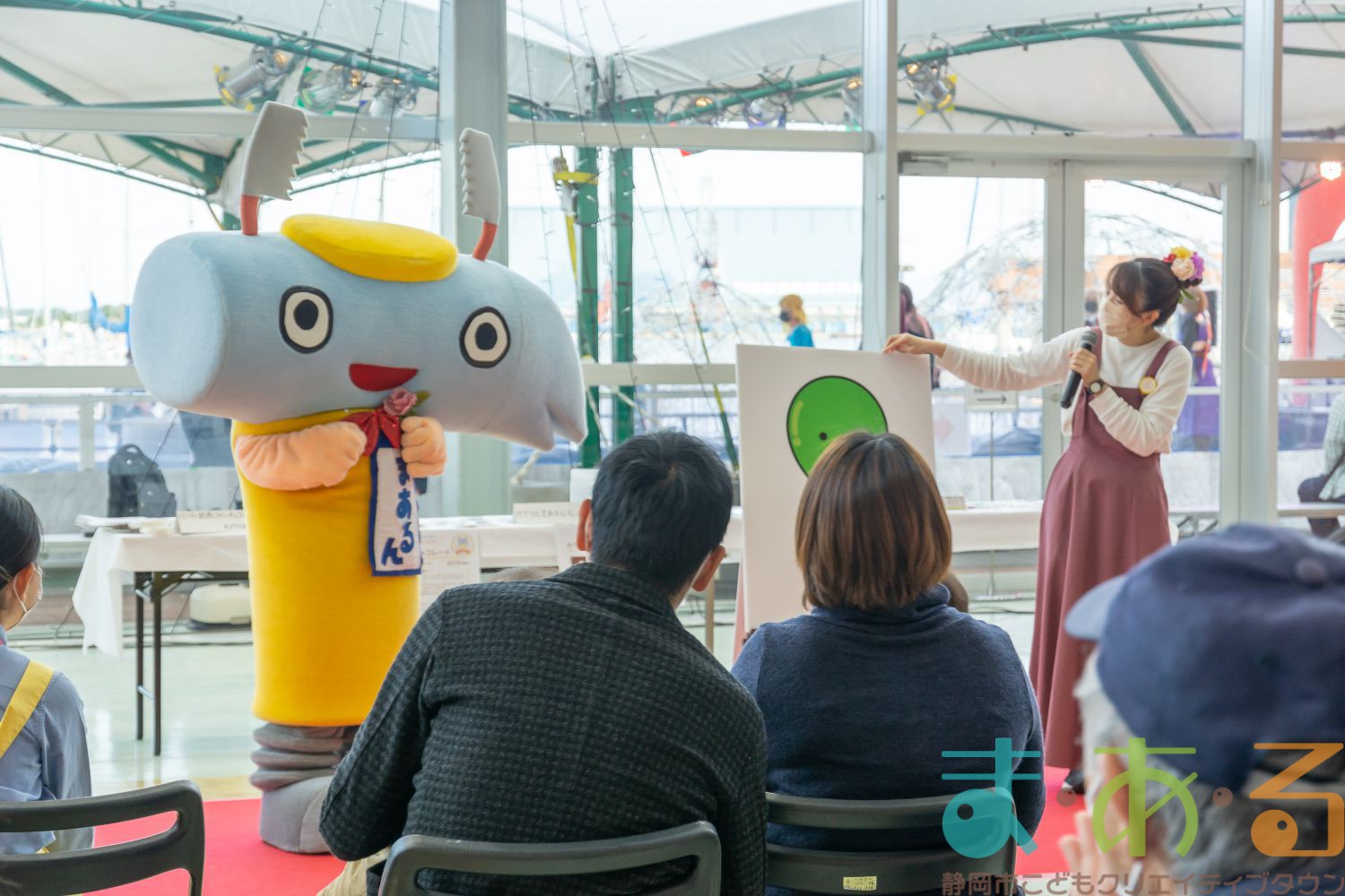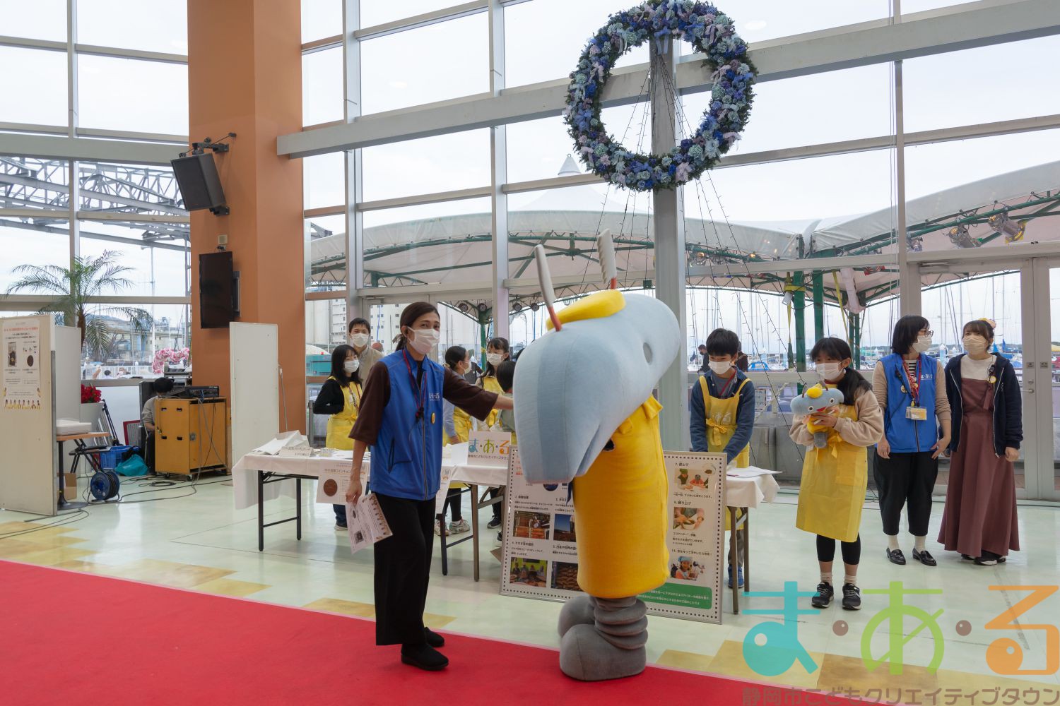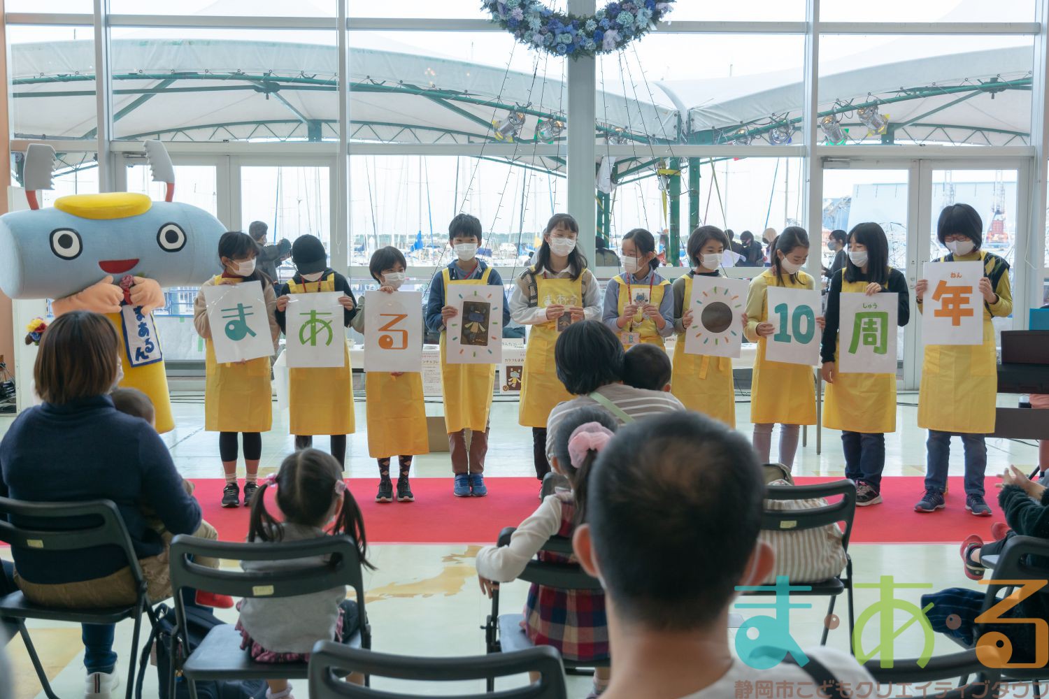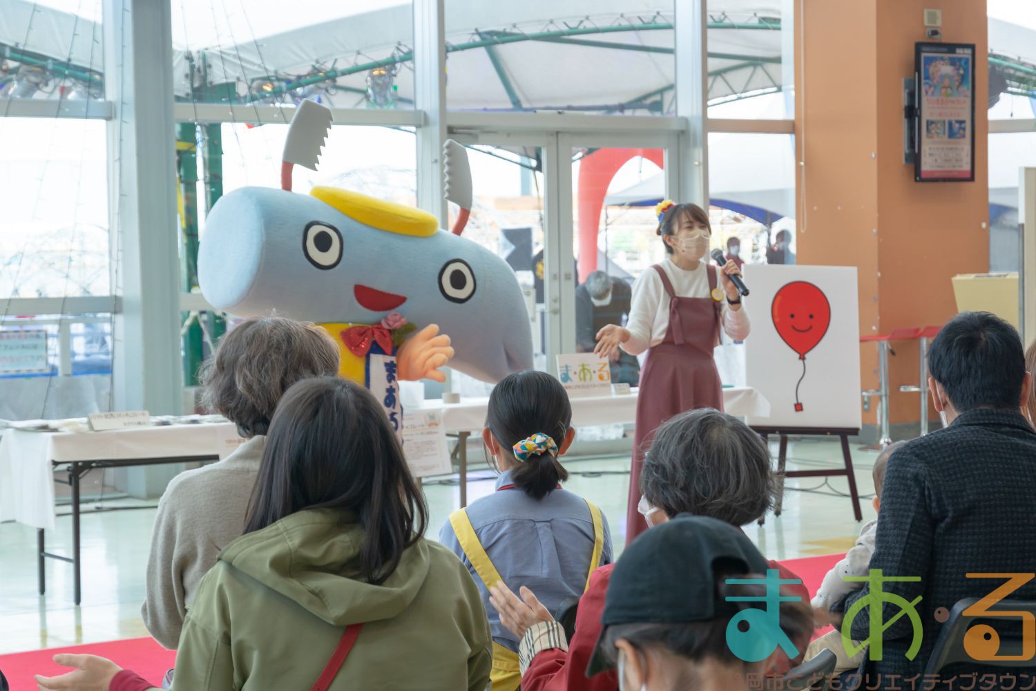 お披露目会を盛り上げるために、会場には「るんるん♪おんがくあそび」のメンバーと、ま・あ・る公式キャラクター「まあるん」も駆けつけました。
