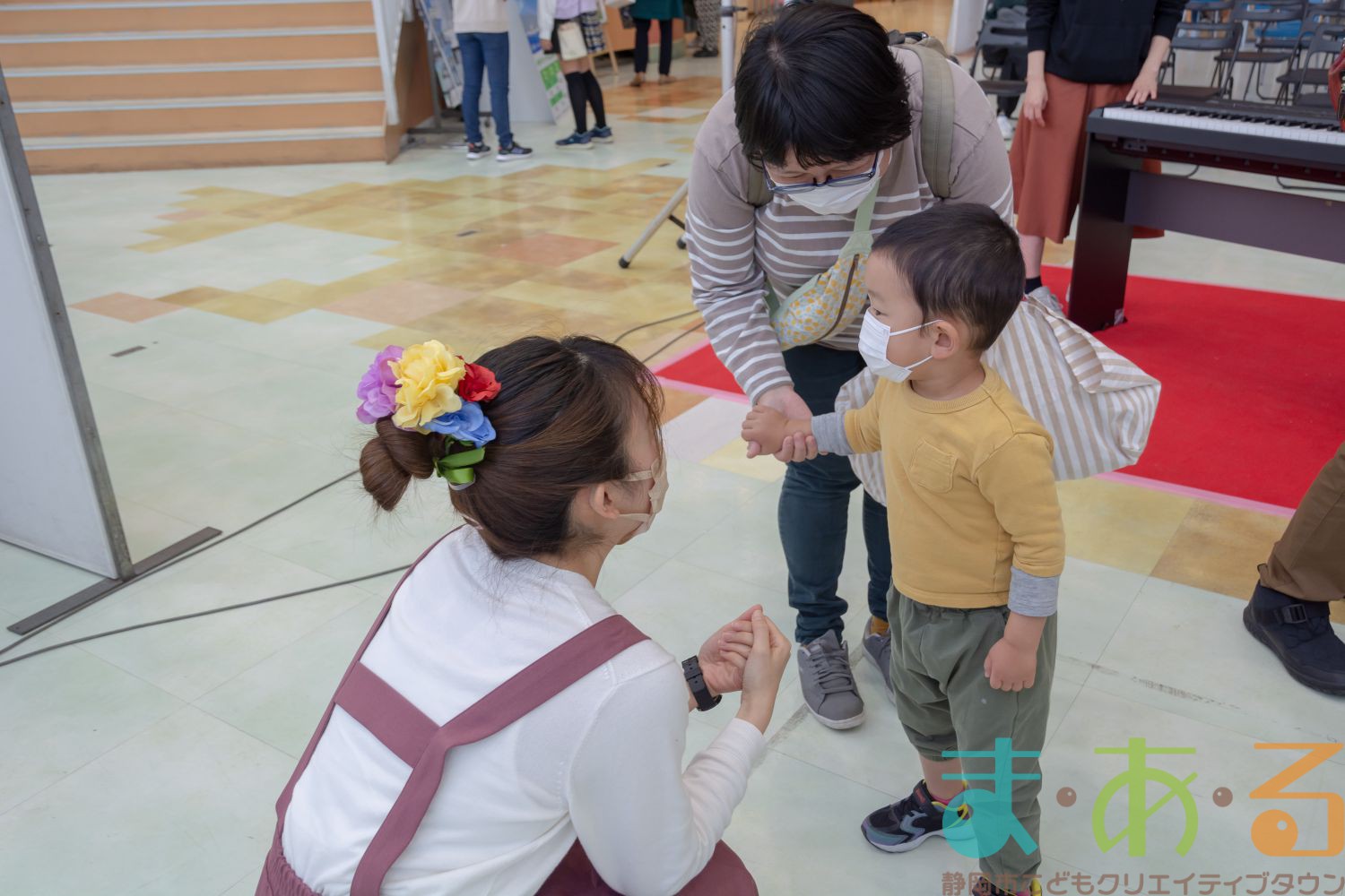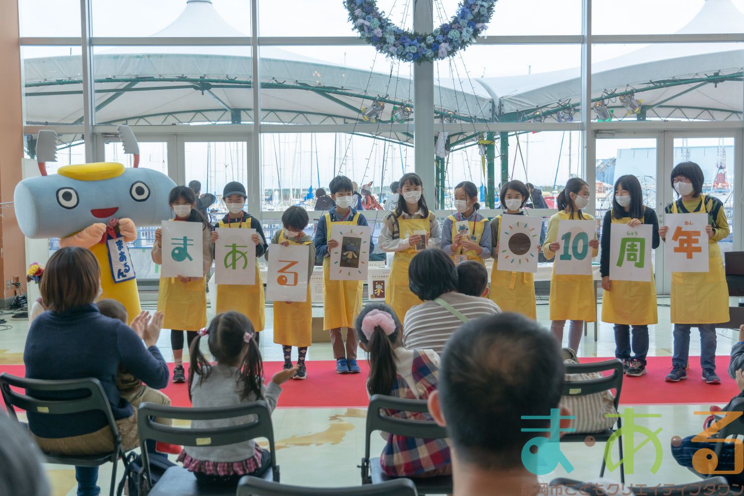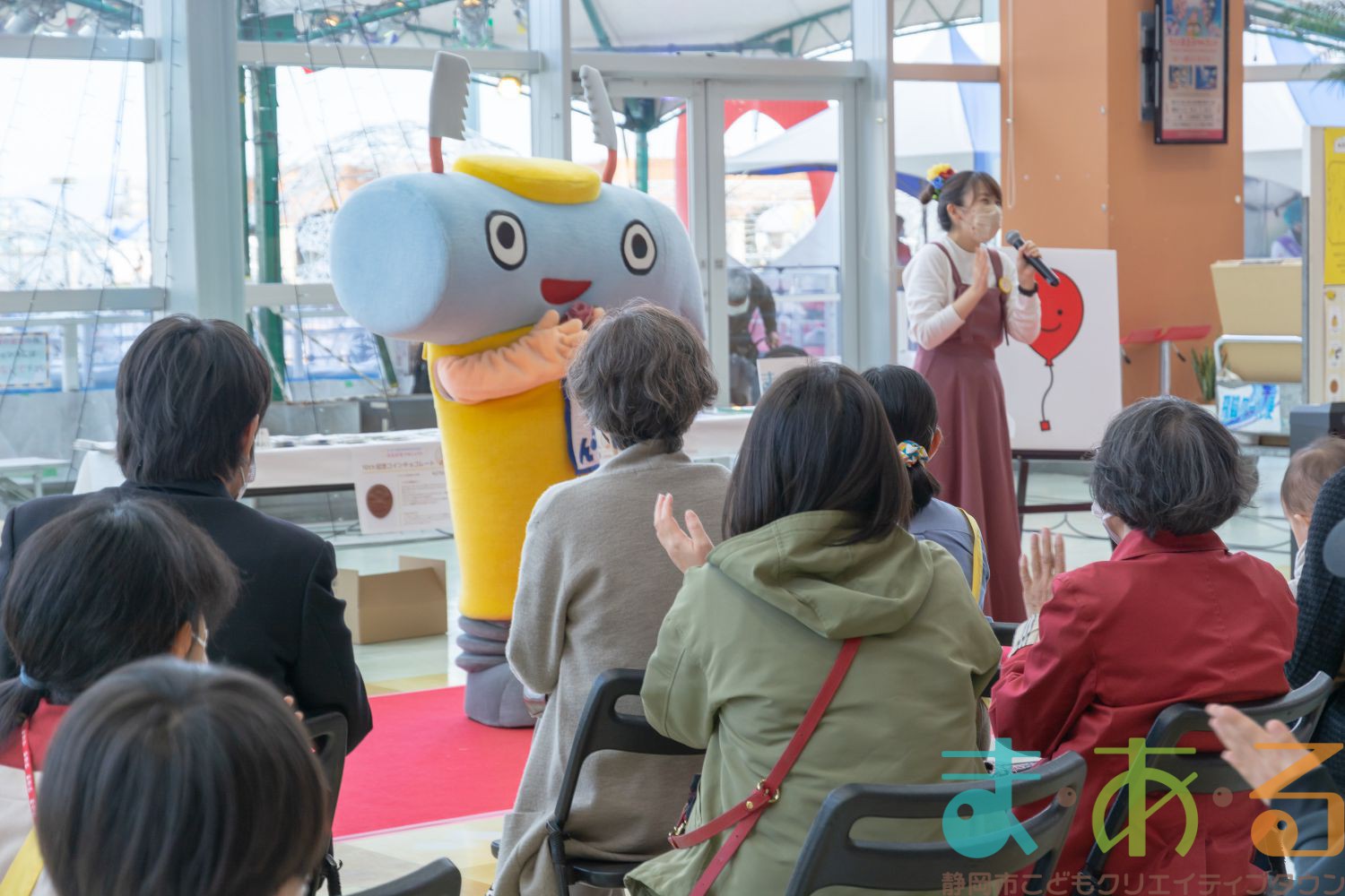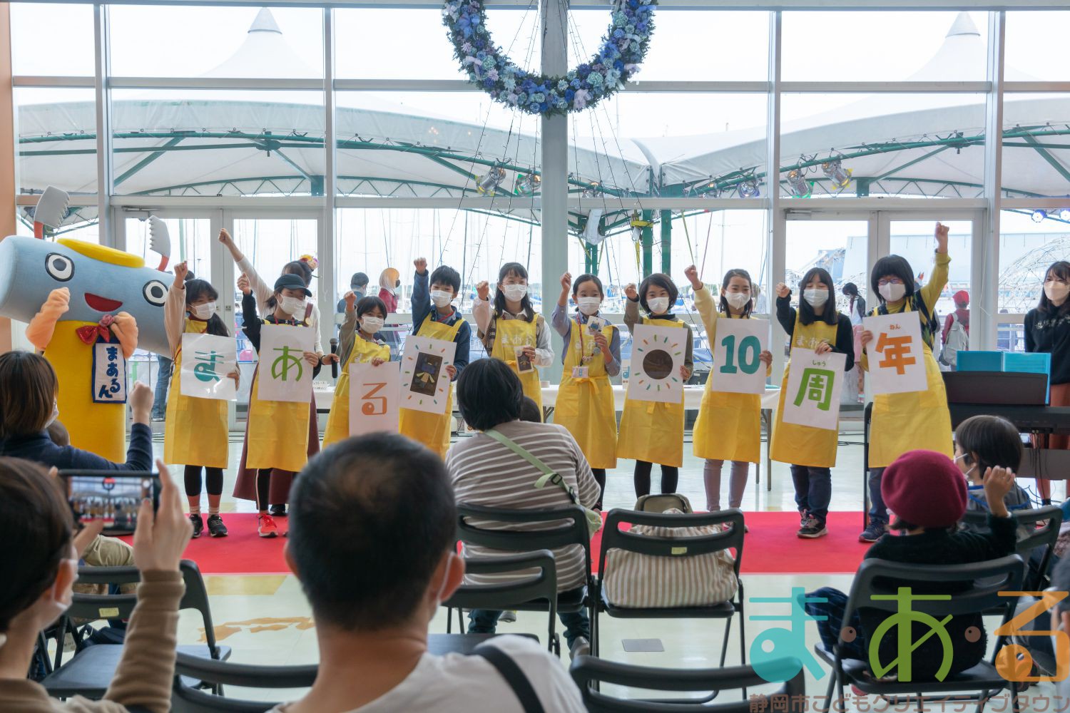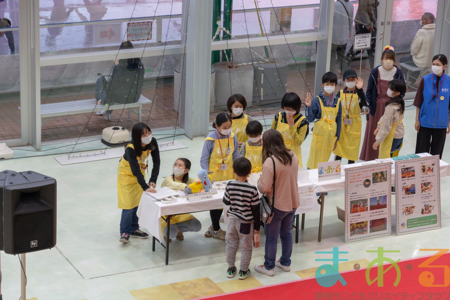 お披露目会を盛り上げるために、会場には「るんるん♪おんがくあそび」のメンバーと、ま・あ・る公式キャラクター「まあるん」も駆けつけました。