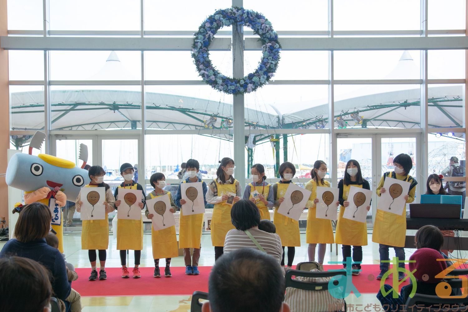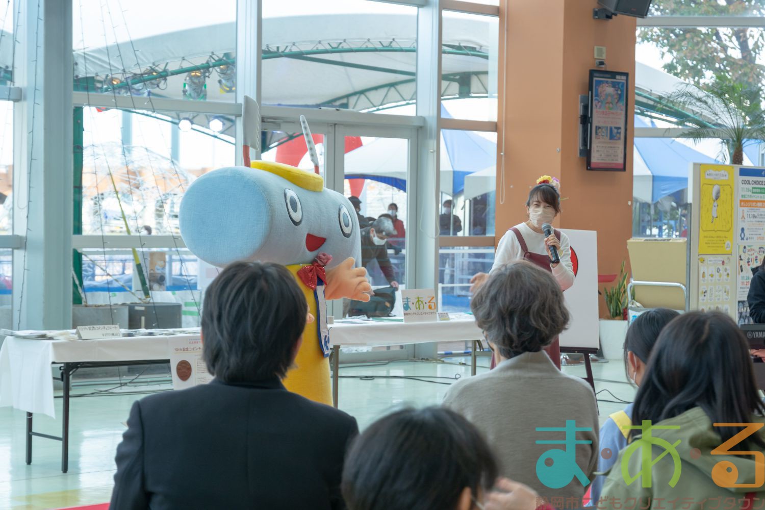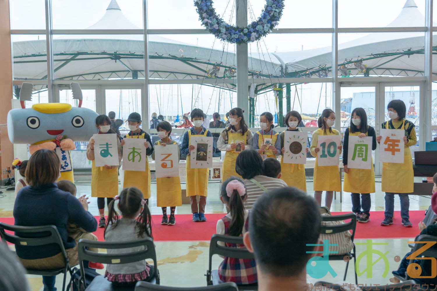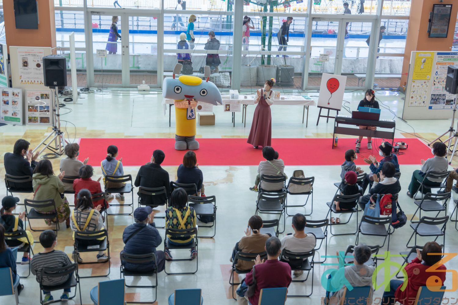 お披露目会を盛り上げるために、会場には「るんるん♪おんがくあそび」のメンバーと、ま・あ・る公式キャラクター「まあるん」も駆けつけました。