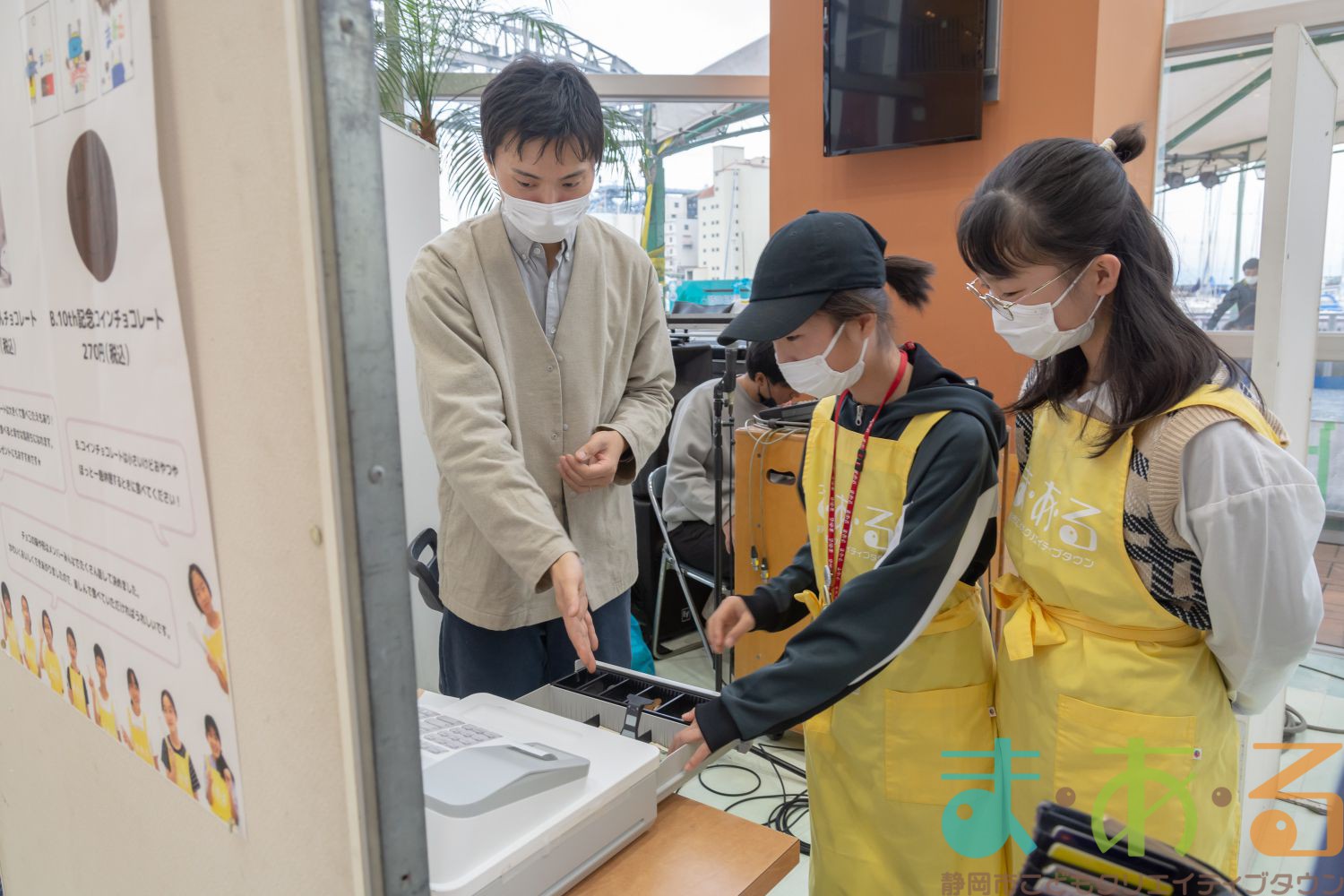 行列が落ち着いてきたところで、concheさんと交代してレジにも挑戦!
