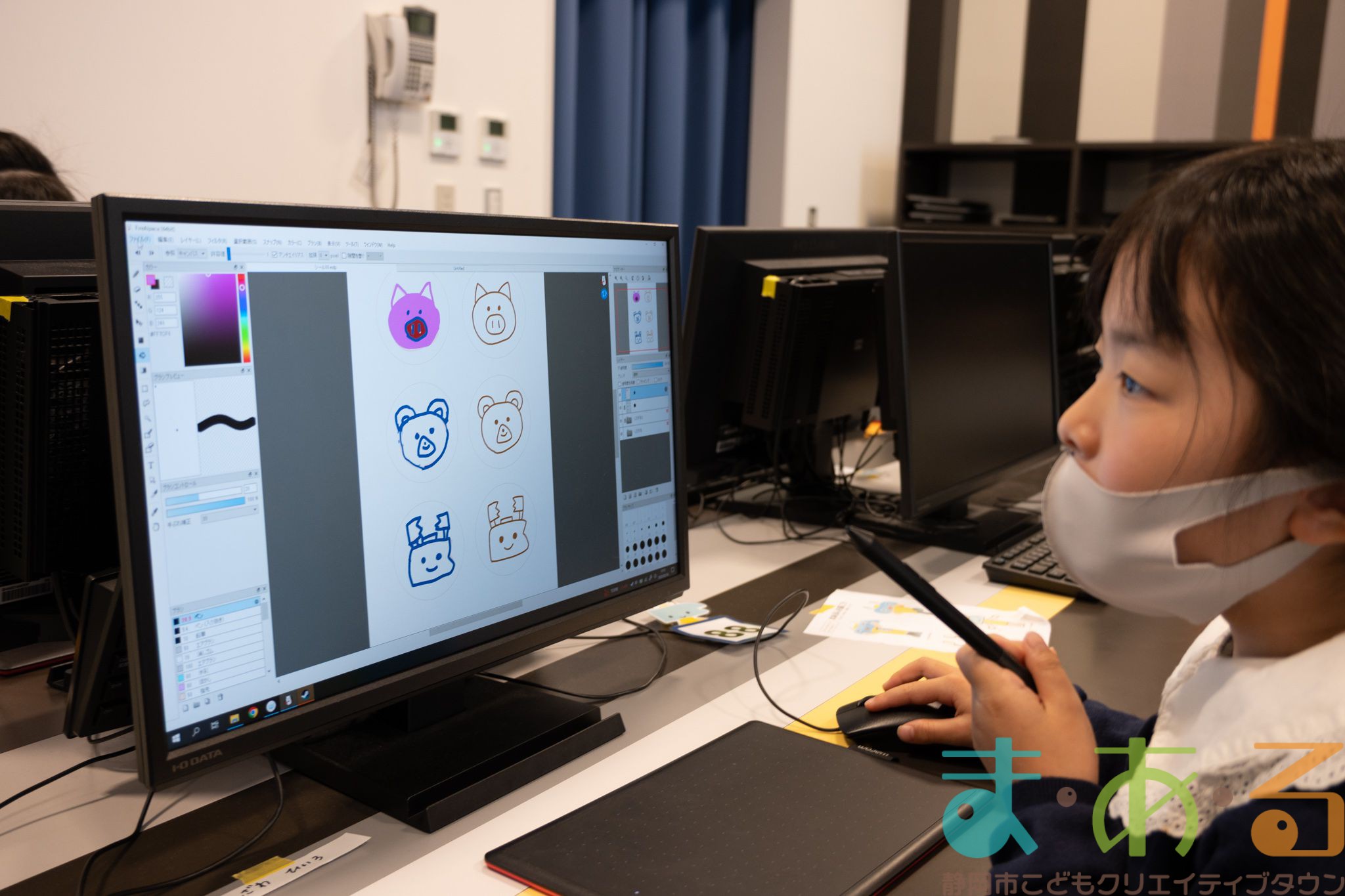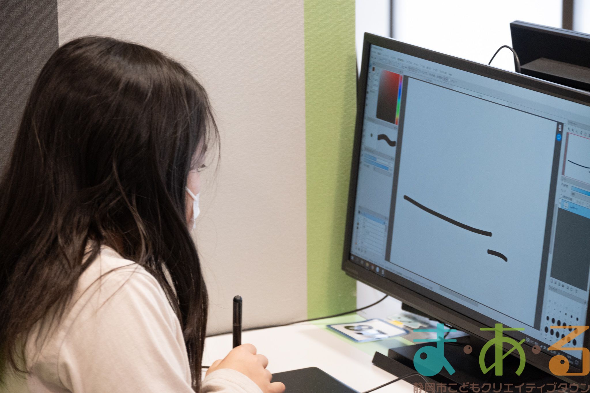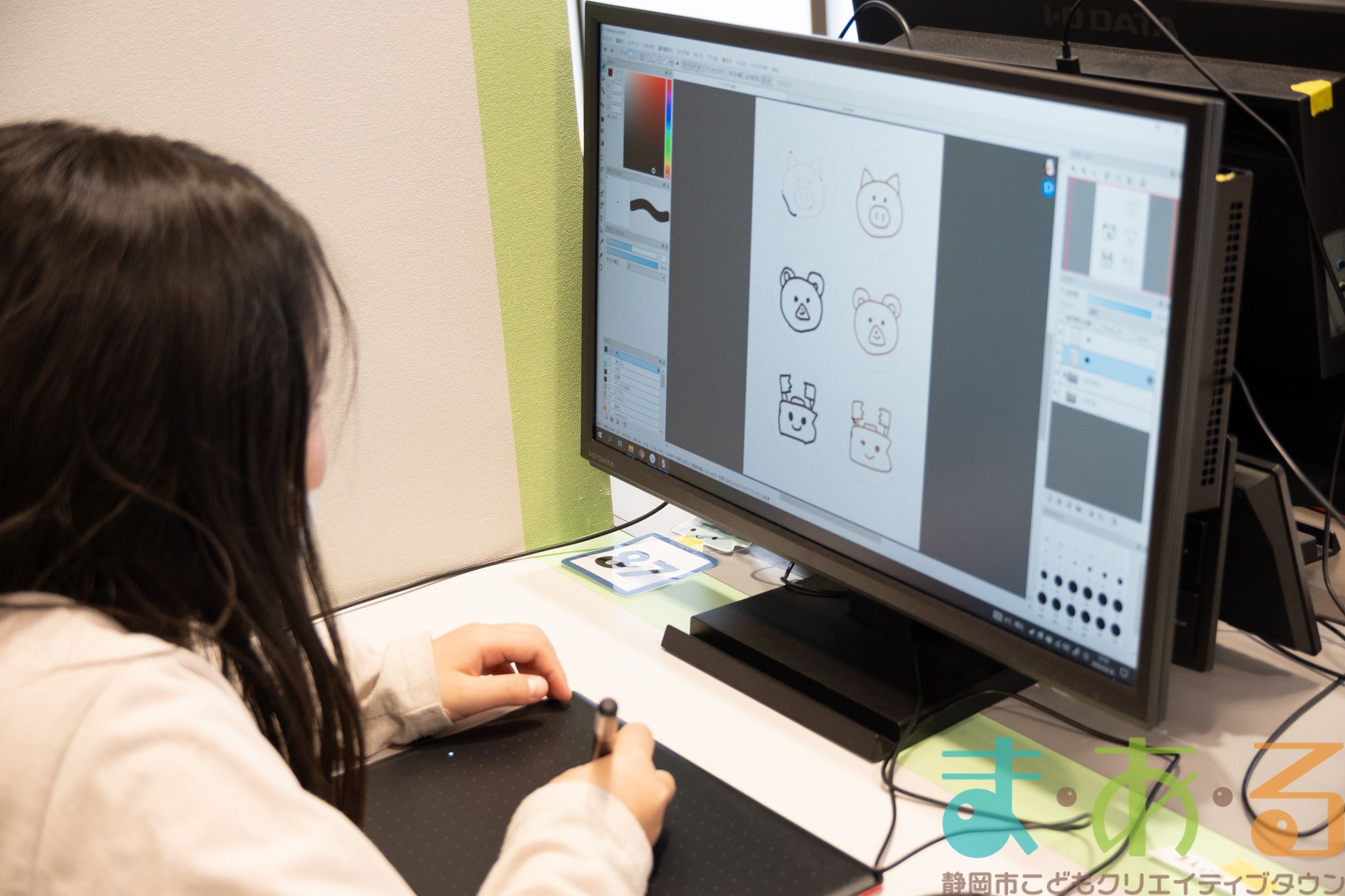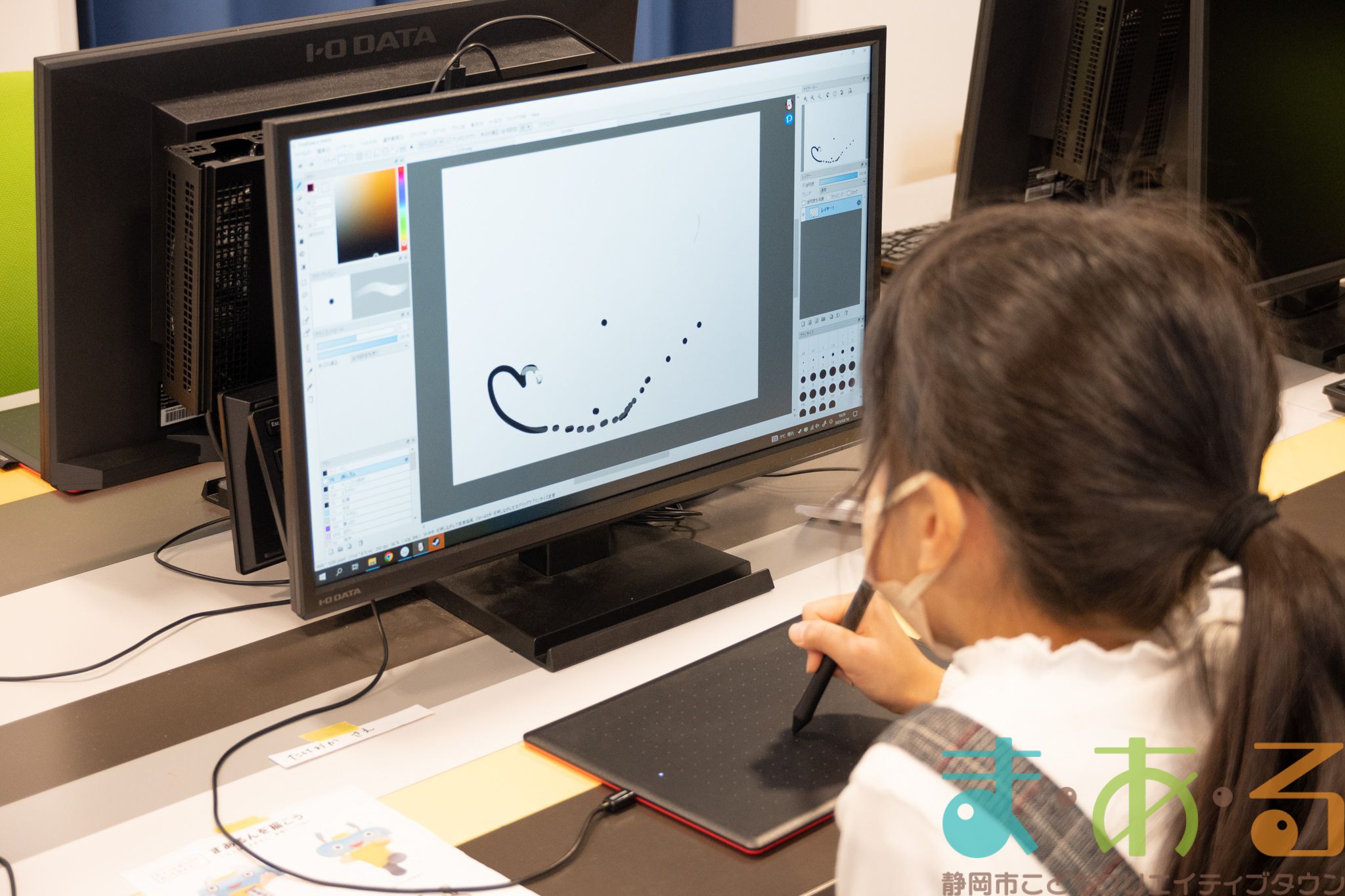 シール作りに入る前に、実際にペンタブレットを使いながら、ペンタブレットってなに?どうやって操作するの?というところからじっくりと学んでいきます。