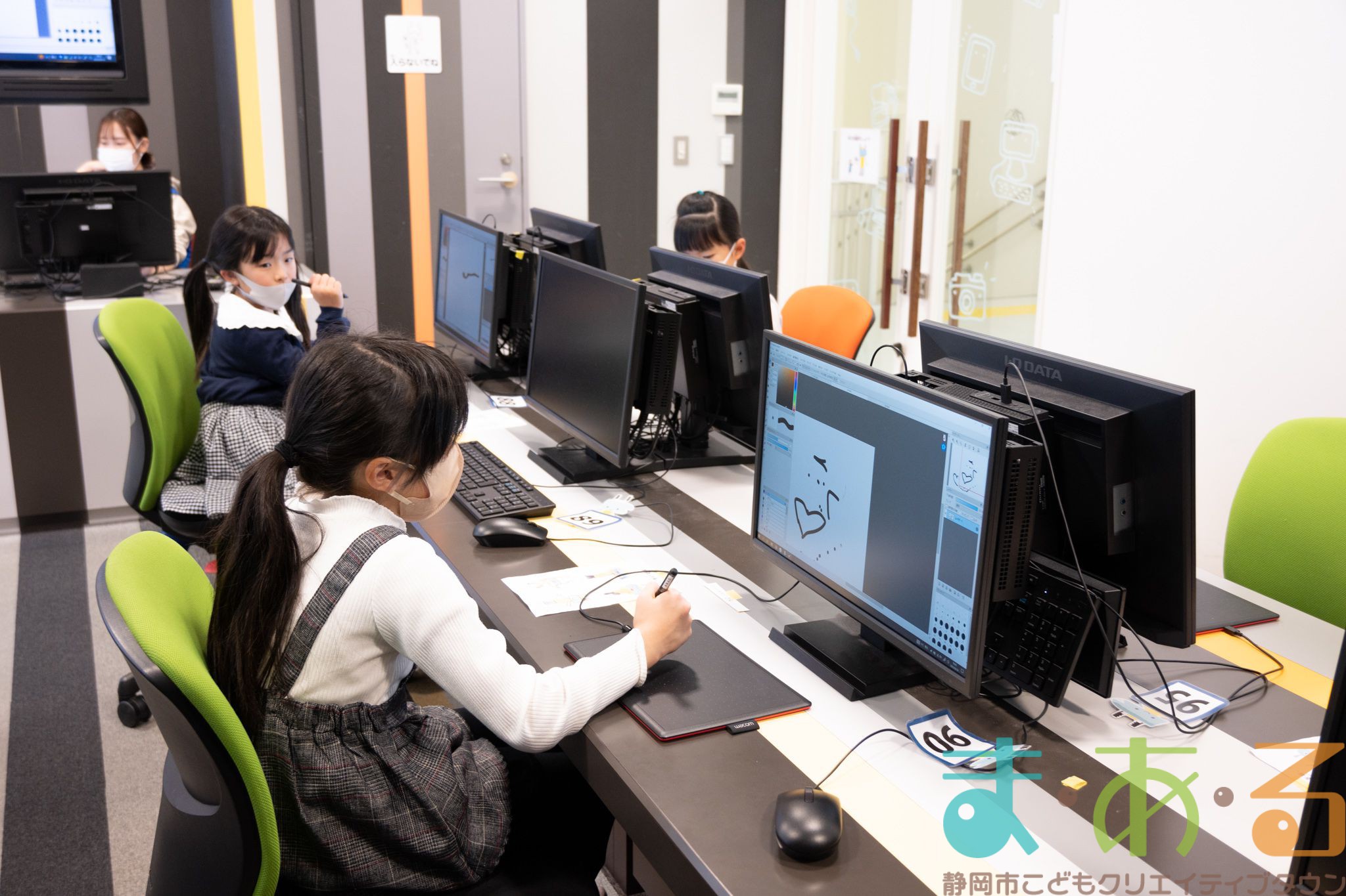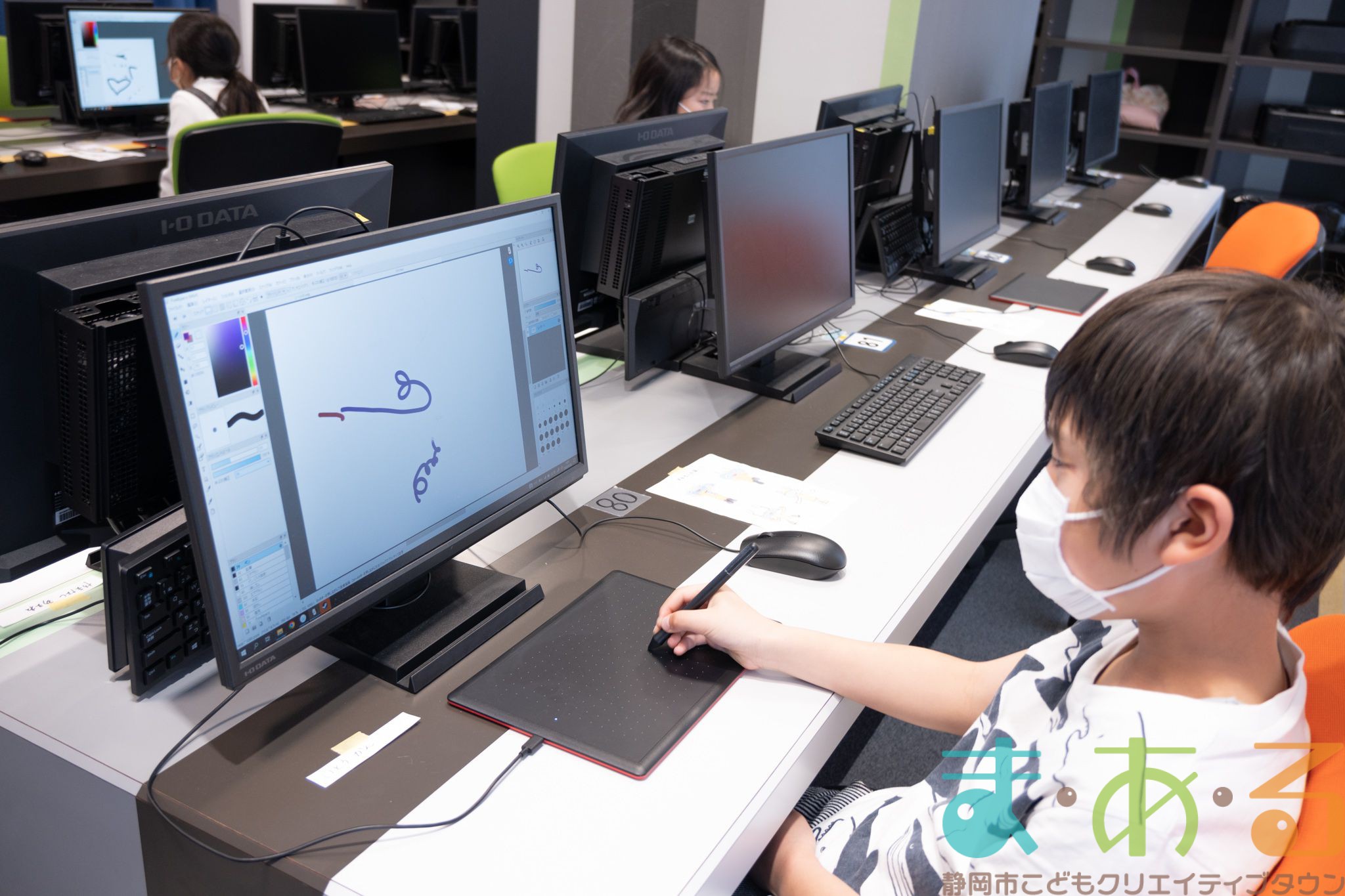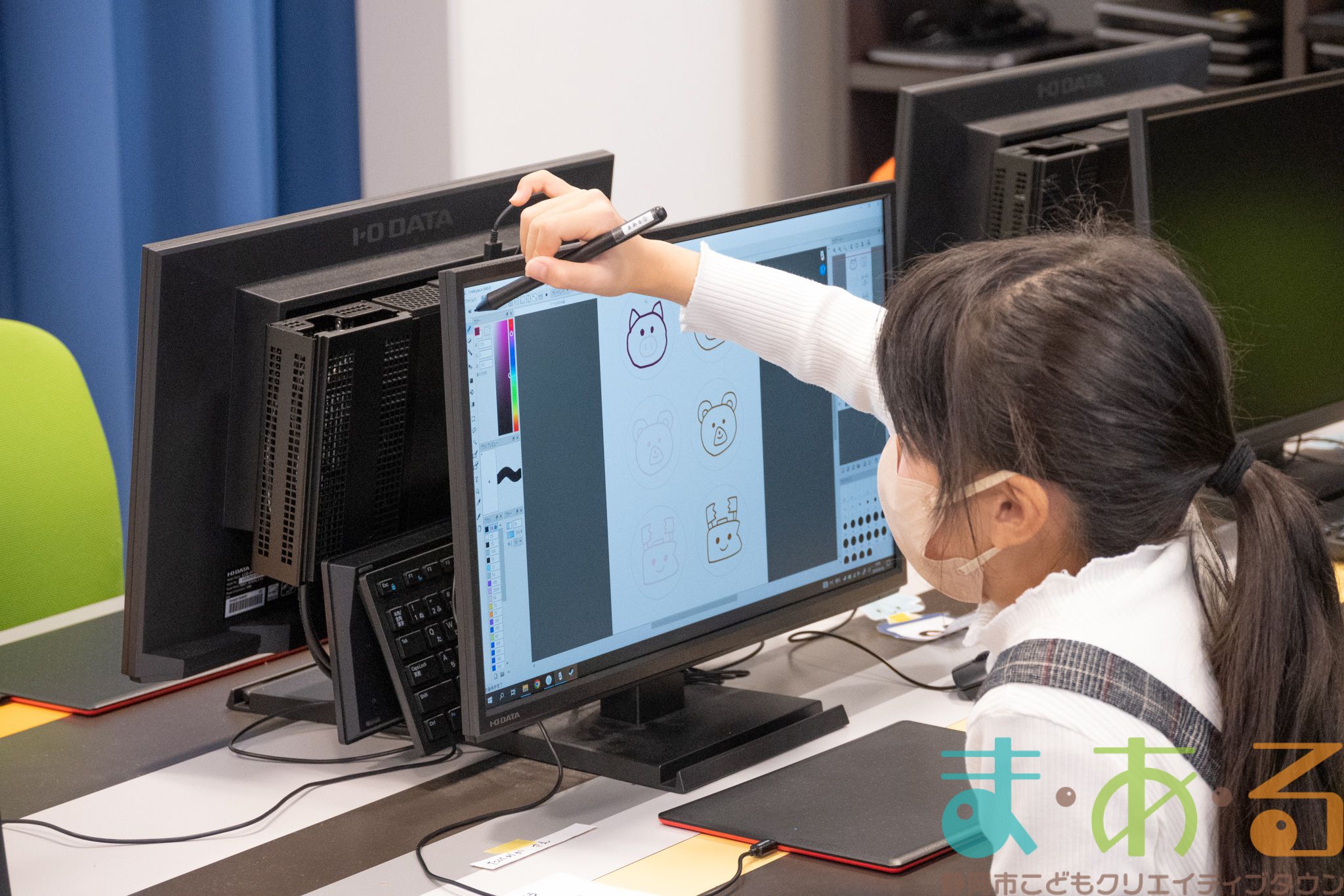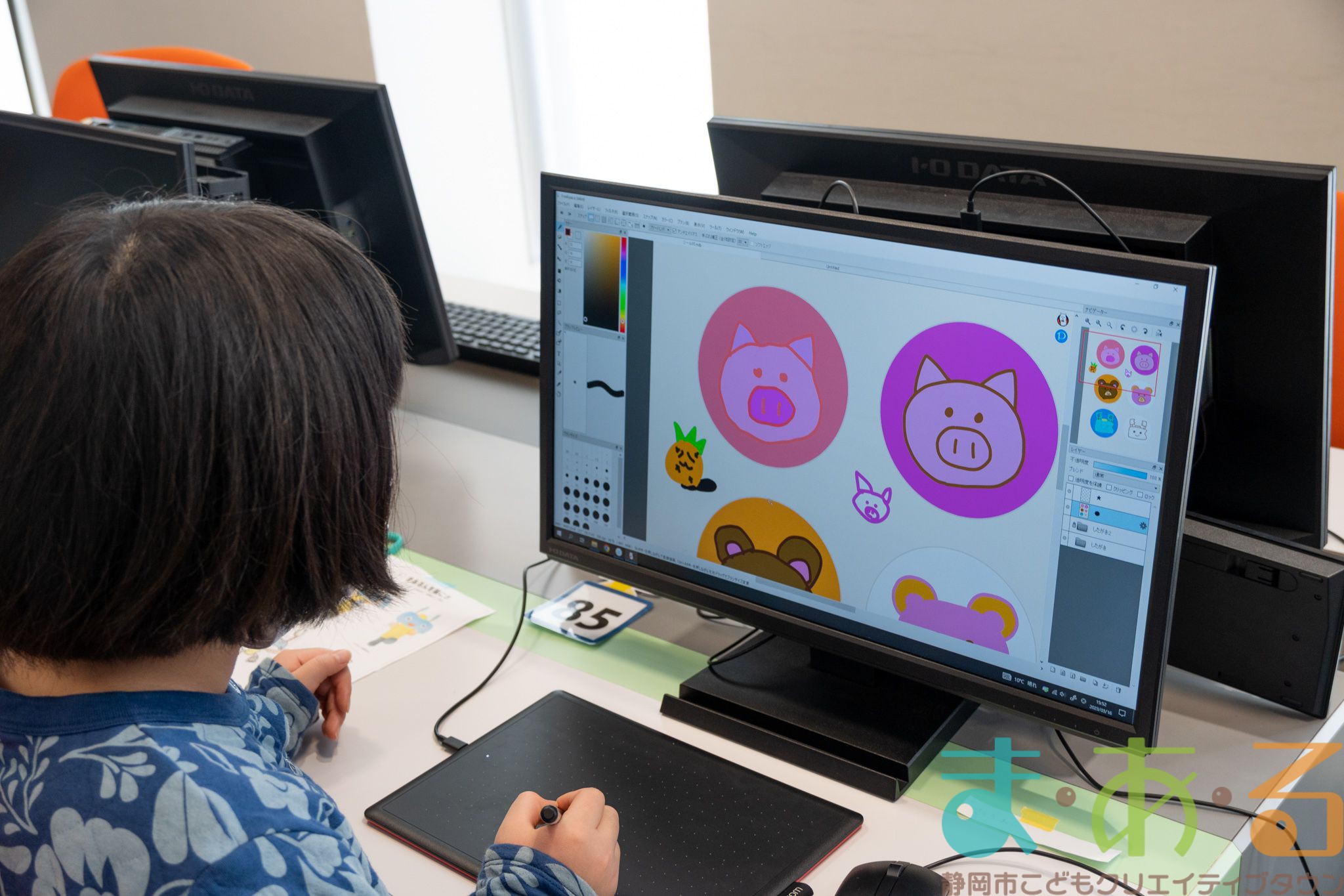 シール作りに入る前に、実際にペンタブレットを使いながら、ペンタブレットってなに?どうやって操作するの?というところからじっくりと学んでいきます。