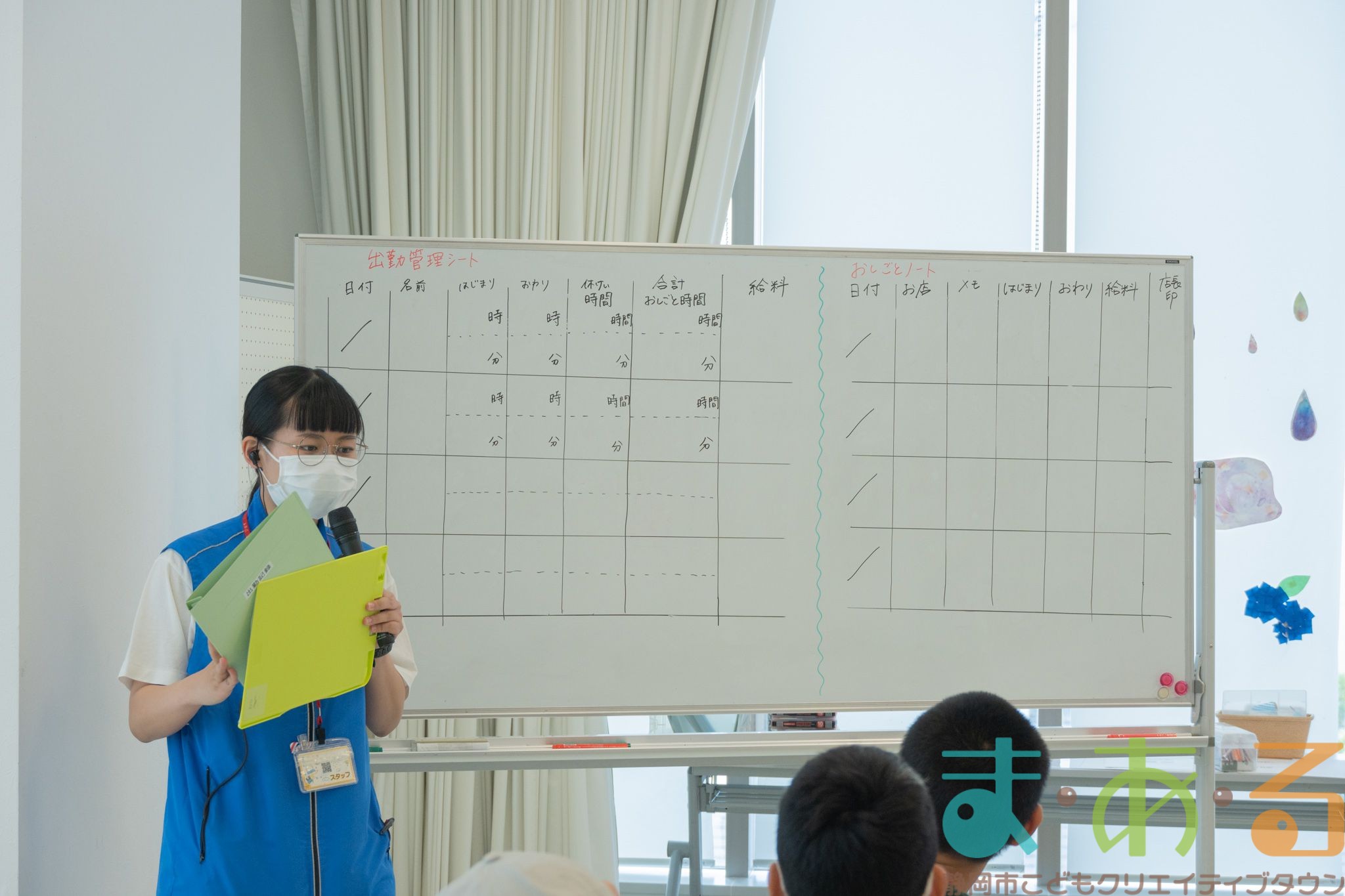 続いて、「おしごとノート」と「出勤記録シート」の書き方について説明を大人スタッフのめいめいが行いました。