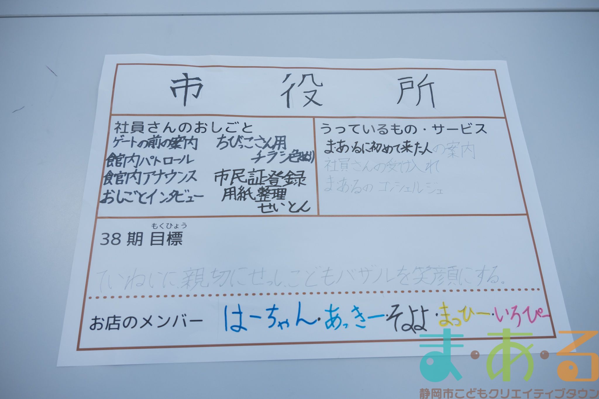 こちらの目標シートは、ま・あ・るの館内に掲示しております。