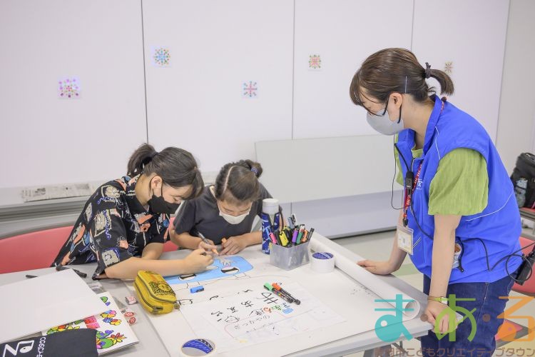 「プラカード作成チーム」は、どんなデザインにするか考えます。