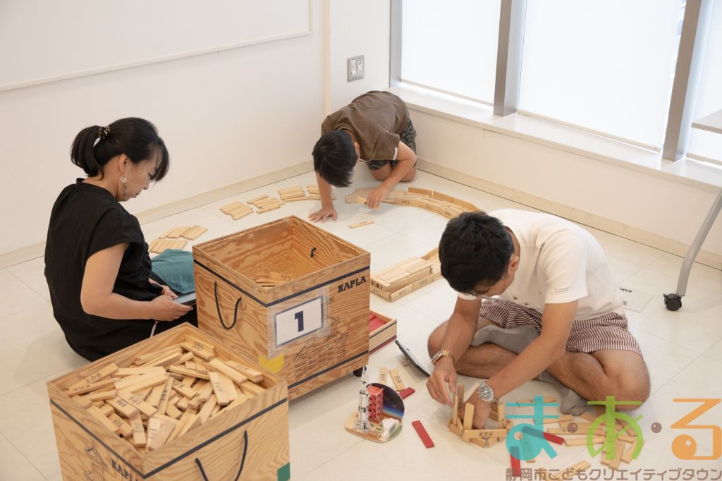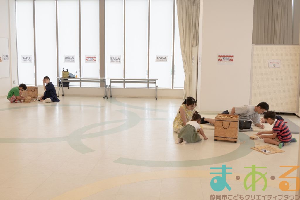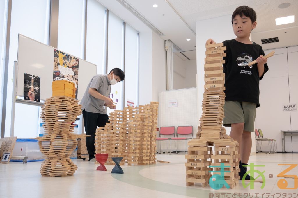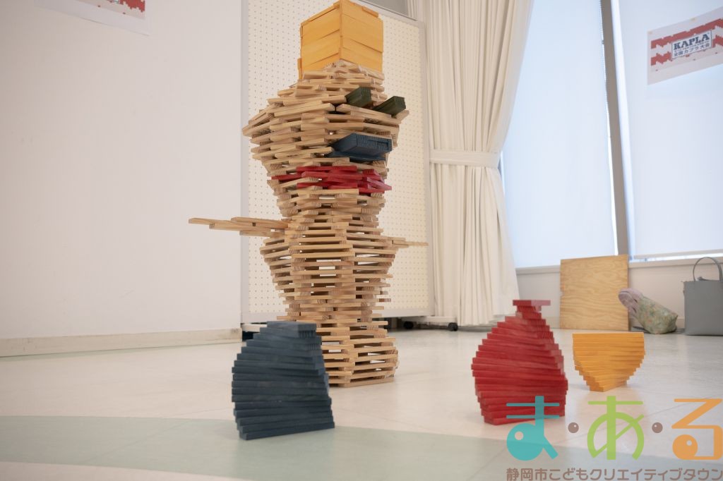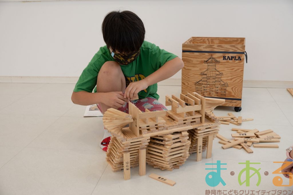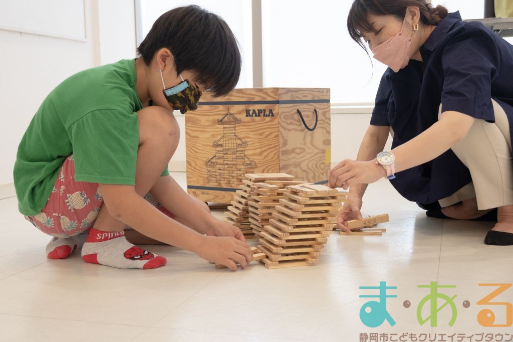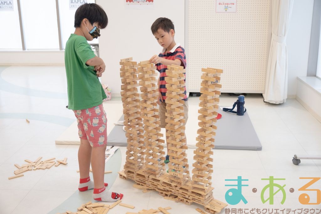 KAPLA®は、ま・あ・るの4階のみんなの広場に常設されて普段から遊ぶことができますが、今回は全国大会にエントリーする作品づくりを行いました。