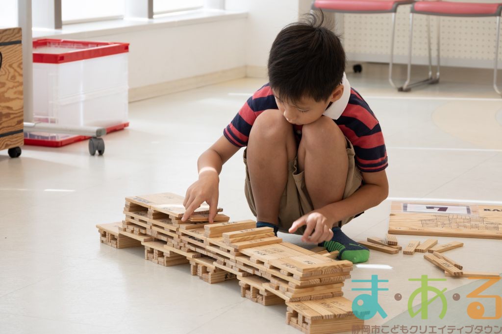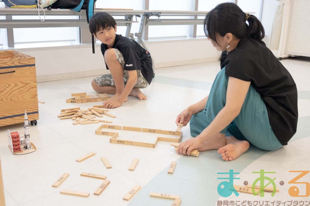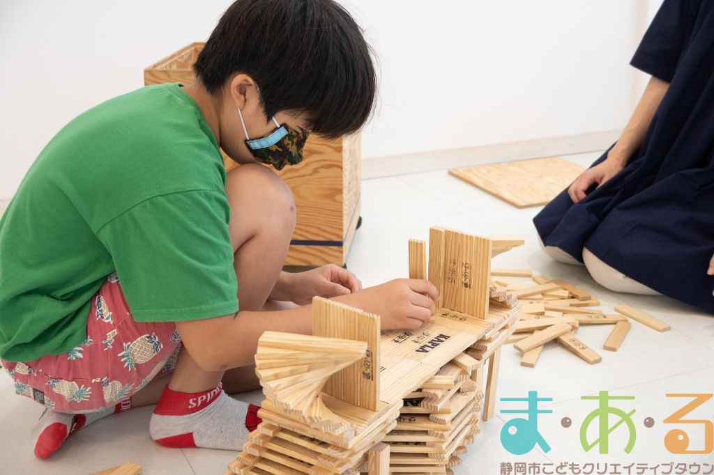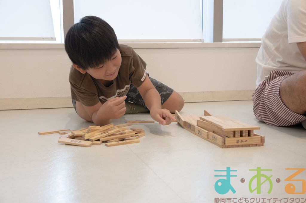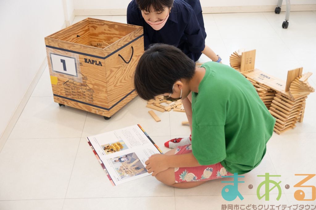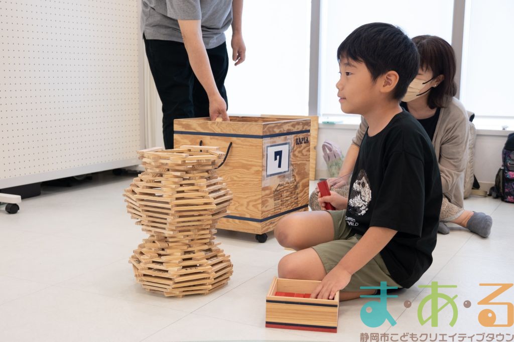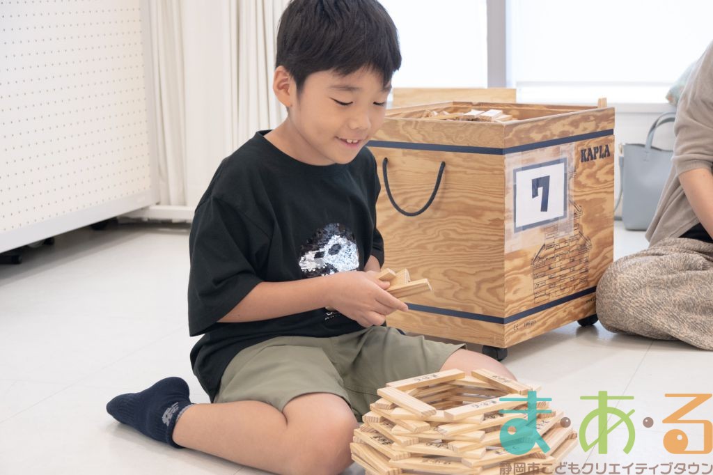 KAPLA®は、ま・あ・るの4階のみんなの広場に常設されて普段から遊ぶことができますが、今回は全国大会にエントリーする作品づくりを行いました。