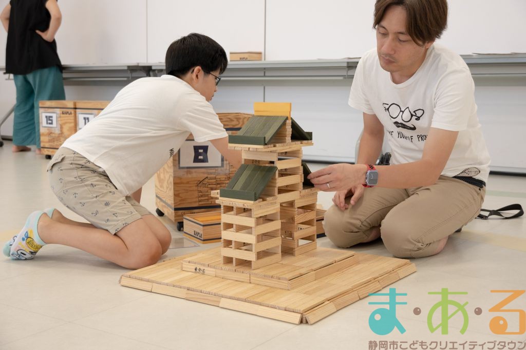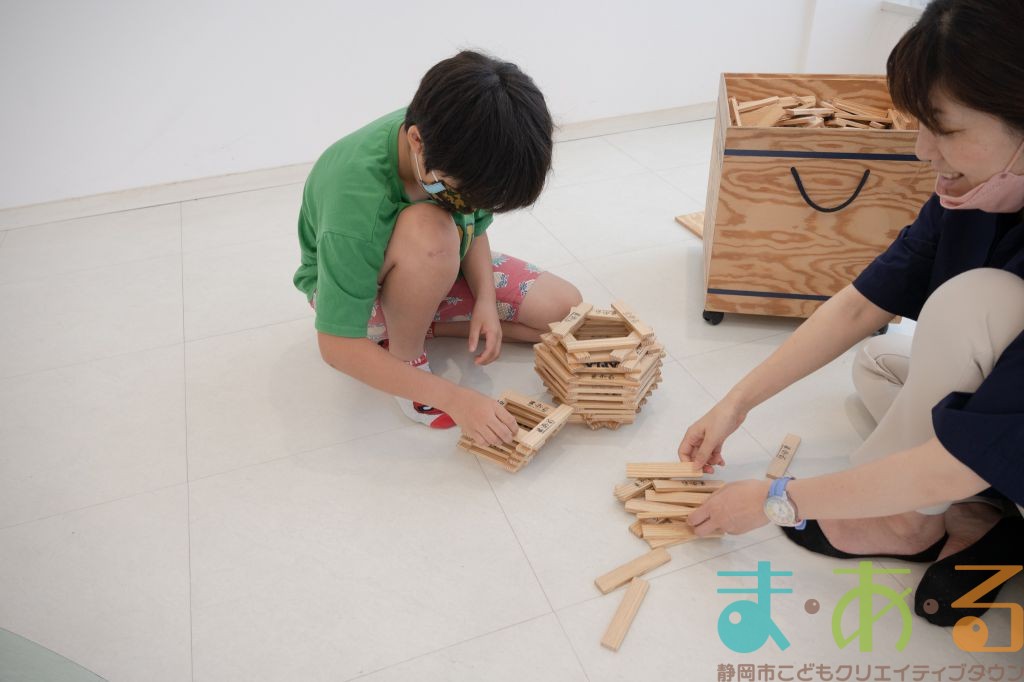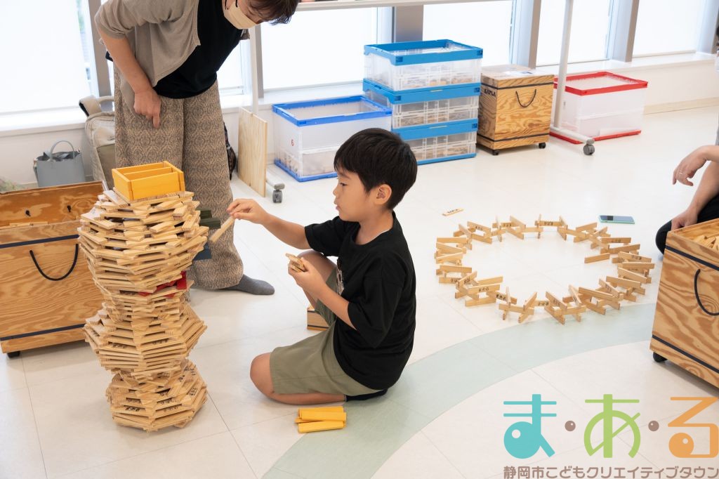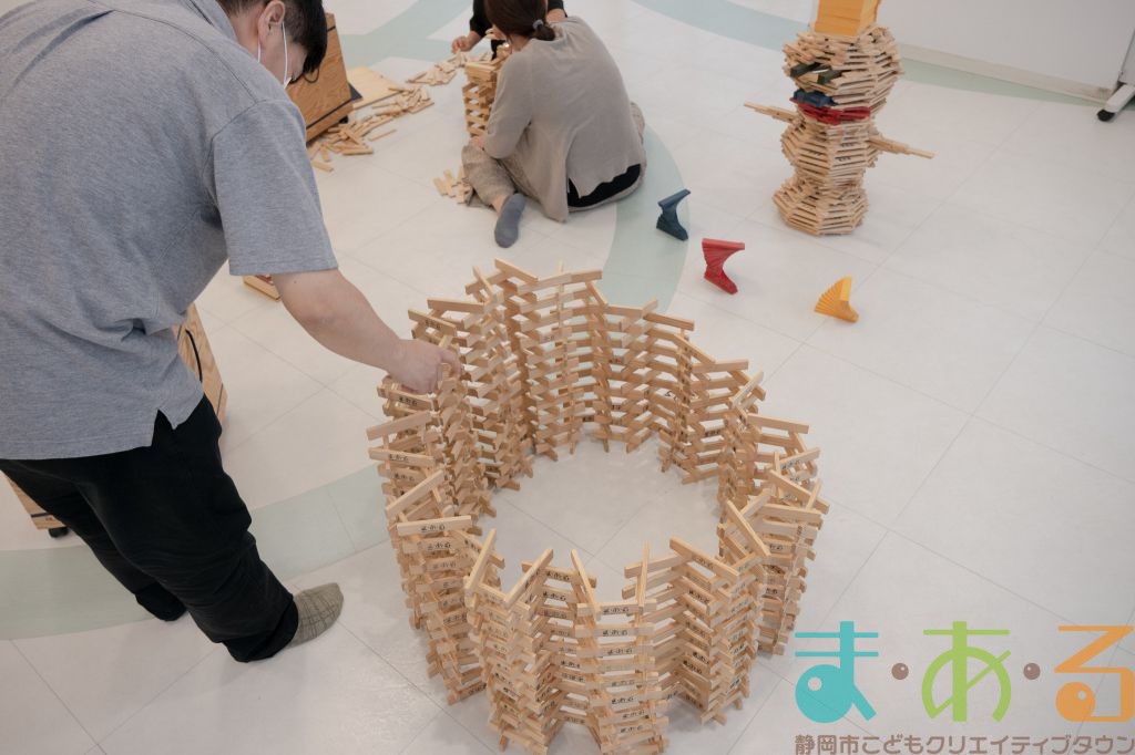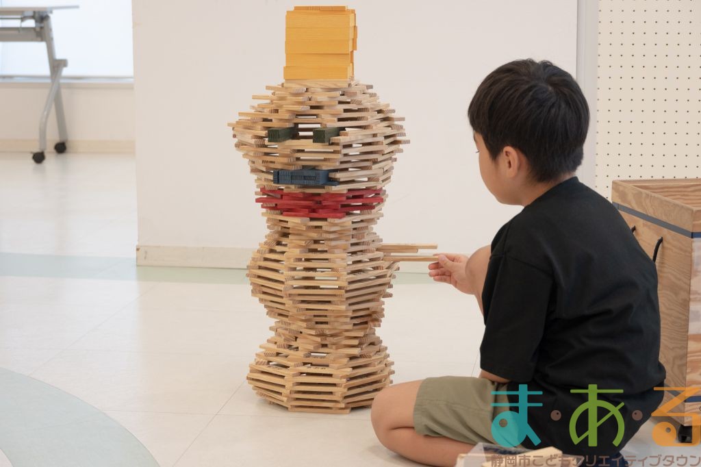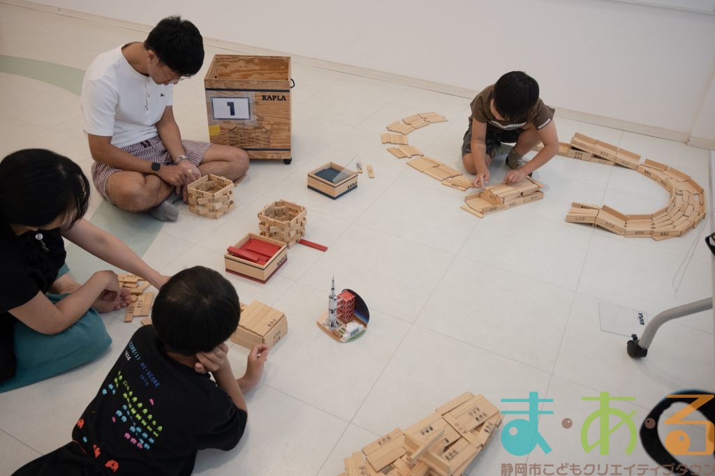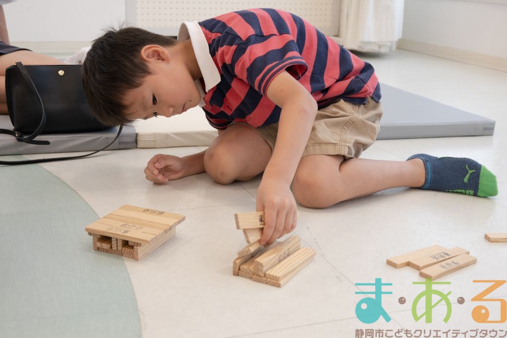 KAPLA®は、ま・あ・るの4階のみんなの広場に常設されて普段から遊ぶことができますが、今回は全国大会にエントリーする作品づくりを行いました。