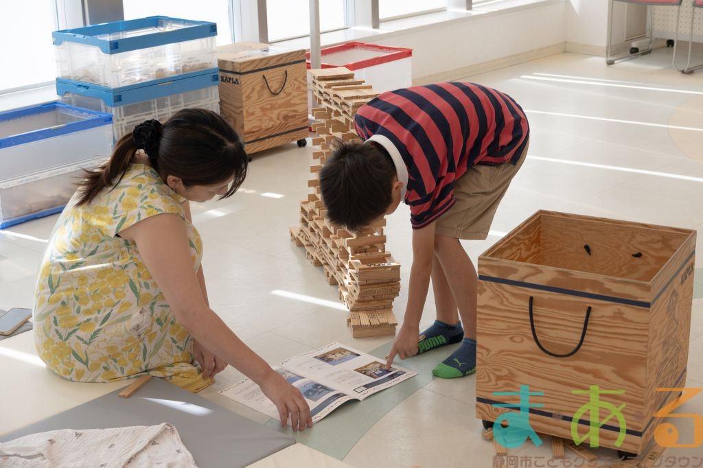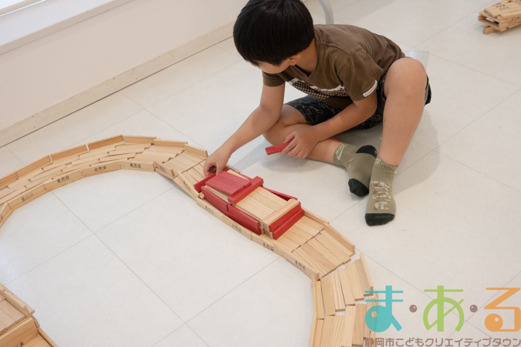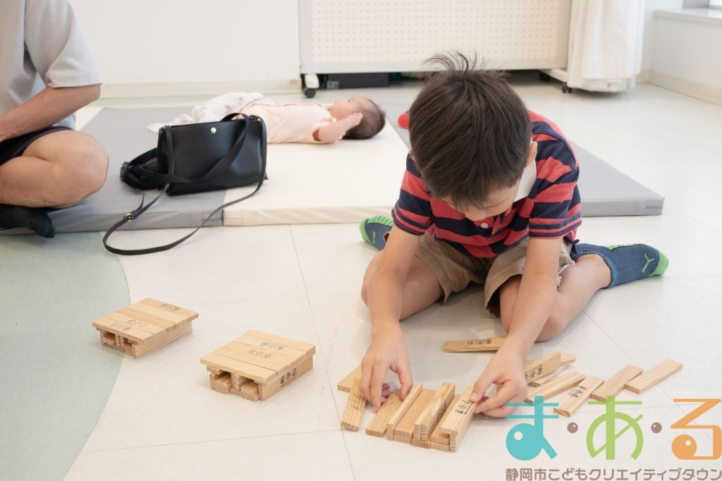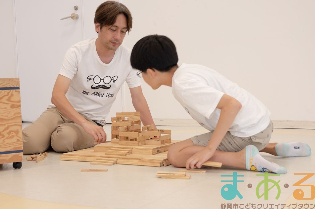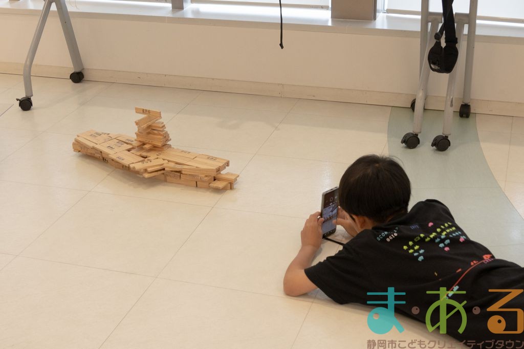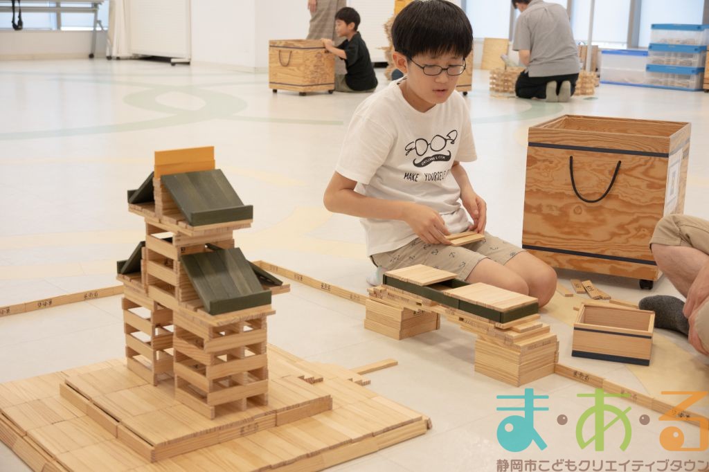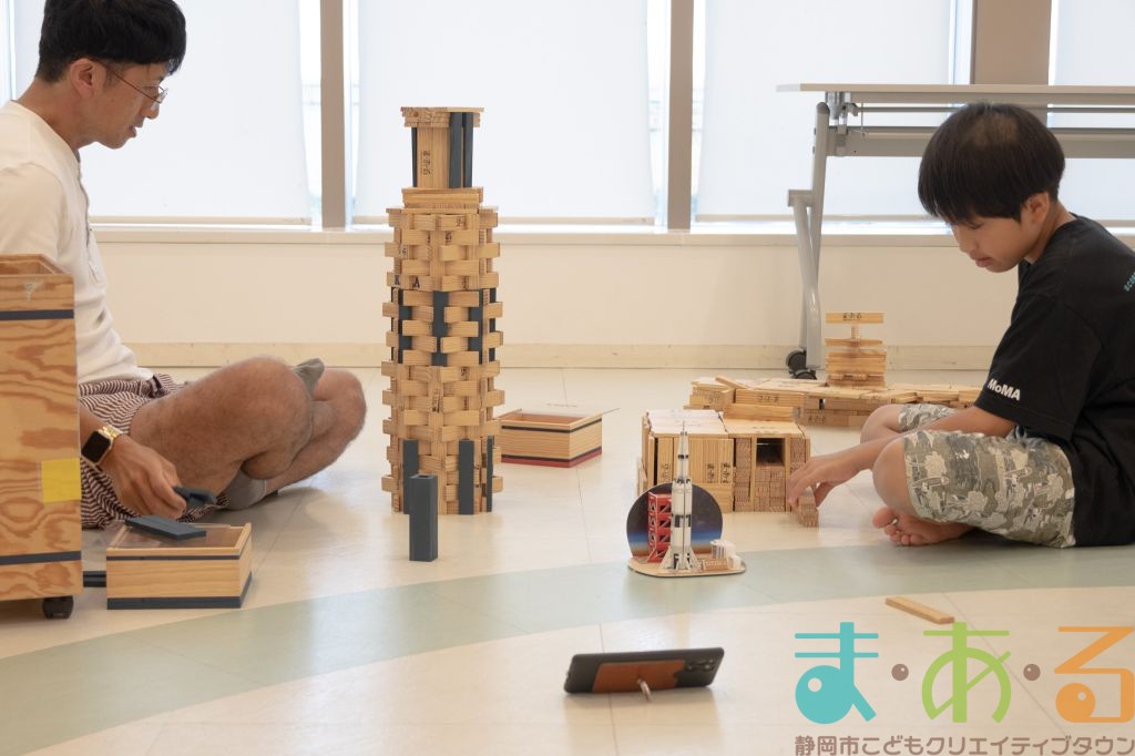KAPLA®は、ま・あ・るの4階のみんなの広場に常設されて普段から遊ぶことができますが、今回は全国大会にエントリーする作品づくりを行いました。