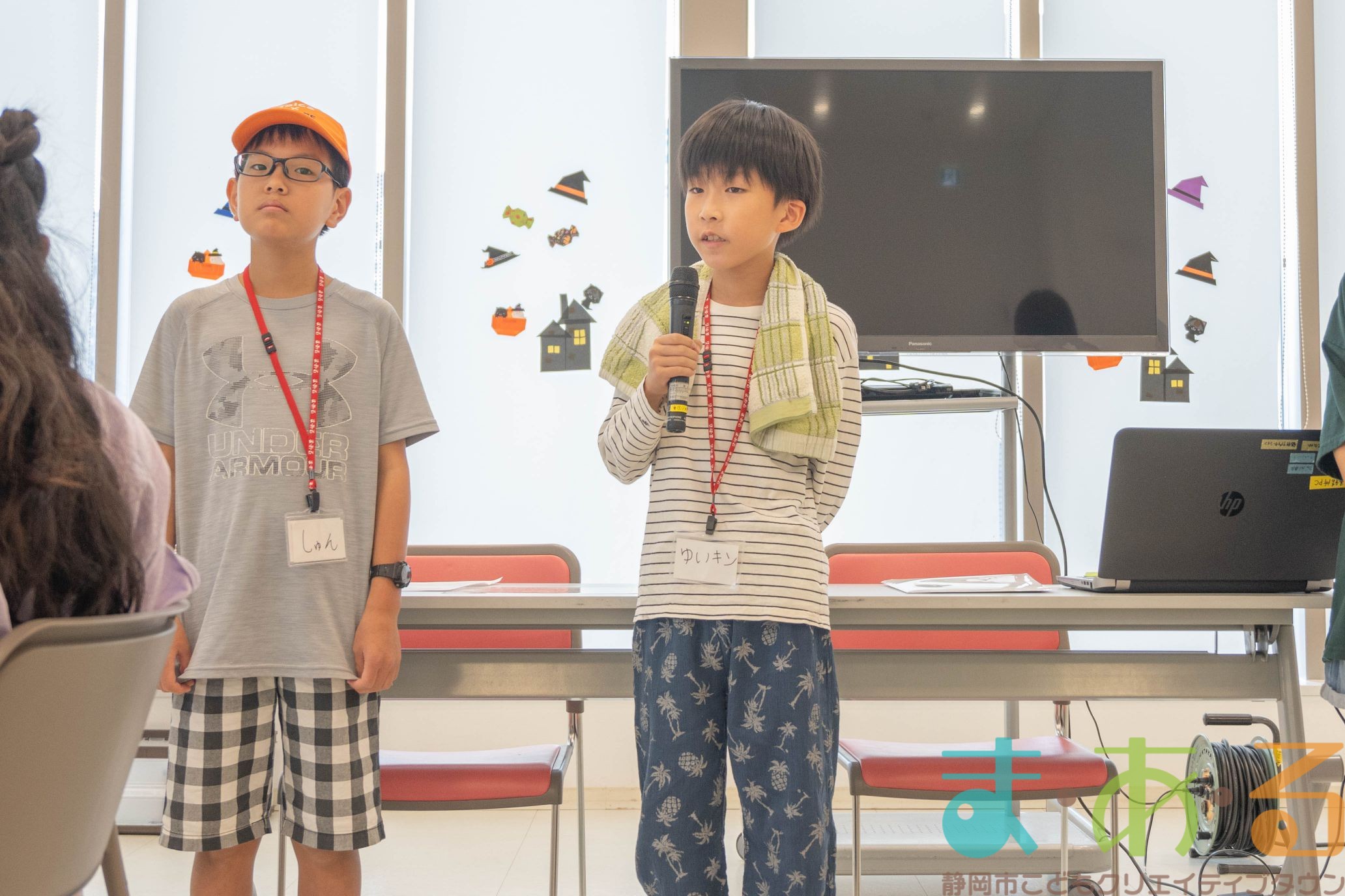 まずは、お手本で市長のもなちゃんと副市長のコッキ―が自己紹介をしてくれました。