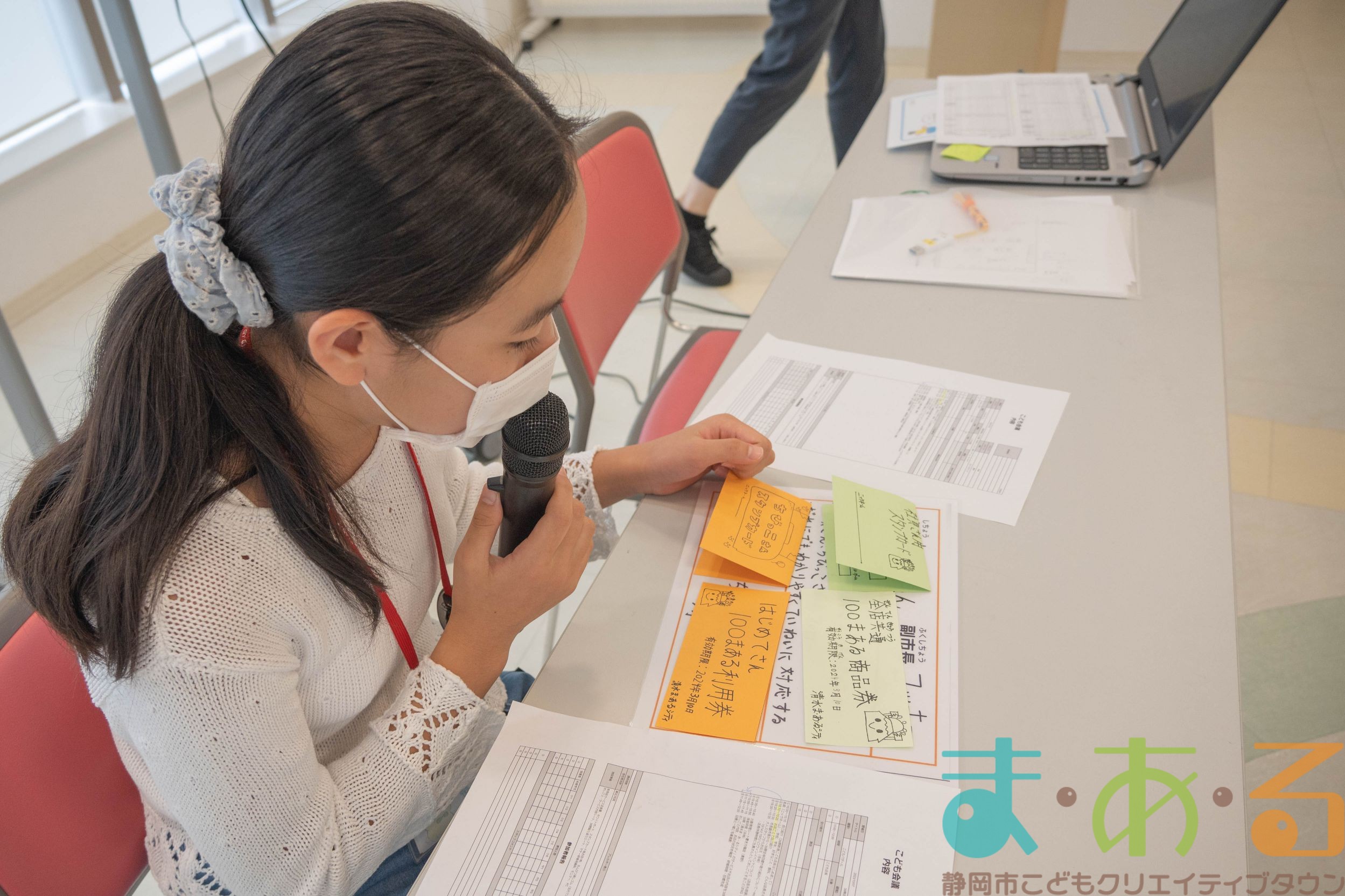 企画書ができたら、同じお店の店長さんに相談し、OKが出たら大人スタッフに提出してもらいます。実際に企画が採用されたものは、「まあるんボックス」の横に企画書を掲示しています。