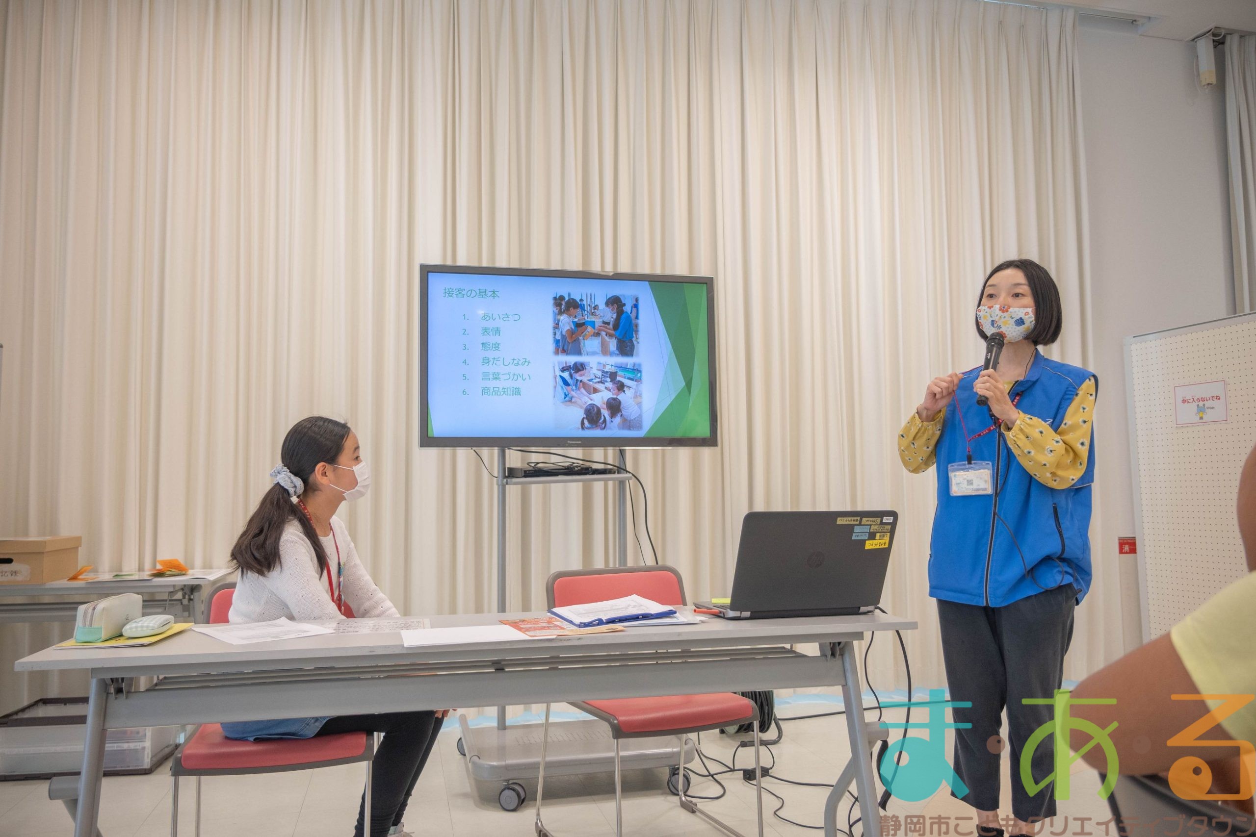 次に、大人スタッフのゆりさんから接客研修がありました。