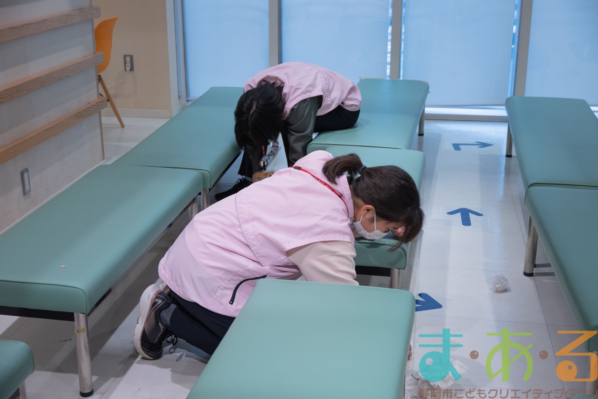 ハローワークと銀行は、床についている案内の表示のテープの張り替えも行いました。