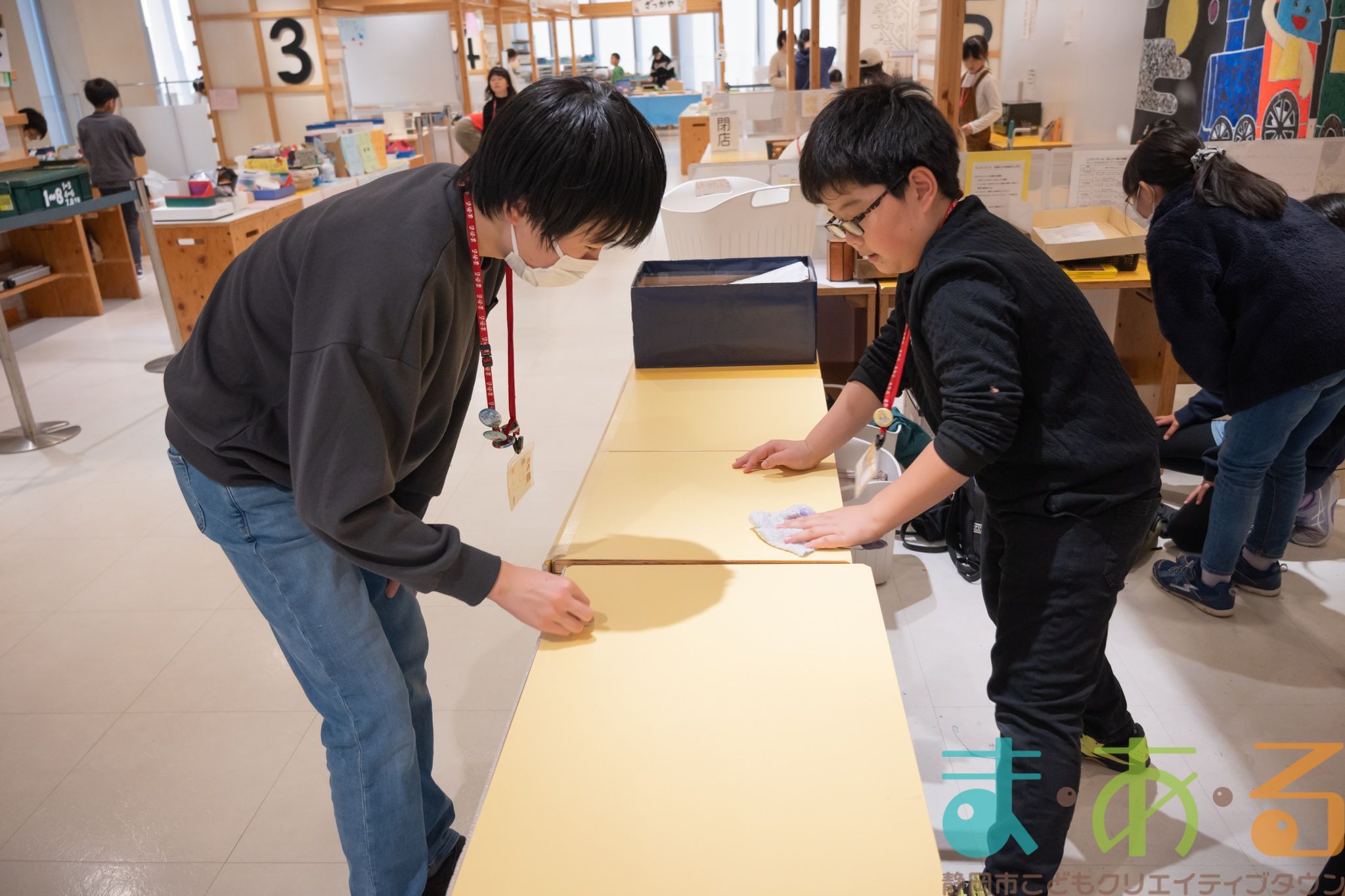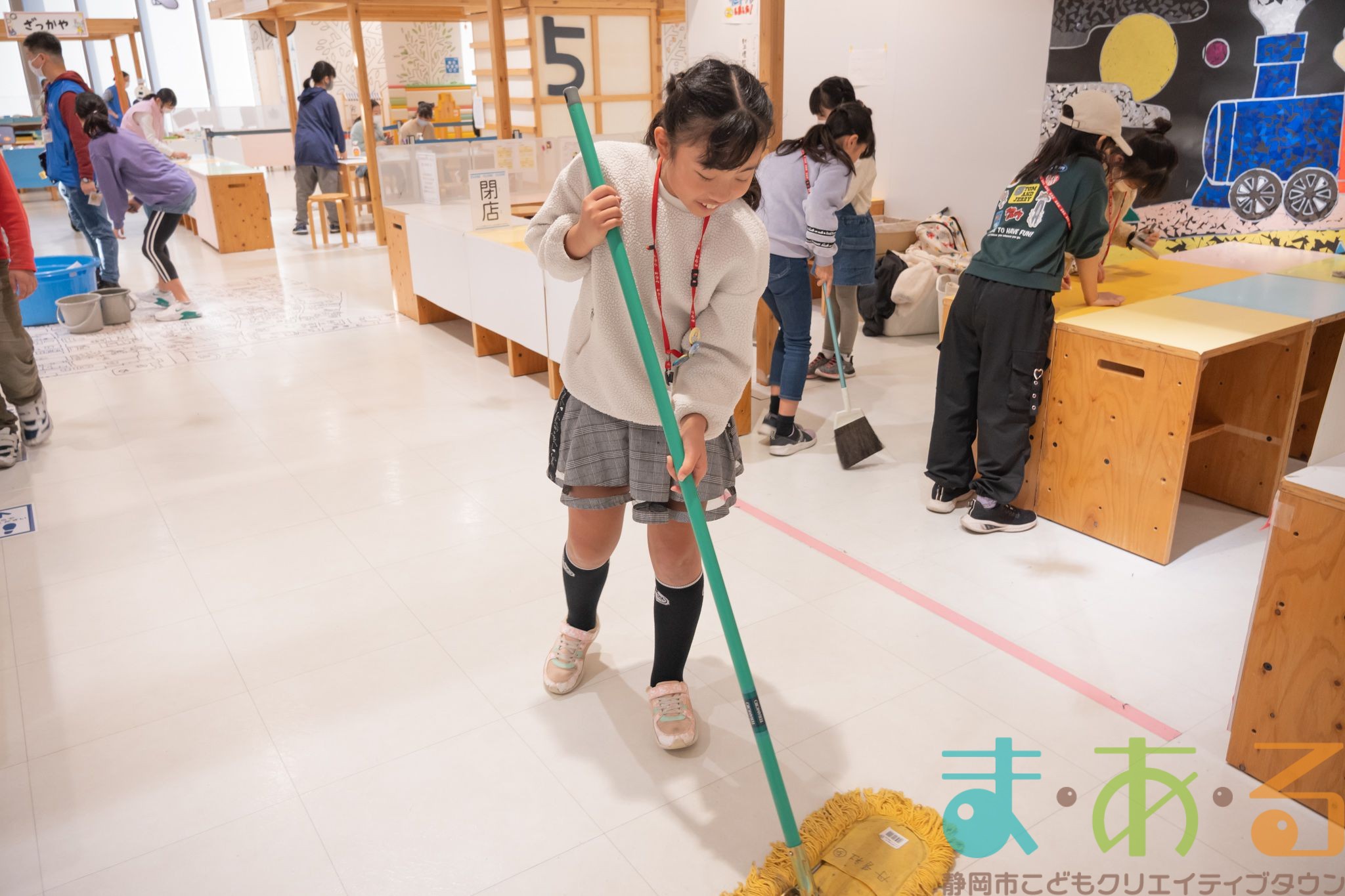 たくさんのこども店長が1年の感謝の気持ちを込めて自分たちのはたらくお店を掃除をしてくれました。