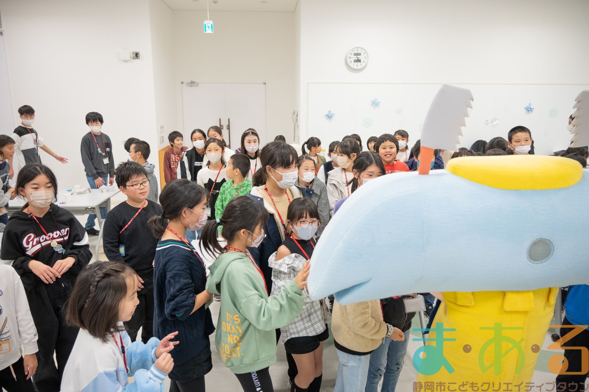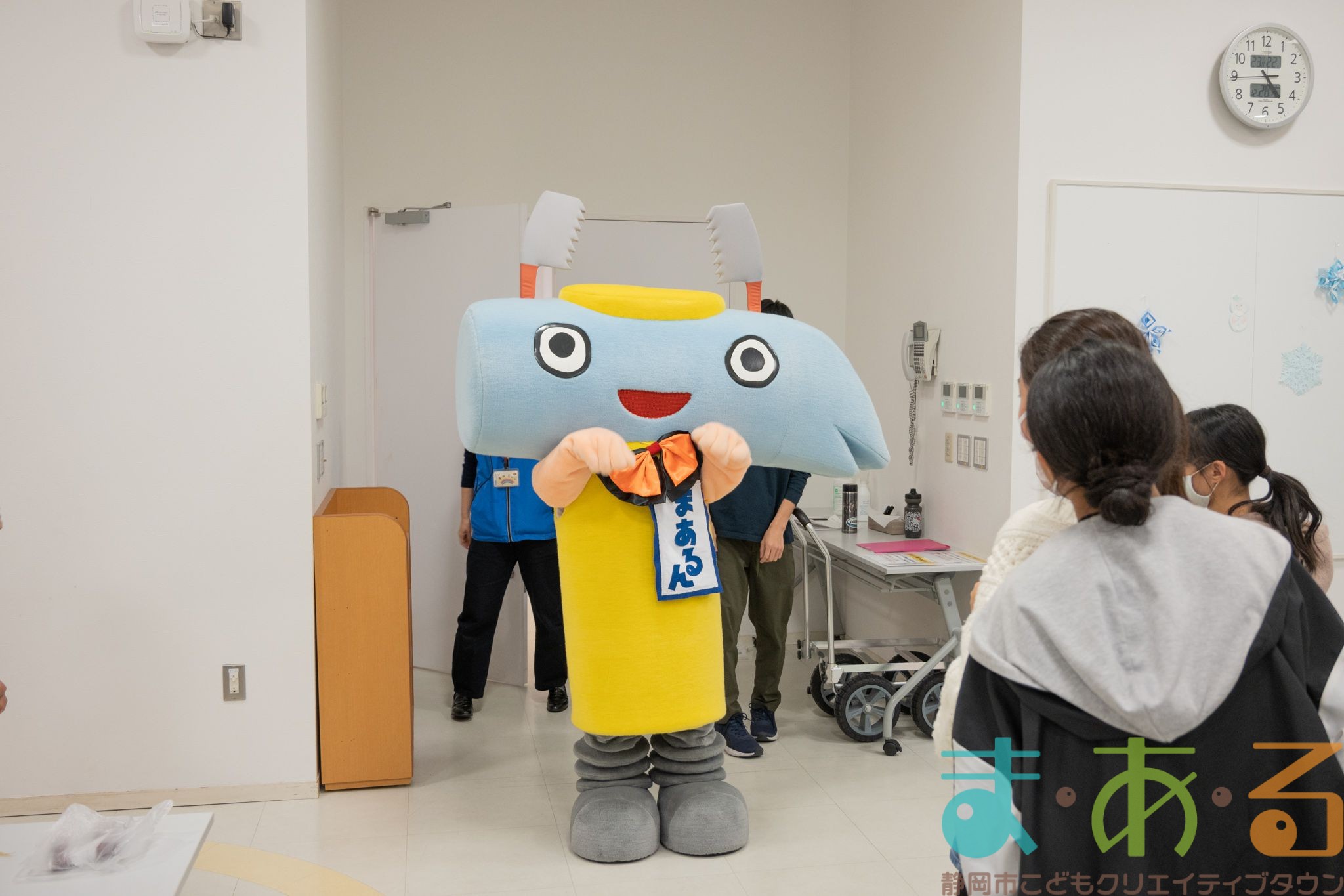 「まあるん」がこども店長に「お疲れ様」を伝えに遊びに来てくれました。