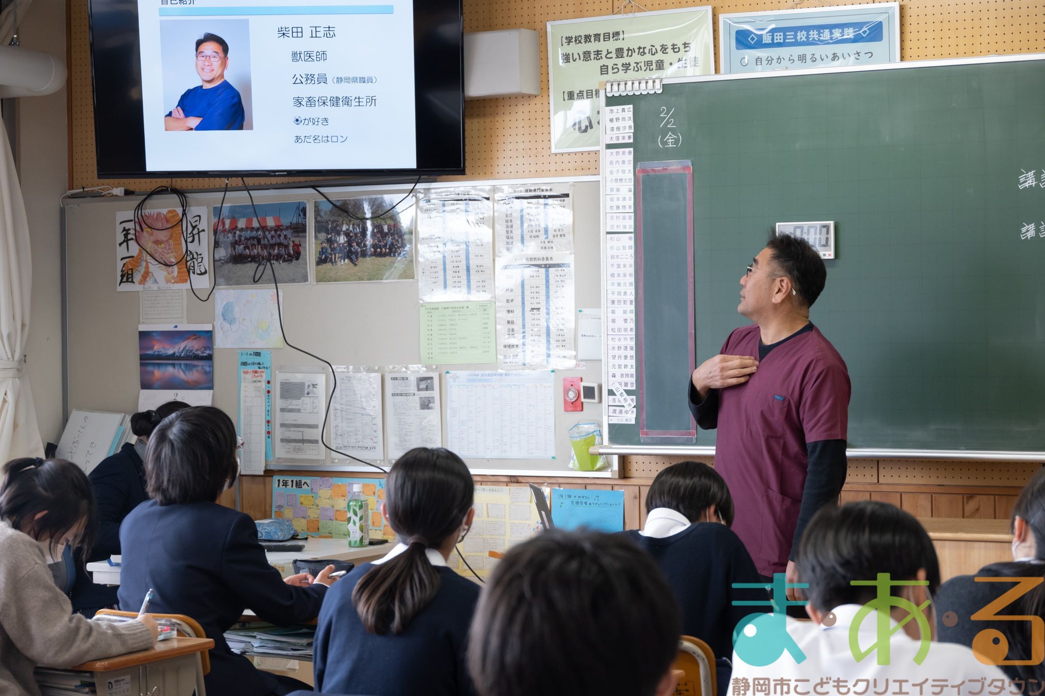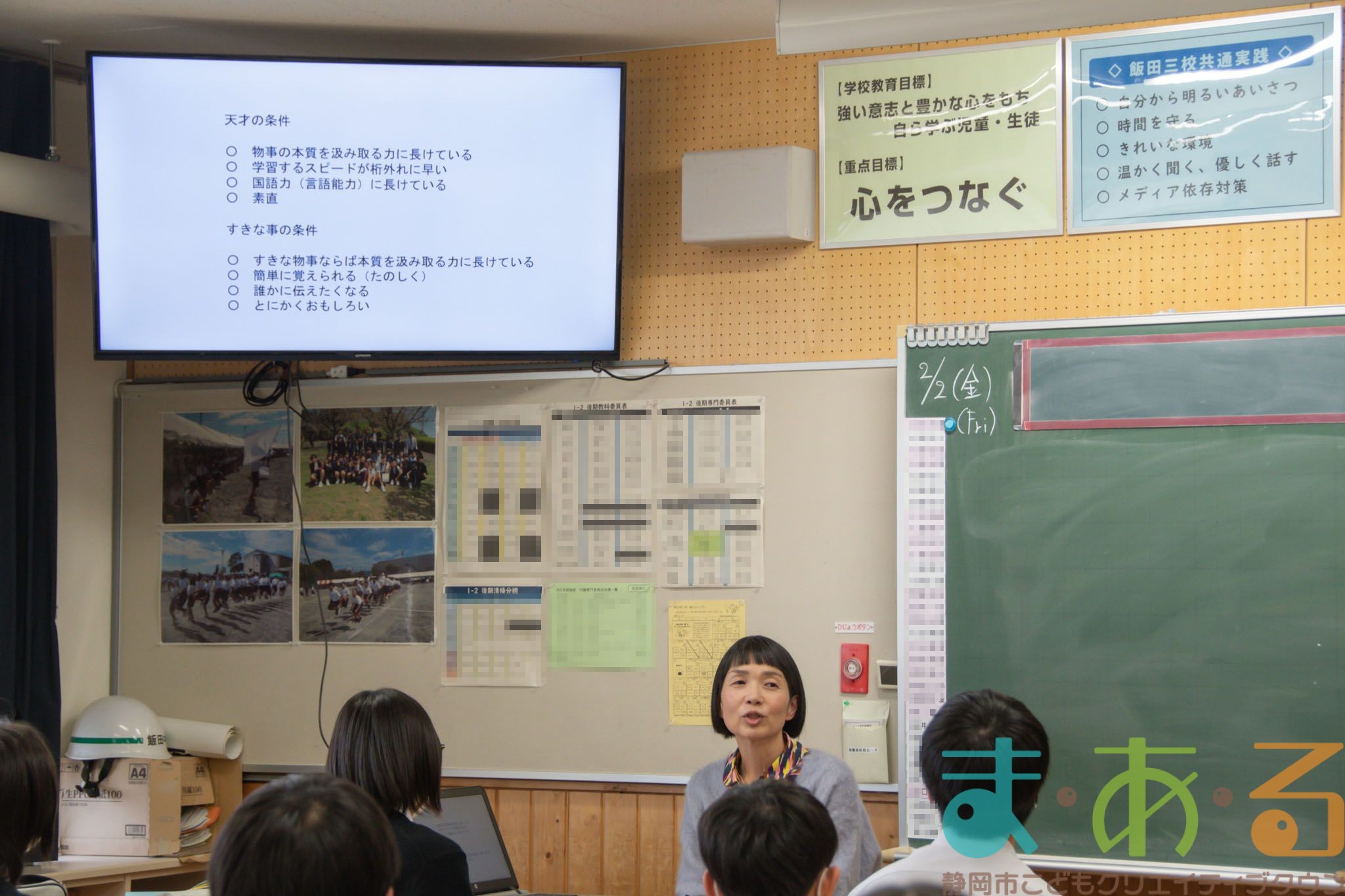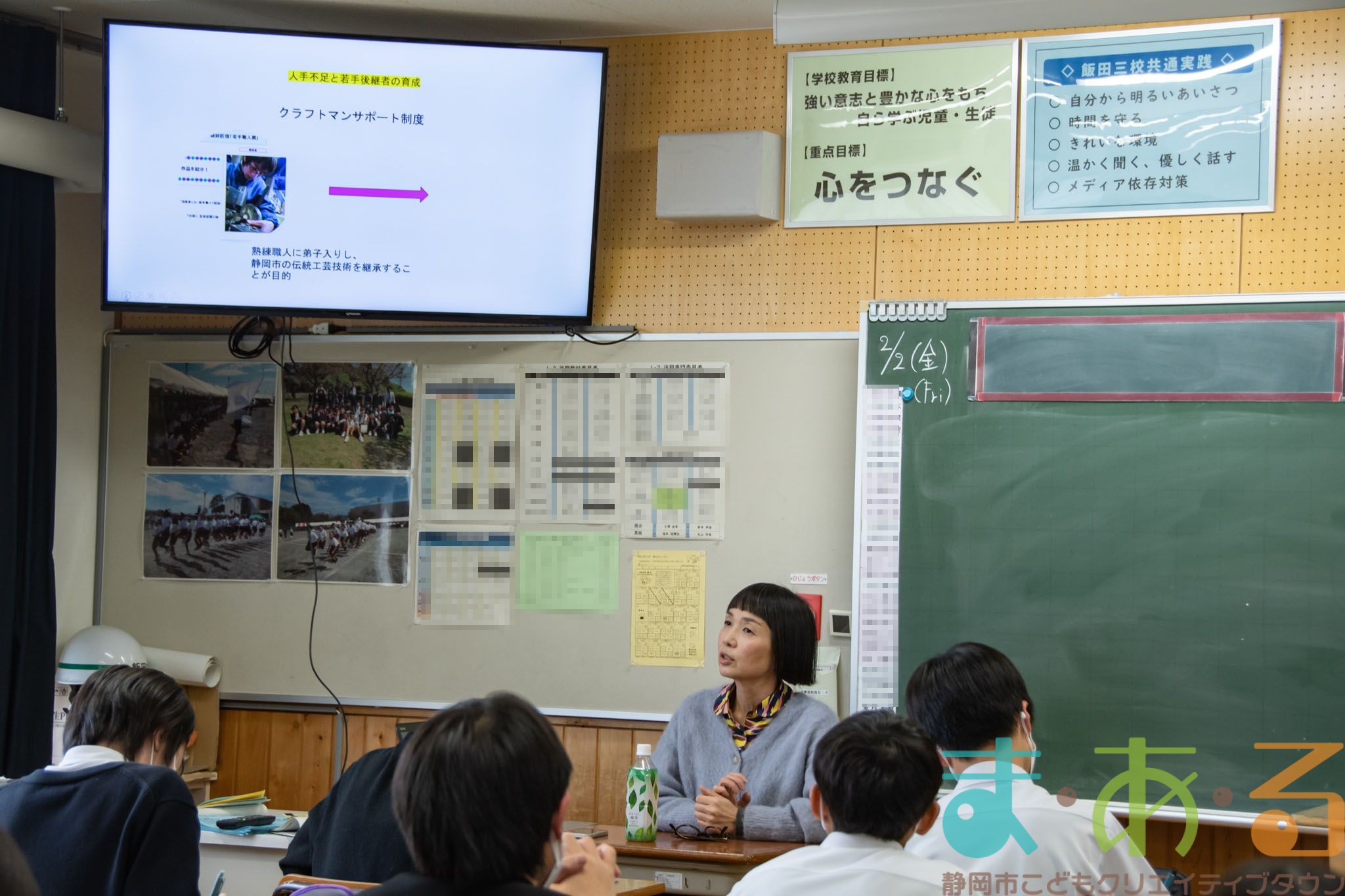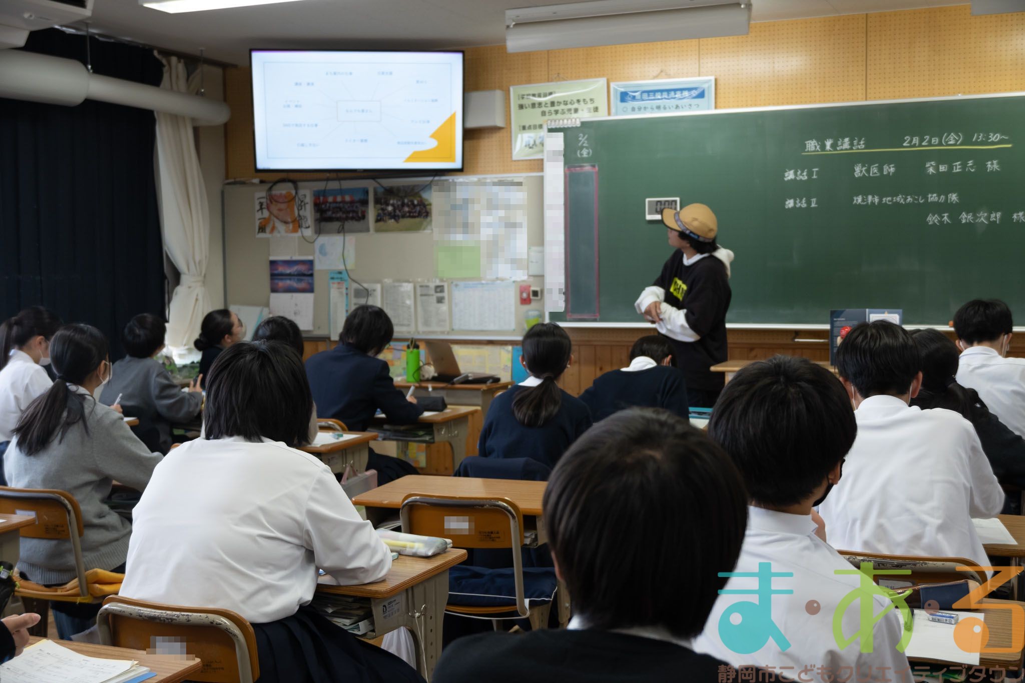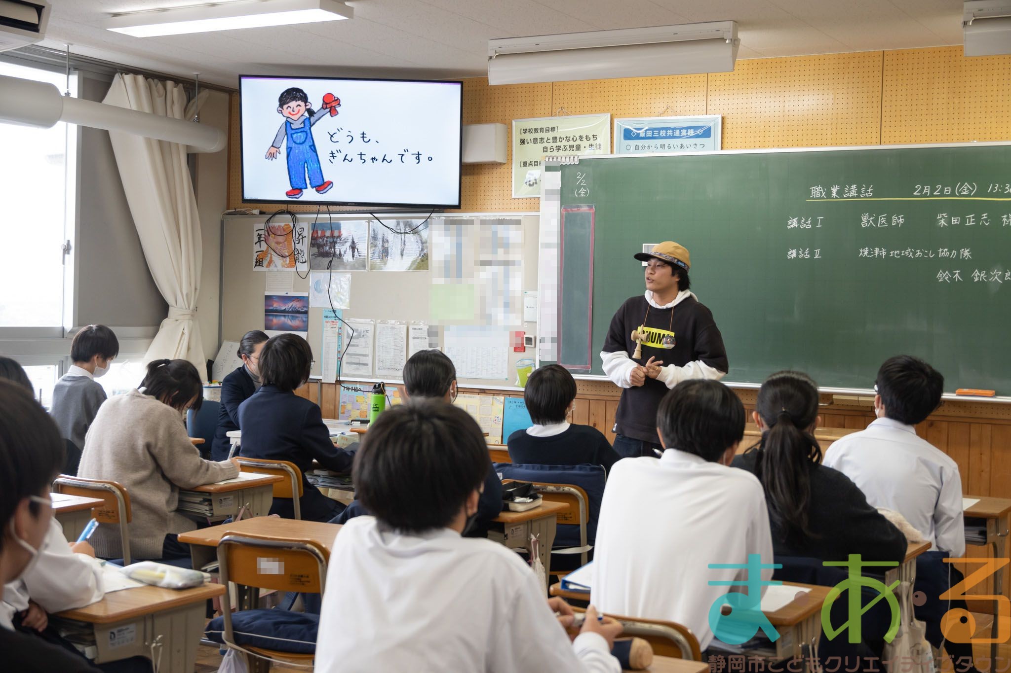 2月2日は、静岡市立清水飯田中学校1年生の団体利用がありました。今回は学校へ出張して4つの職業講話を実施しました。