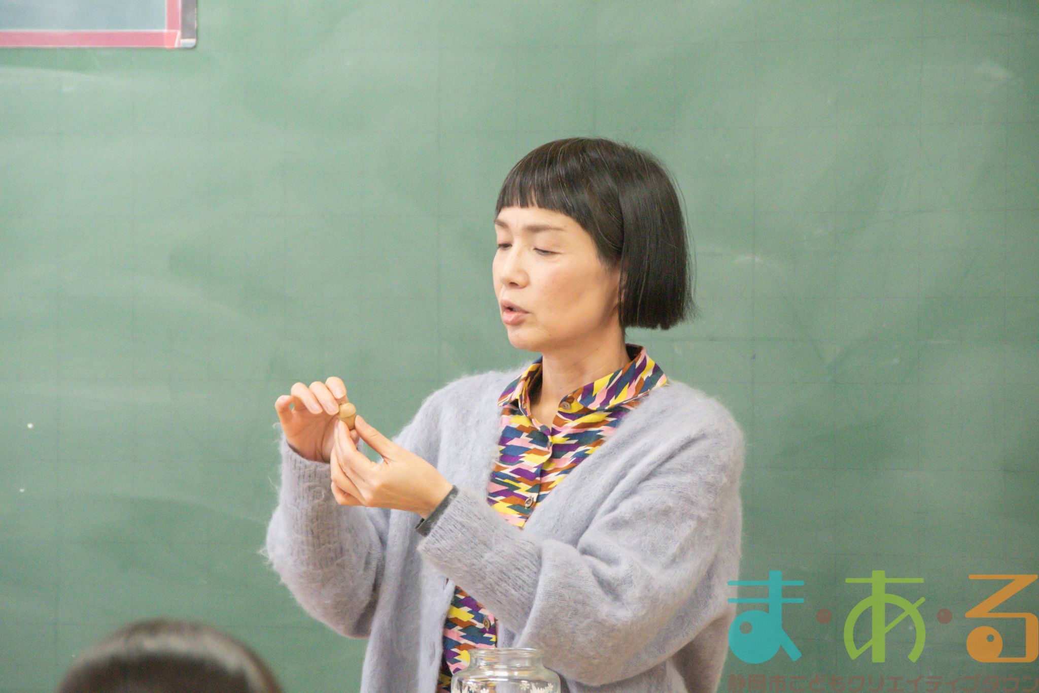 質問してくれた生徒さんには特別に岸本挽物オリジナルのどんぐりがプレゼントされました。