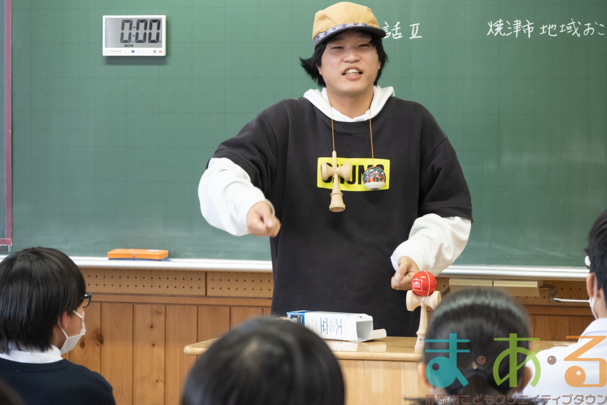 焼津市やけん玉以外にも今のおしごとをする前に体操教室の先生やヒッチハイクでの旅、ゲストハウスの運営など様々なおしごとや経験をしてきたことを教えてくれました。