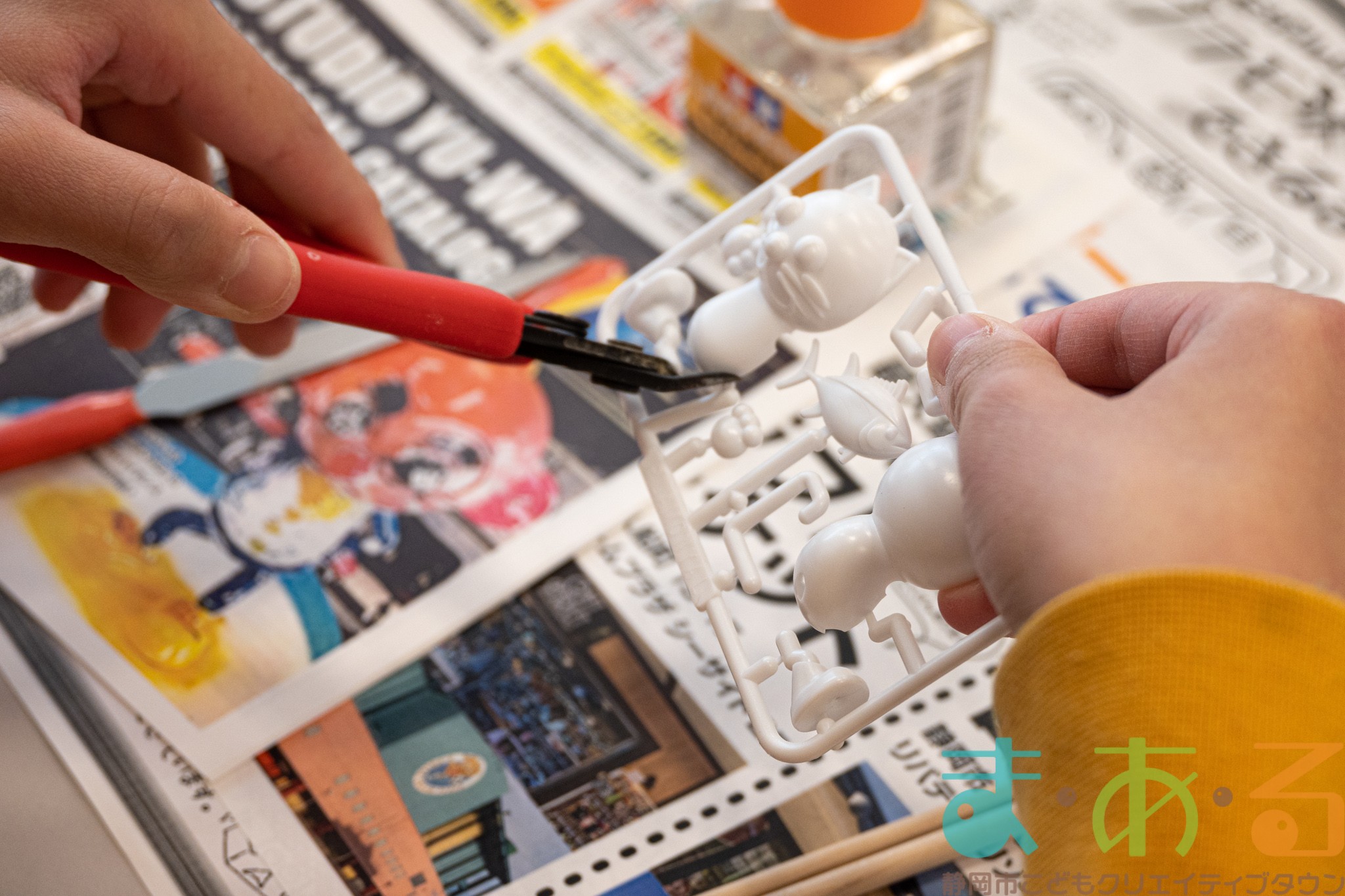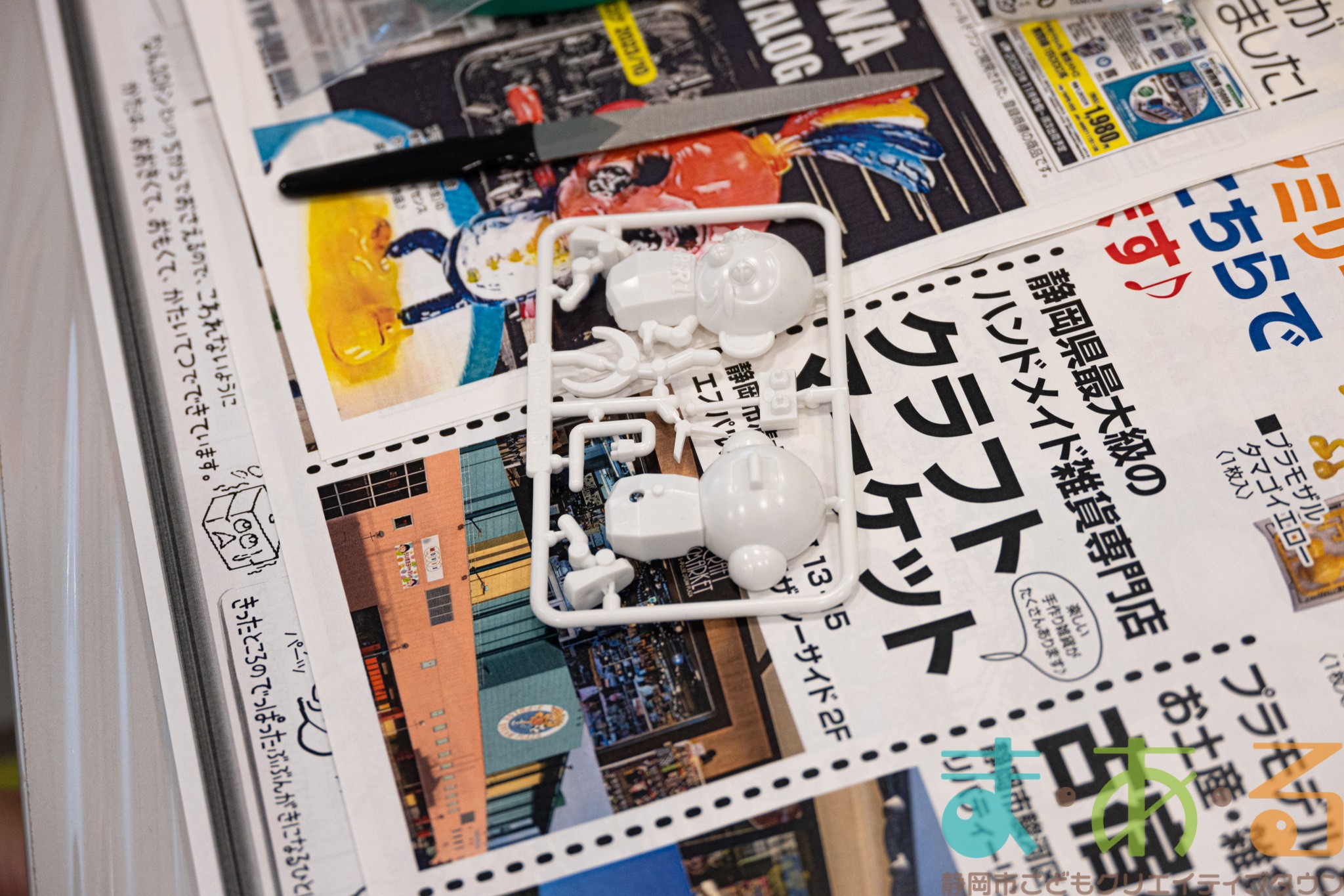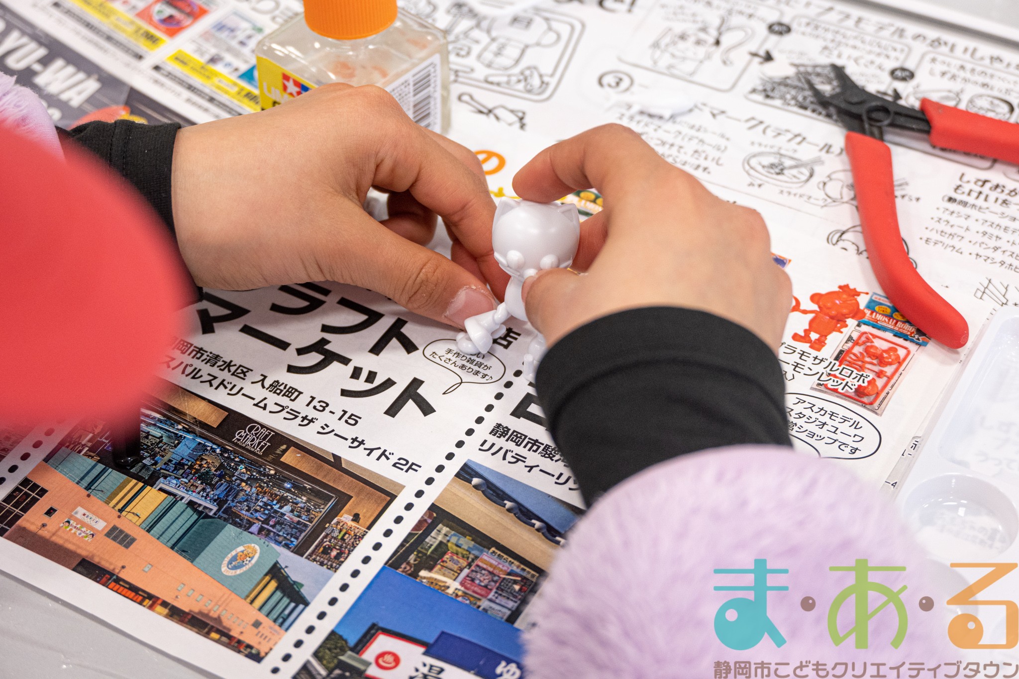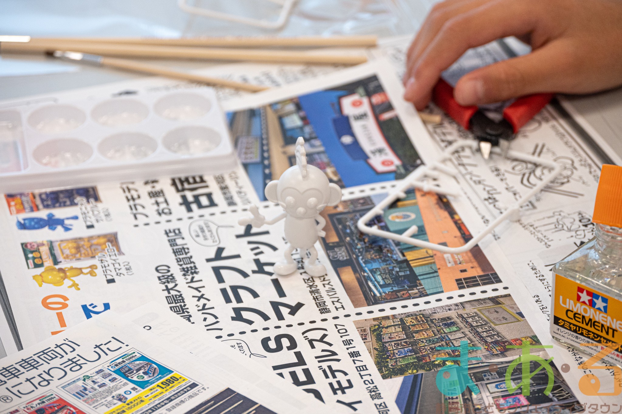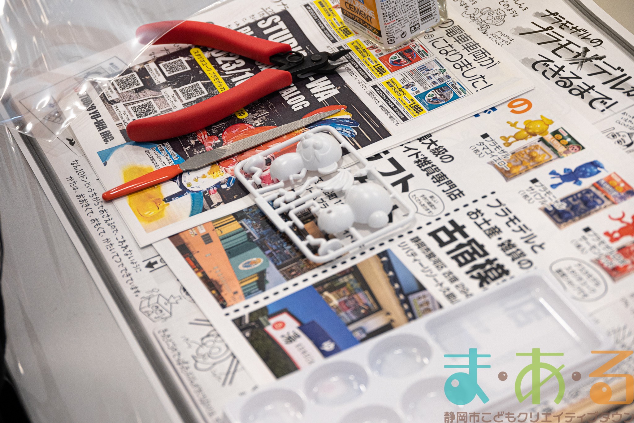 「プラモザル」「プラモニャル」「プラモザルロボ」の三種類のプラモデルをニッパーとやすり、専用の塗料、接着材を使って制作していきます。
