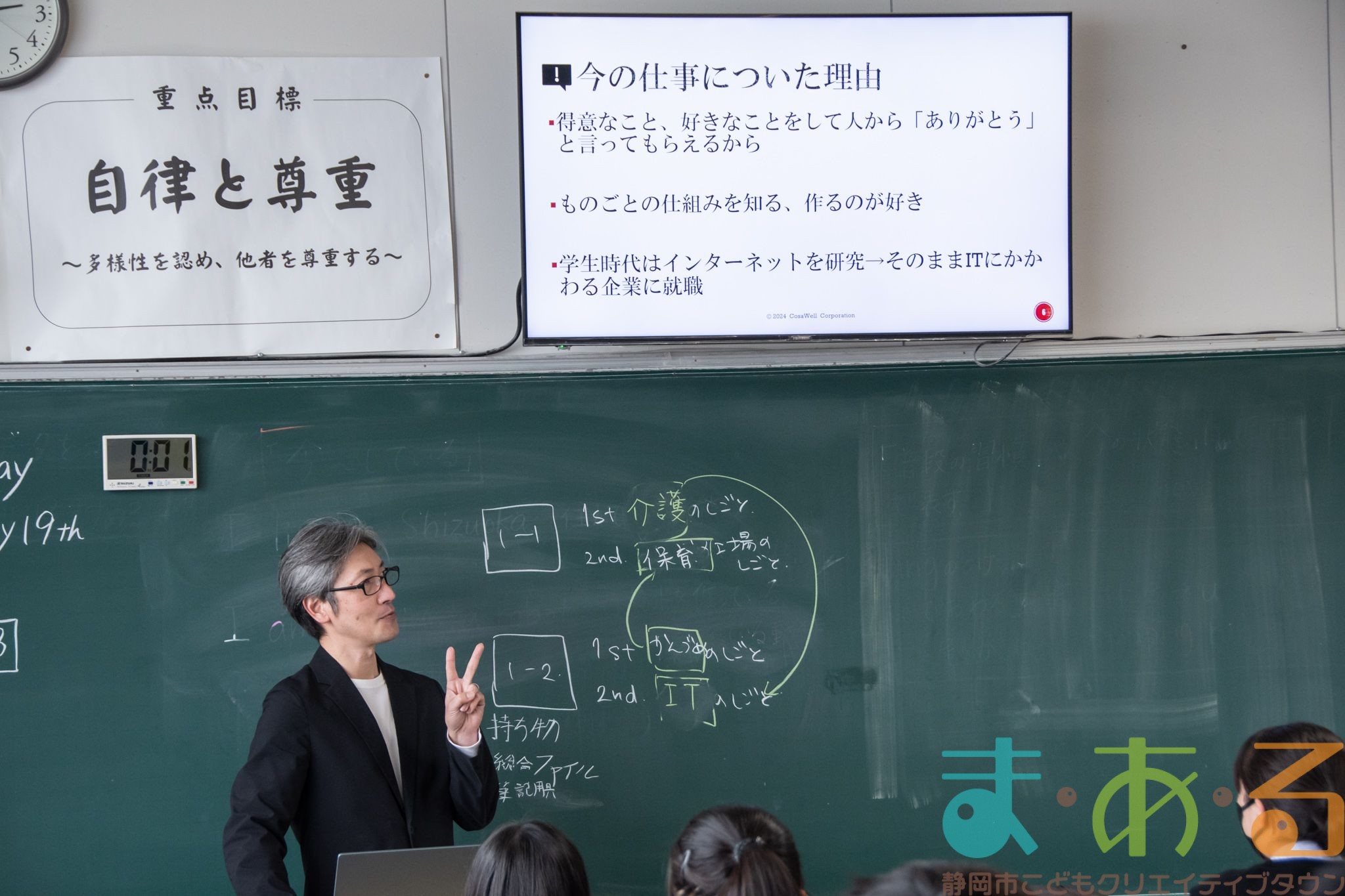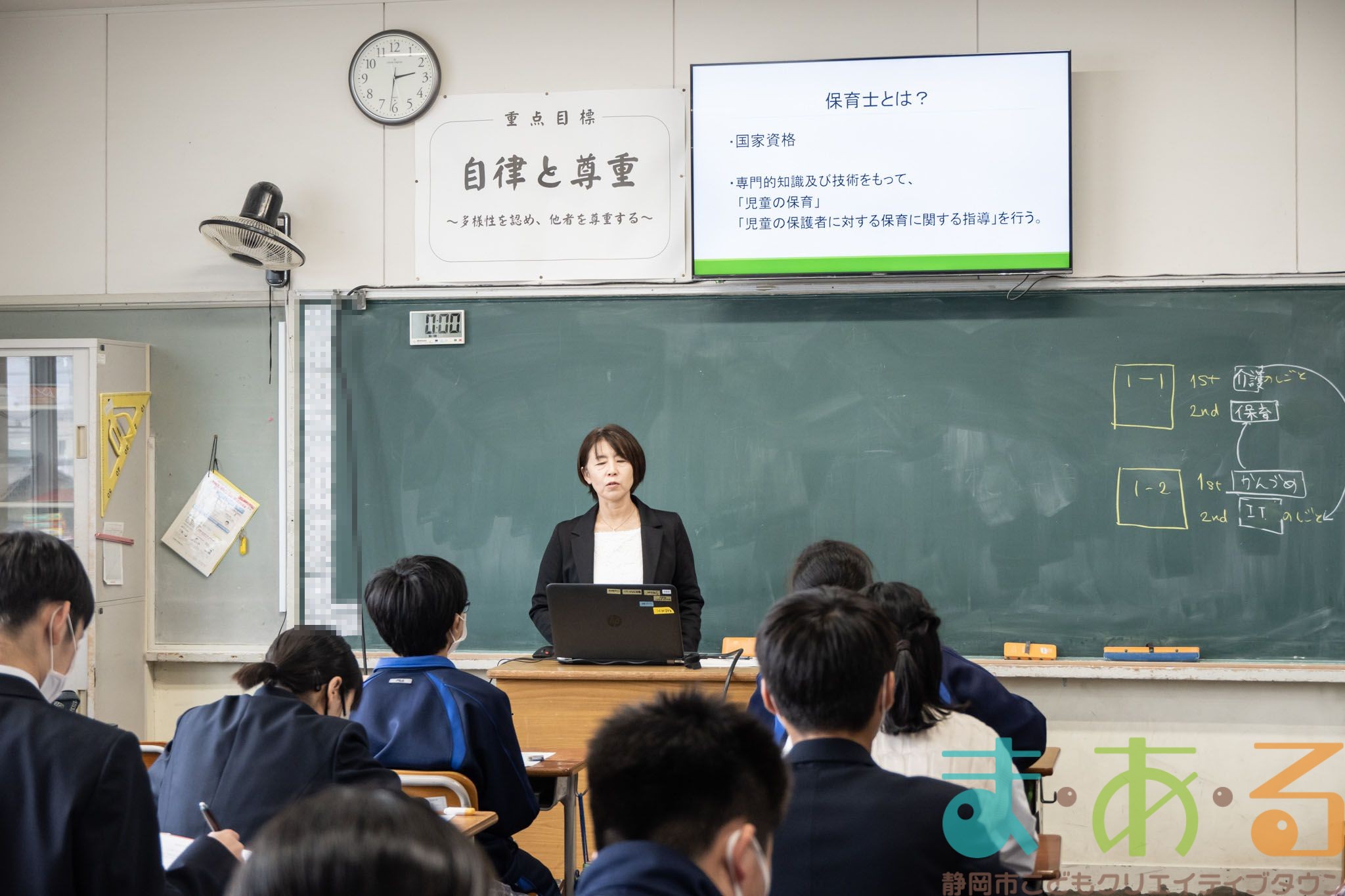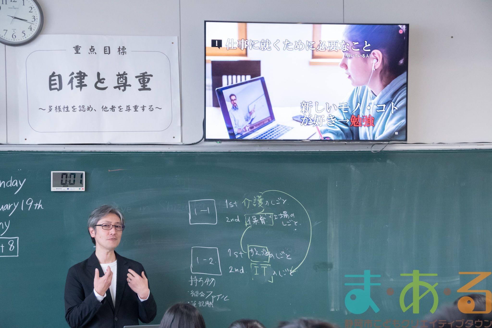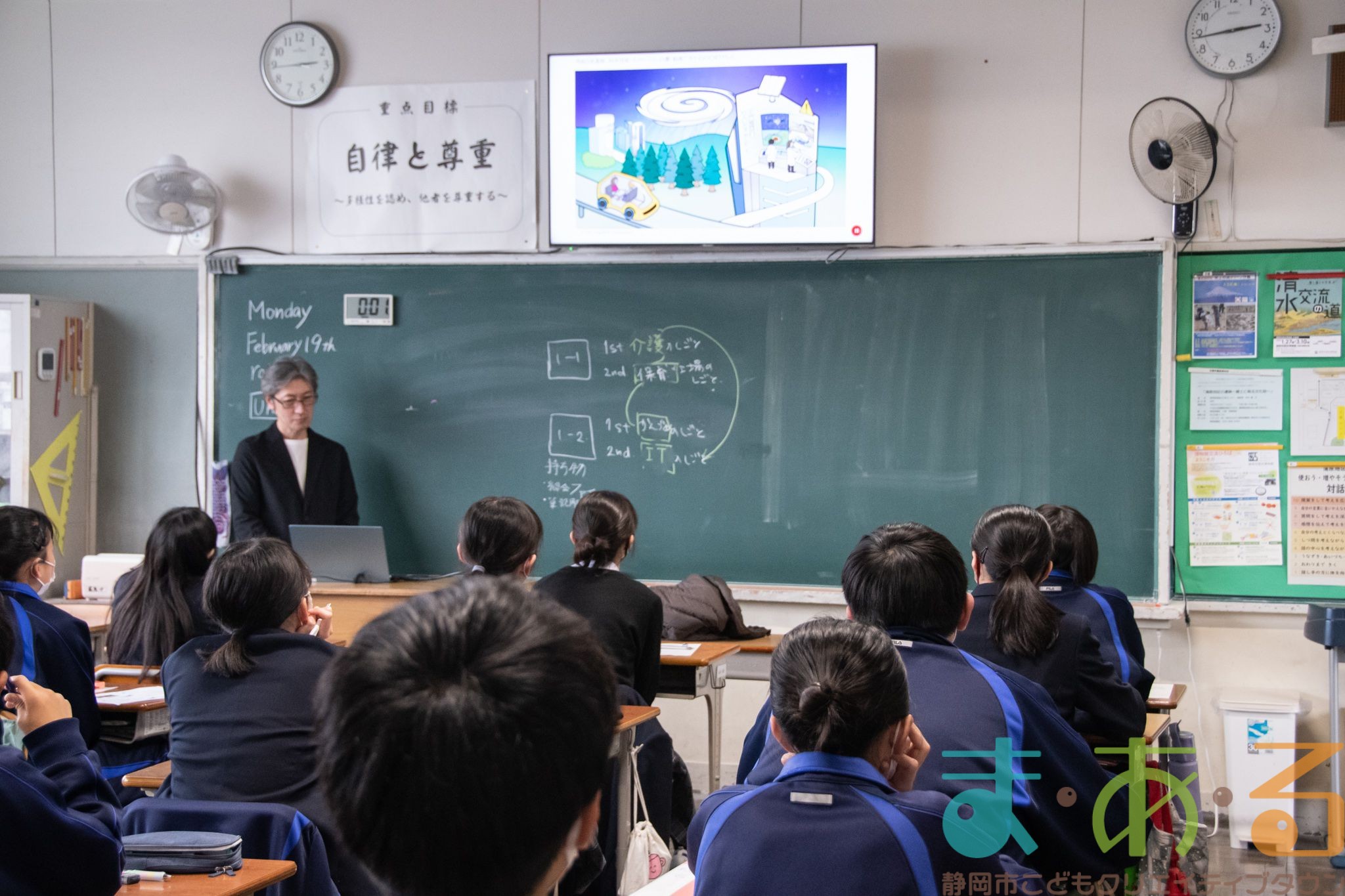 2月19日は、静岡市立蒲原中学校1年生の団体利用がありました。今回は学校へ出張して4つの職業講話を実施しました。