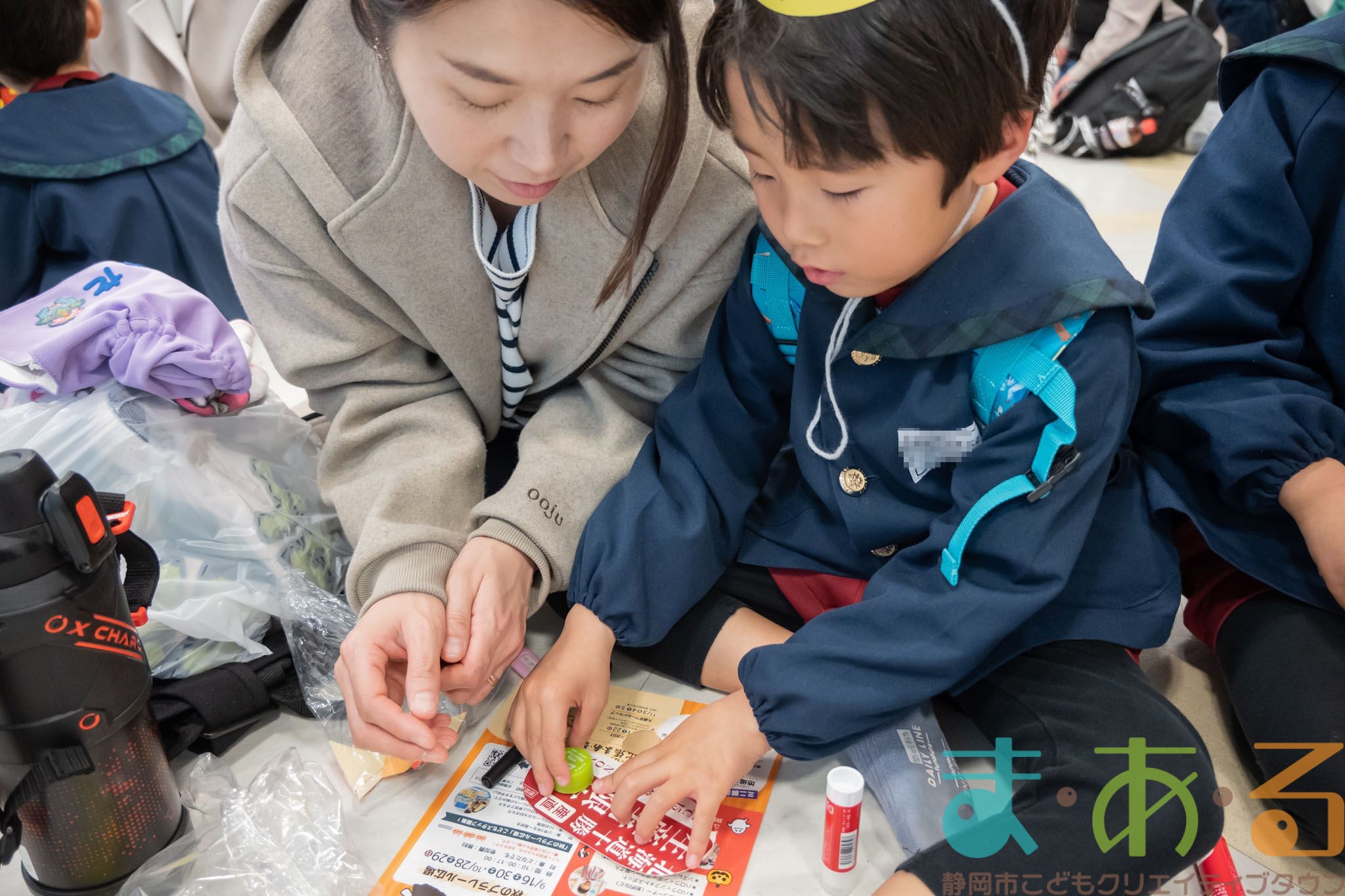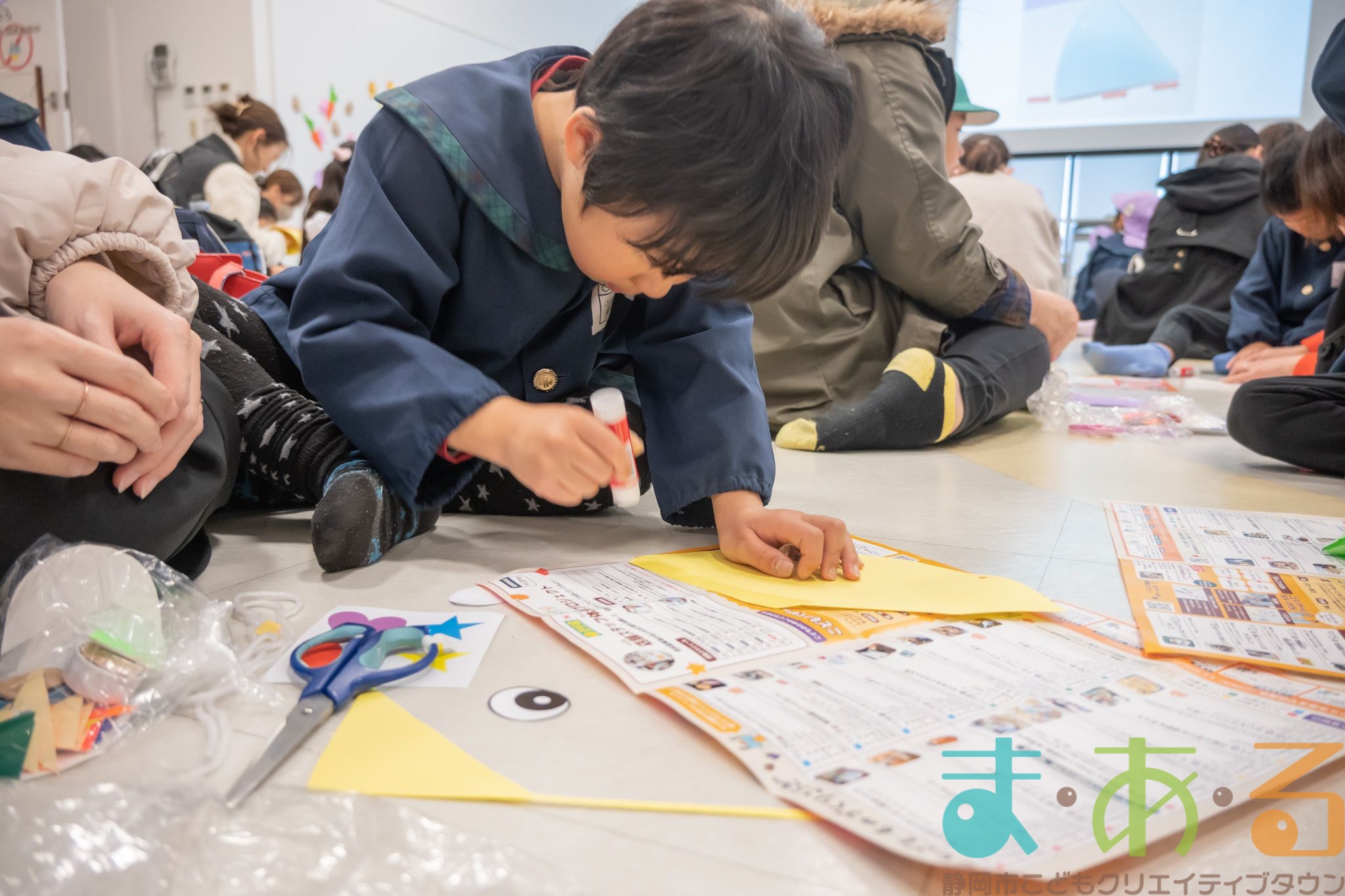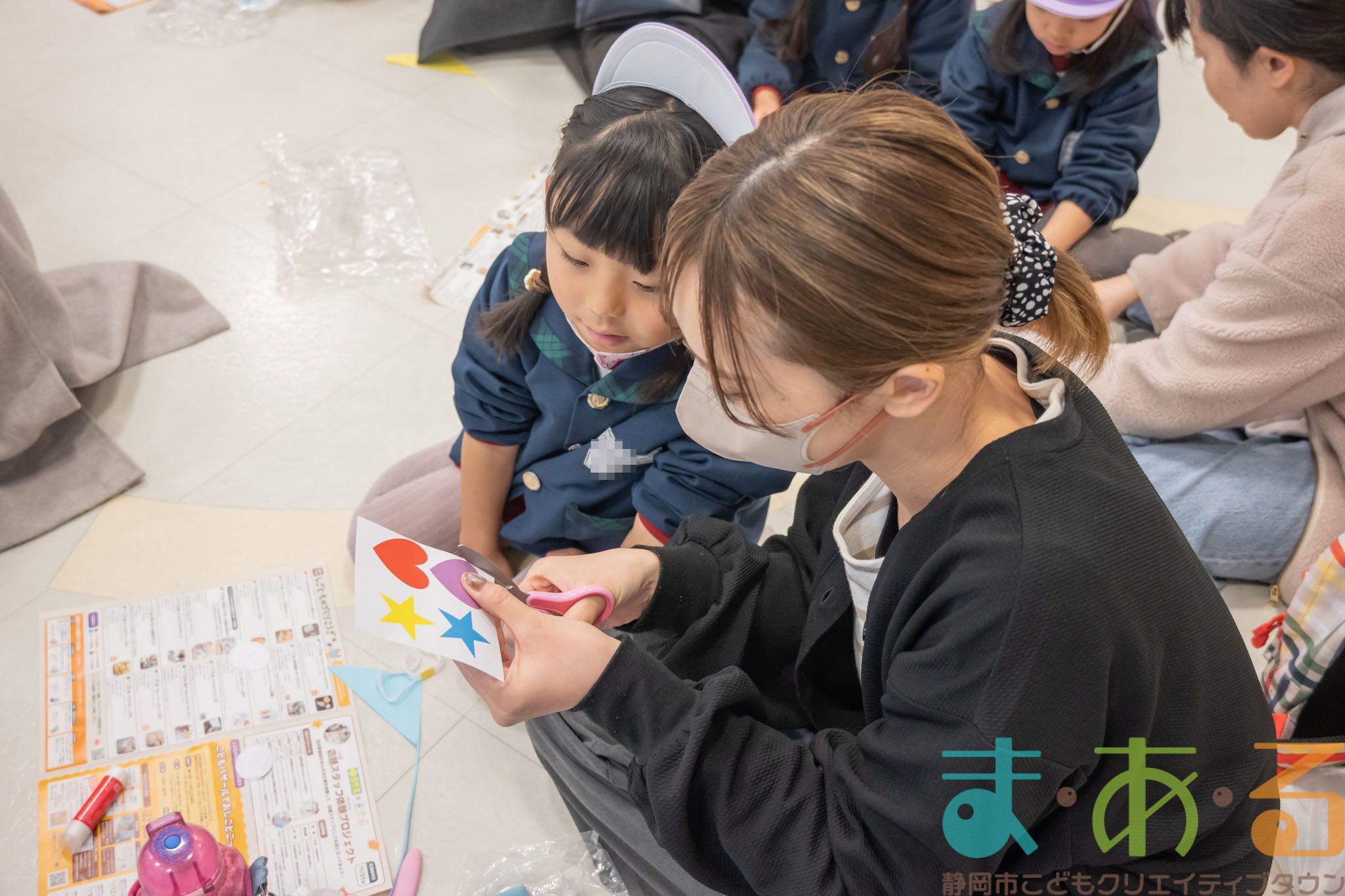 おうちの方に部品を切ってもらい、貼り付けていきます。