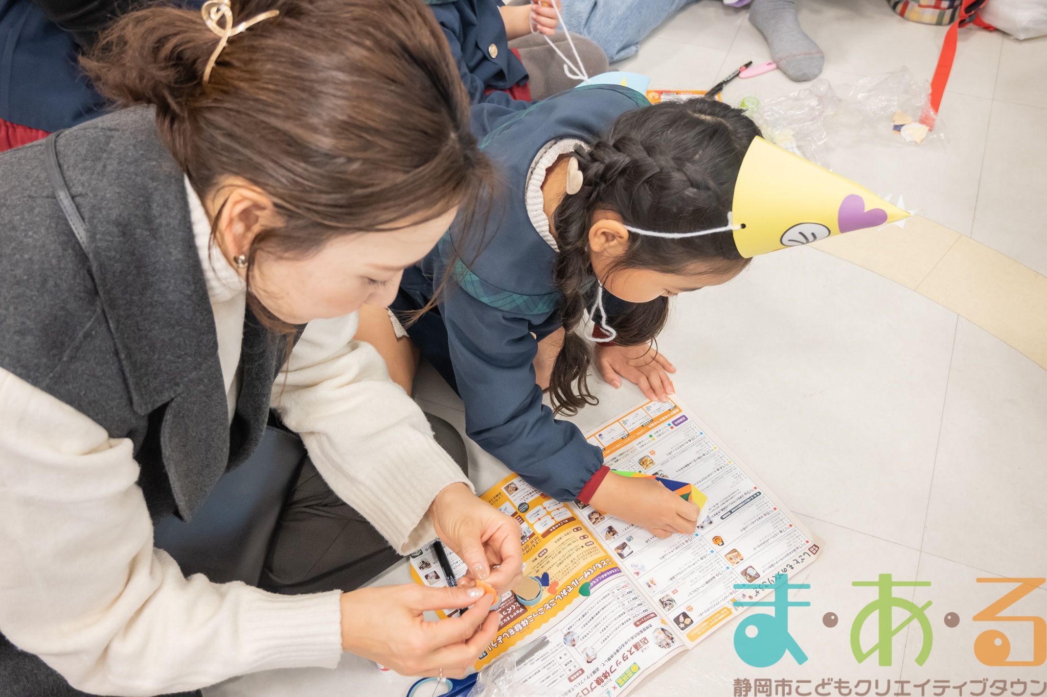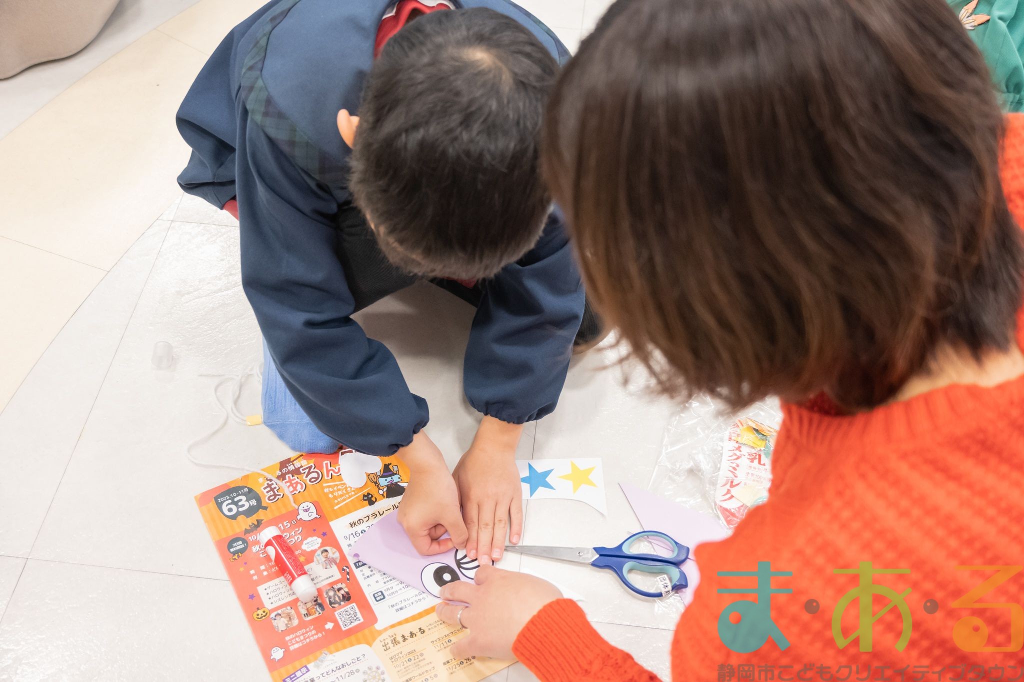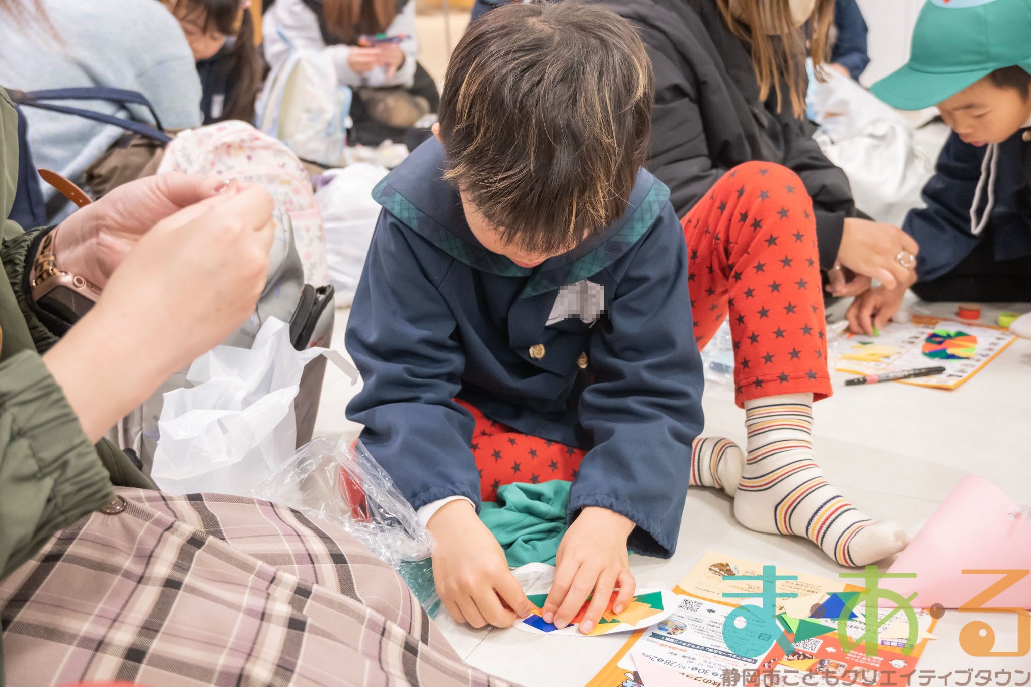 おうちの方に部品を切ってもらい、貼り付けていきます。