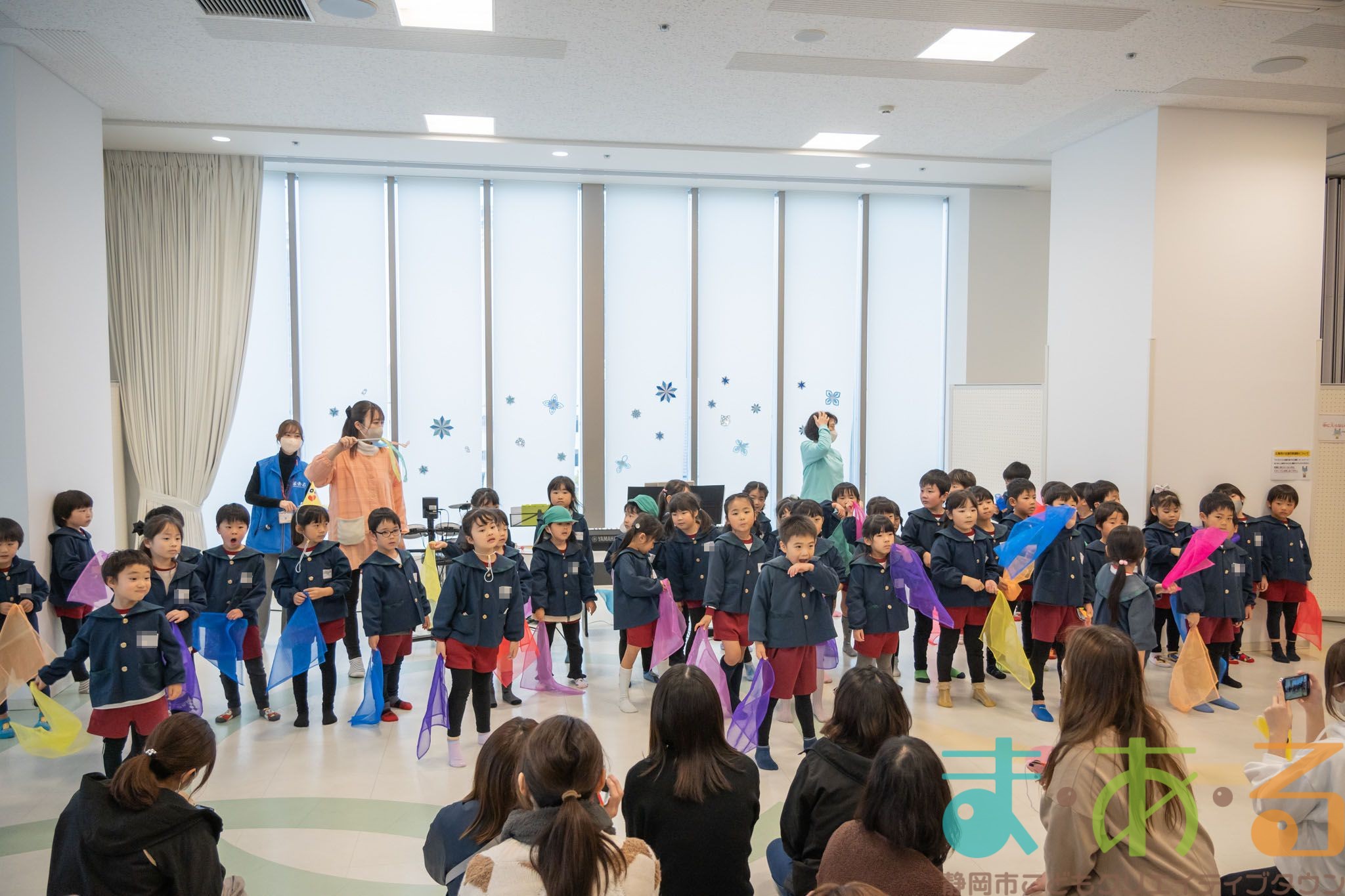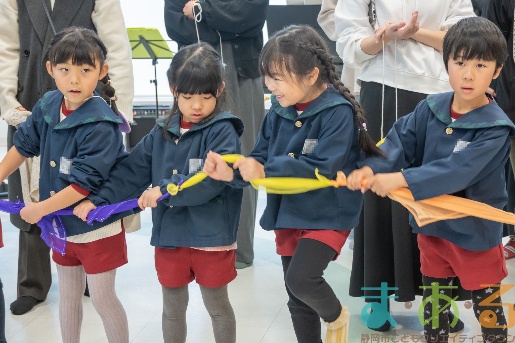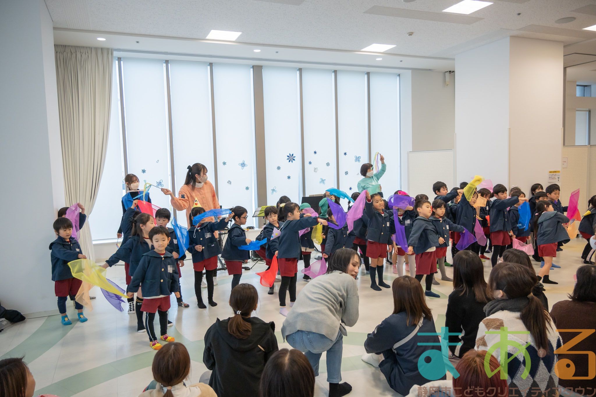 全員でステージに集まって、音楽に合わせてスカーフをふりました。