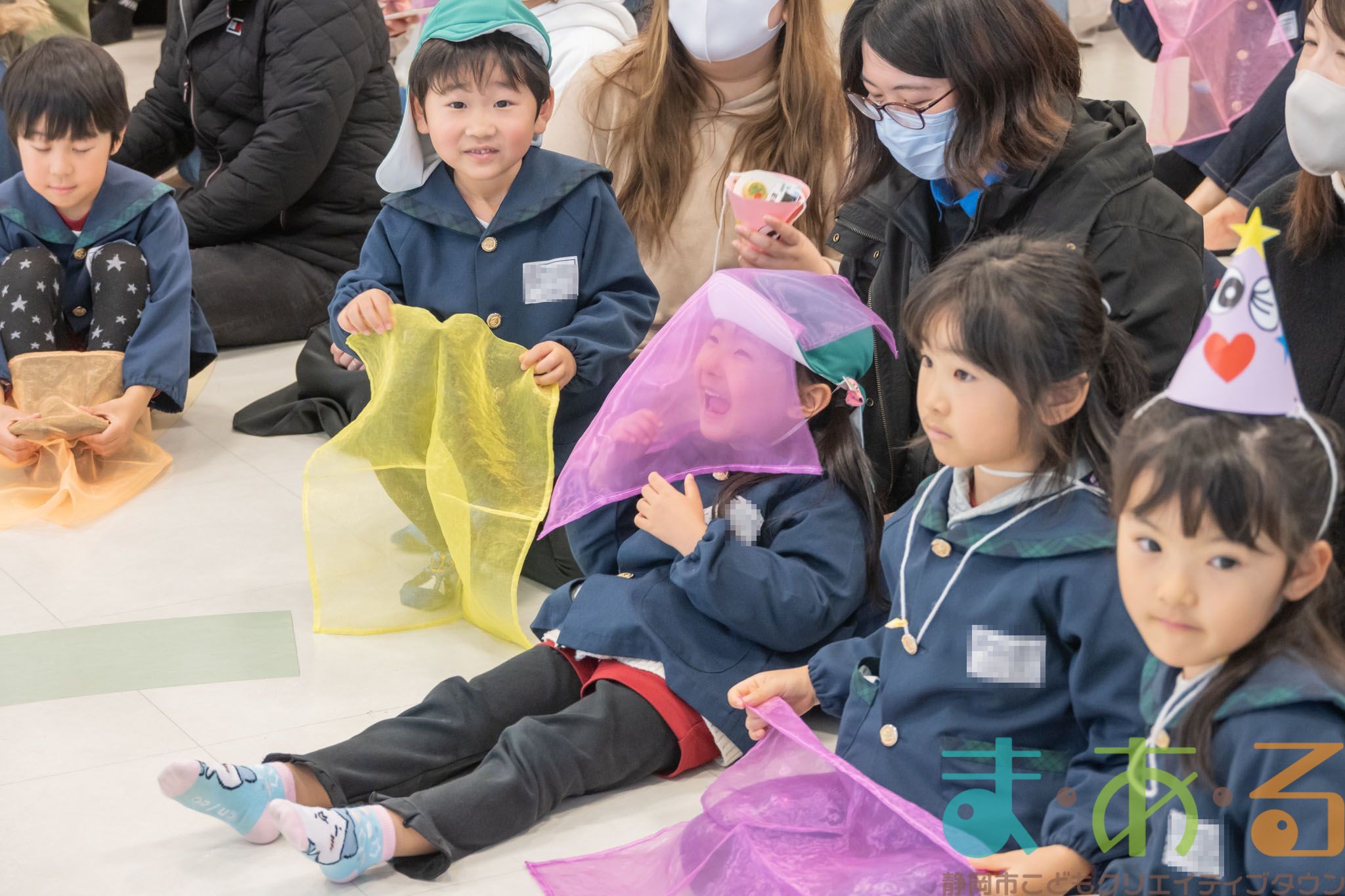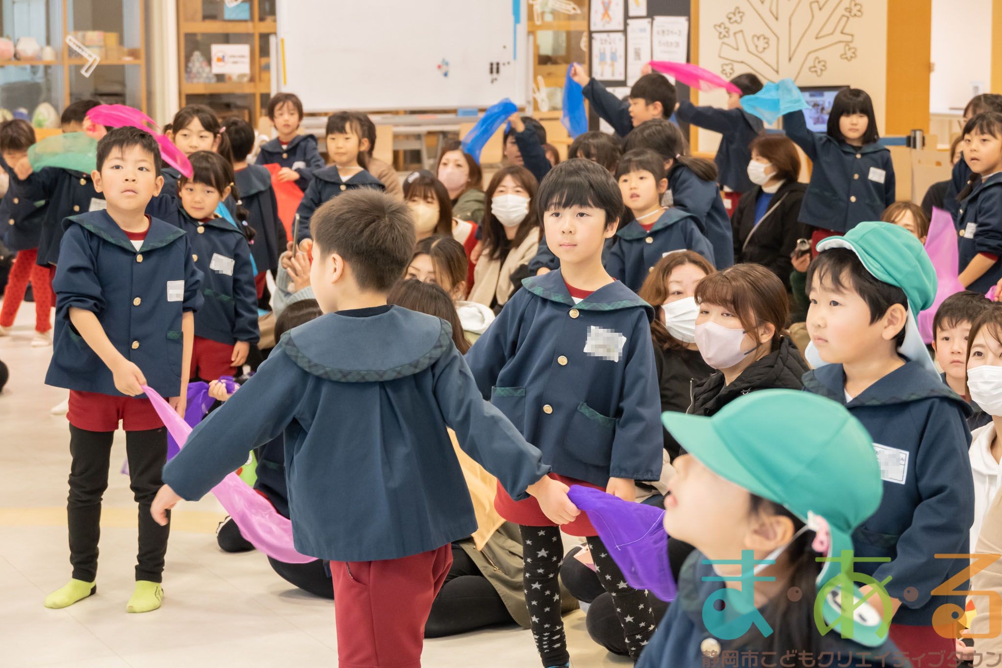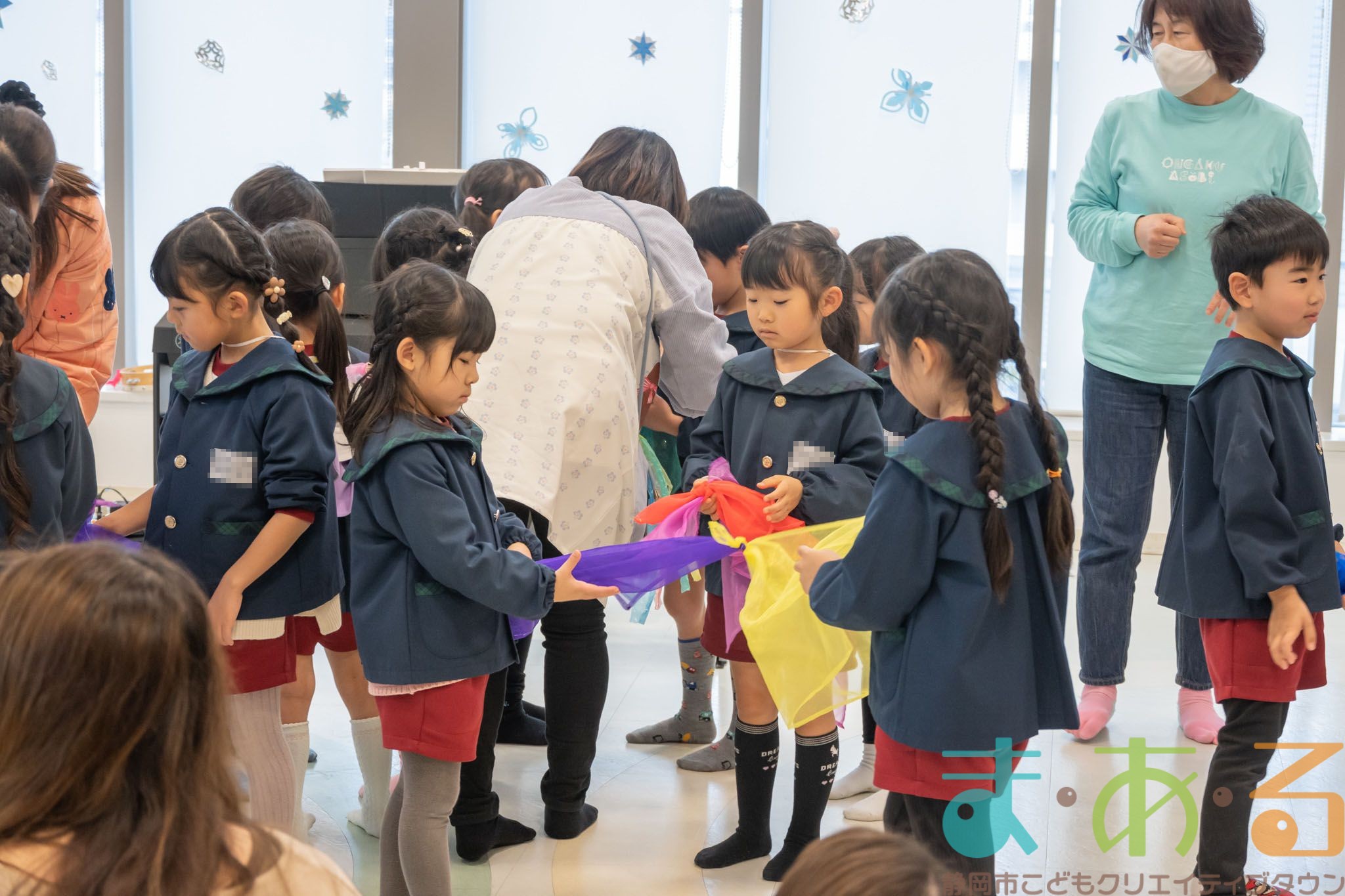 全員でステージに集まって、音楽に合わせてスカーフをふりました。