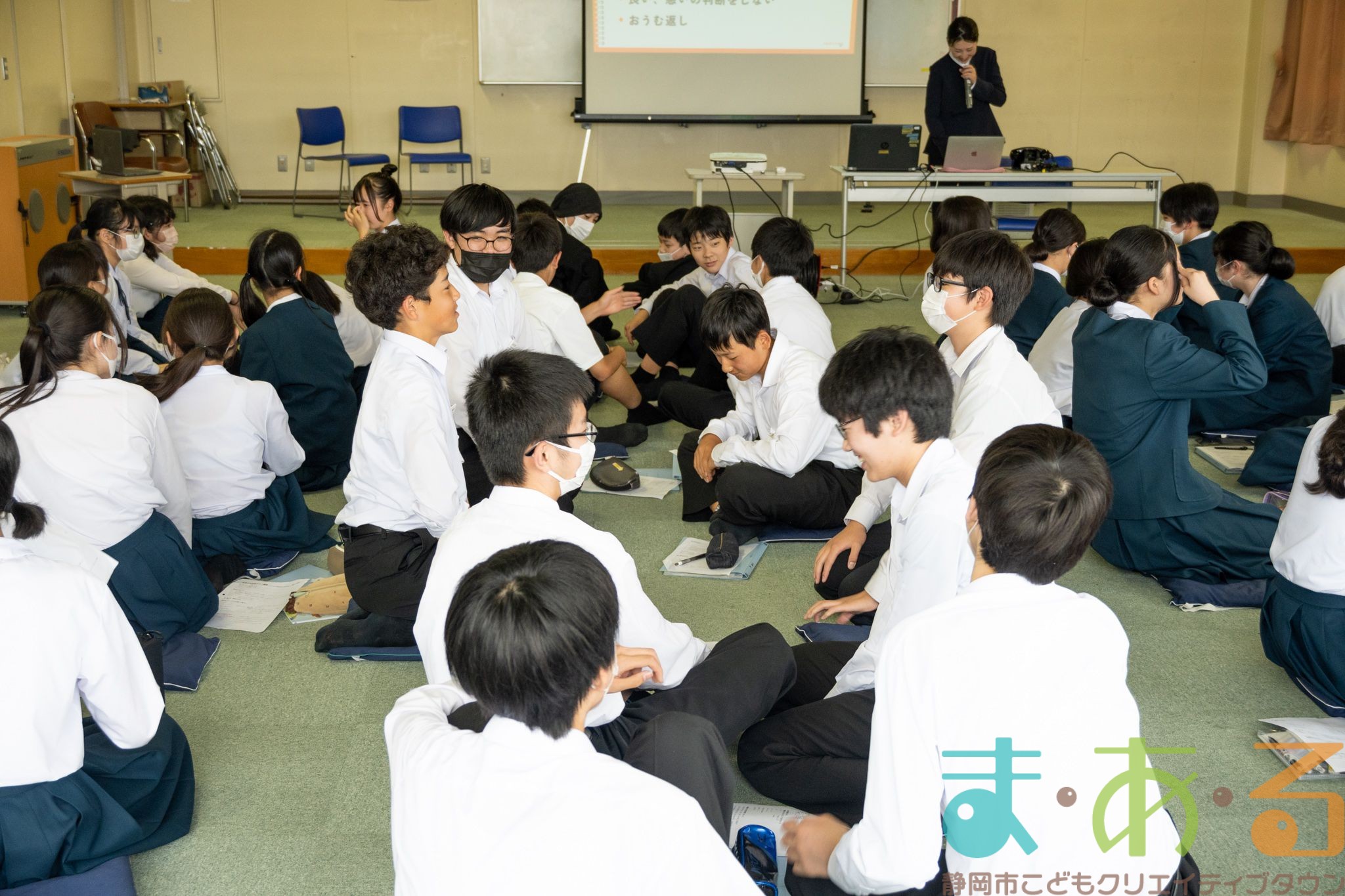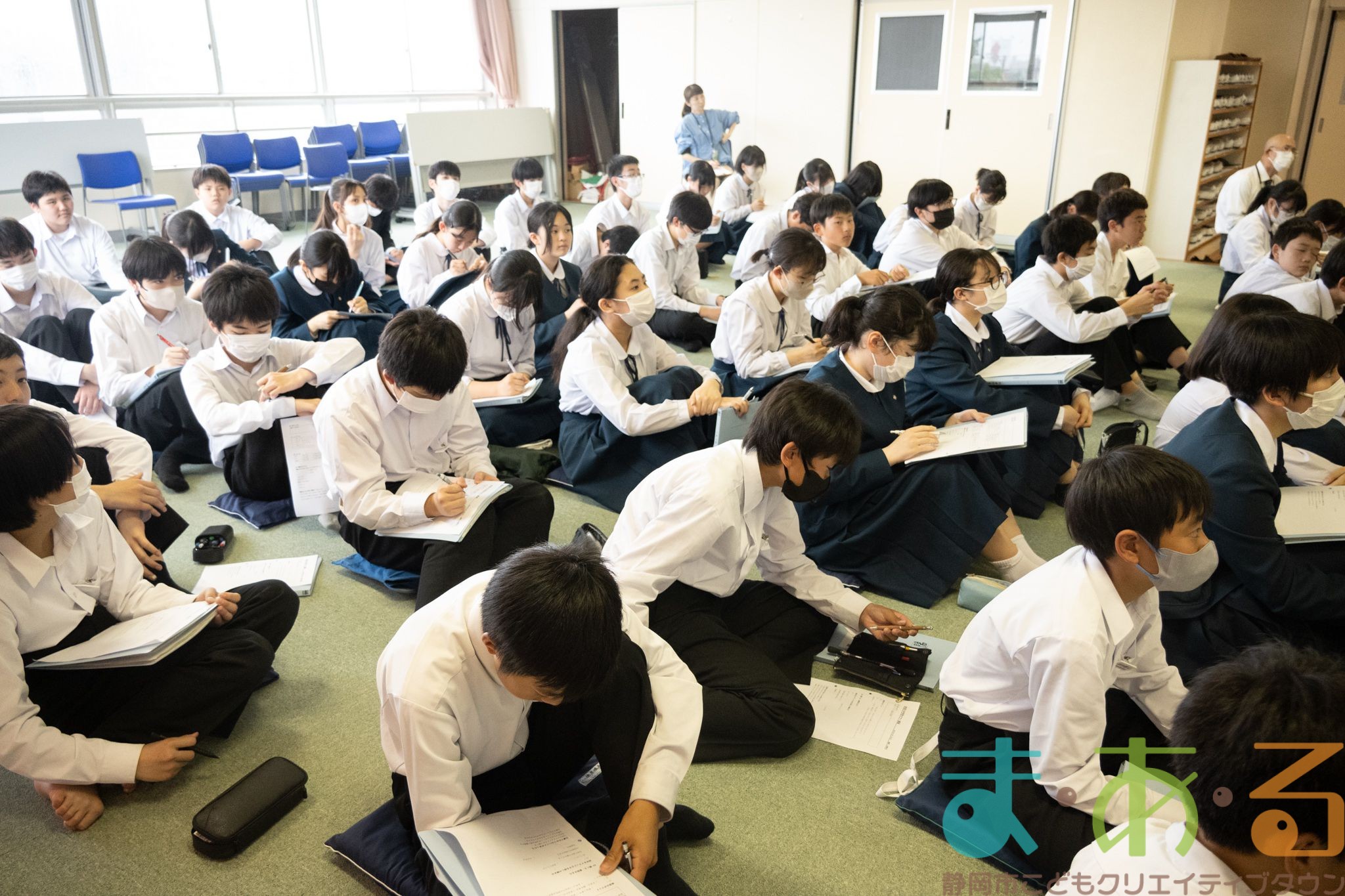 5月7日は、静岡市立安倍川中学校2年生の団体利用で学校へ出張しました。