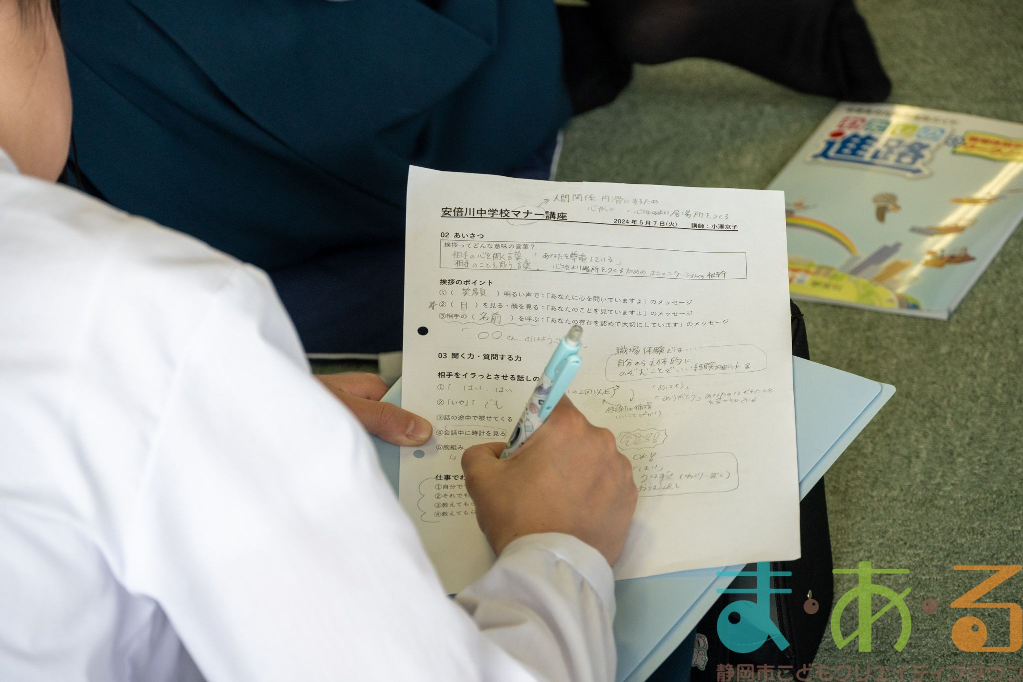 職場体験前の心構えを学べるマナー講座を行うプログラムです。
