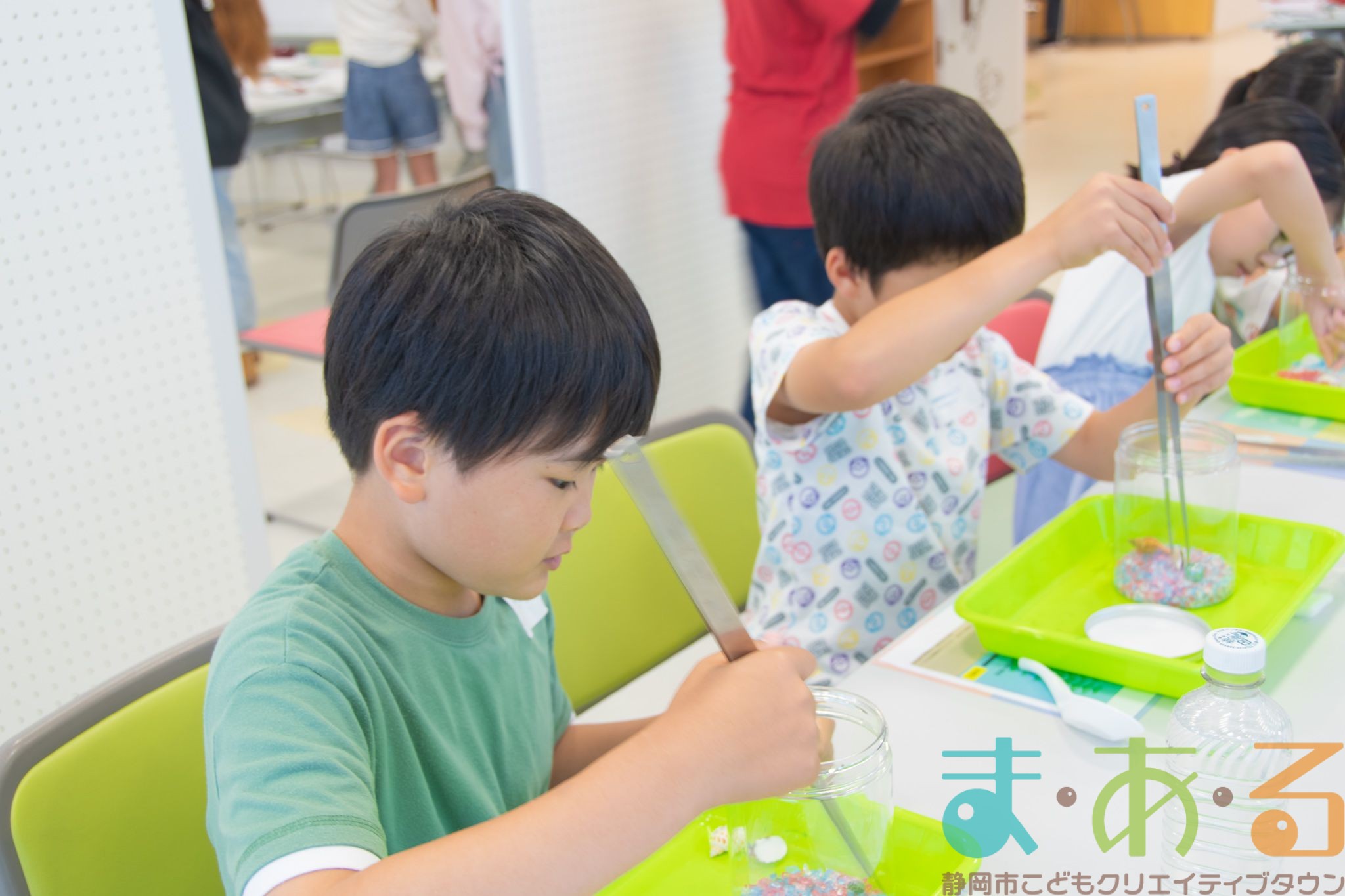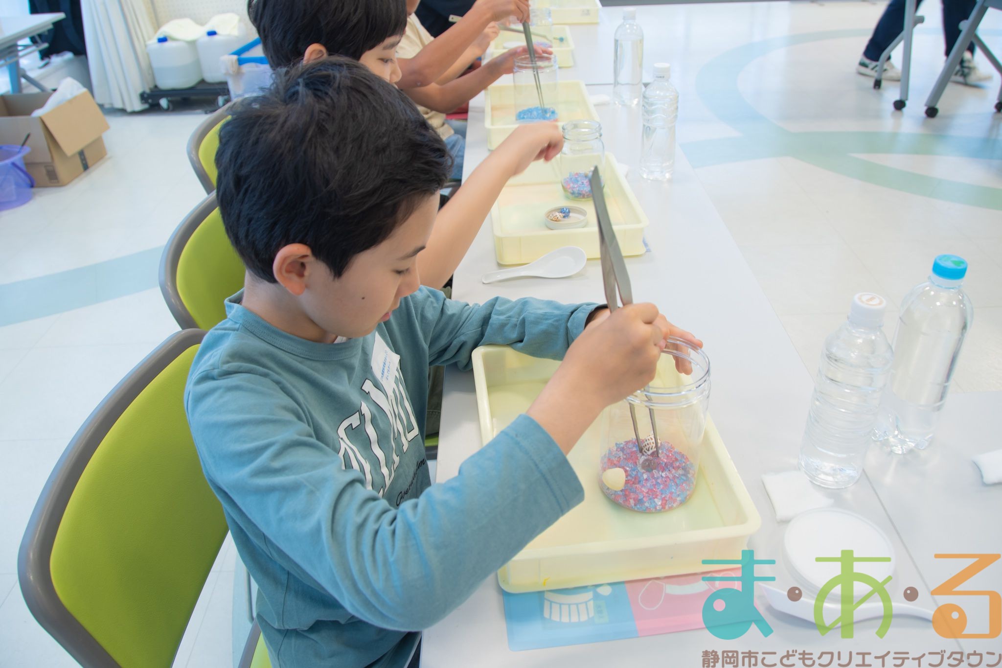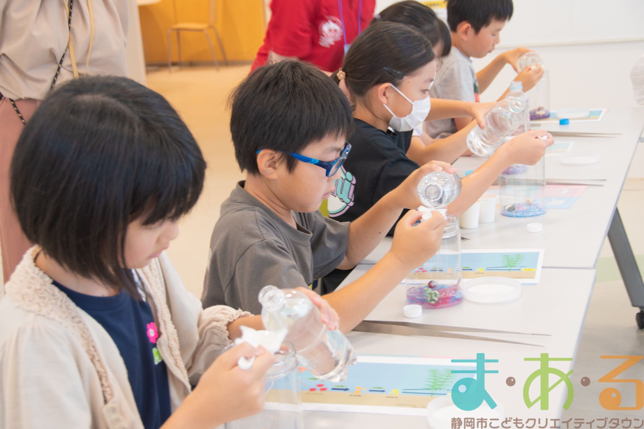 水を入れると貝殻やカラーサンドが浮いてきてしまうので、「沈め~」と念を送っている方もいましたよ。