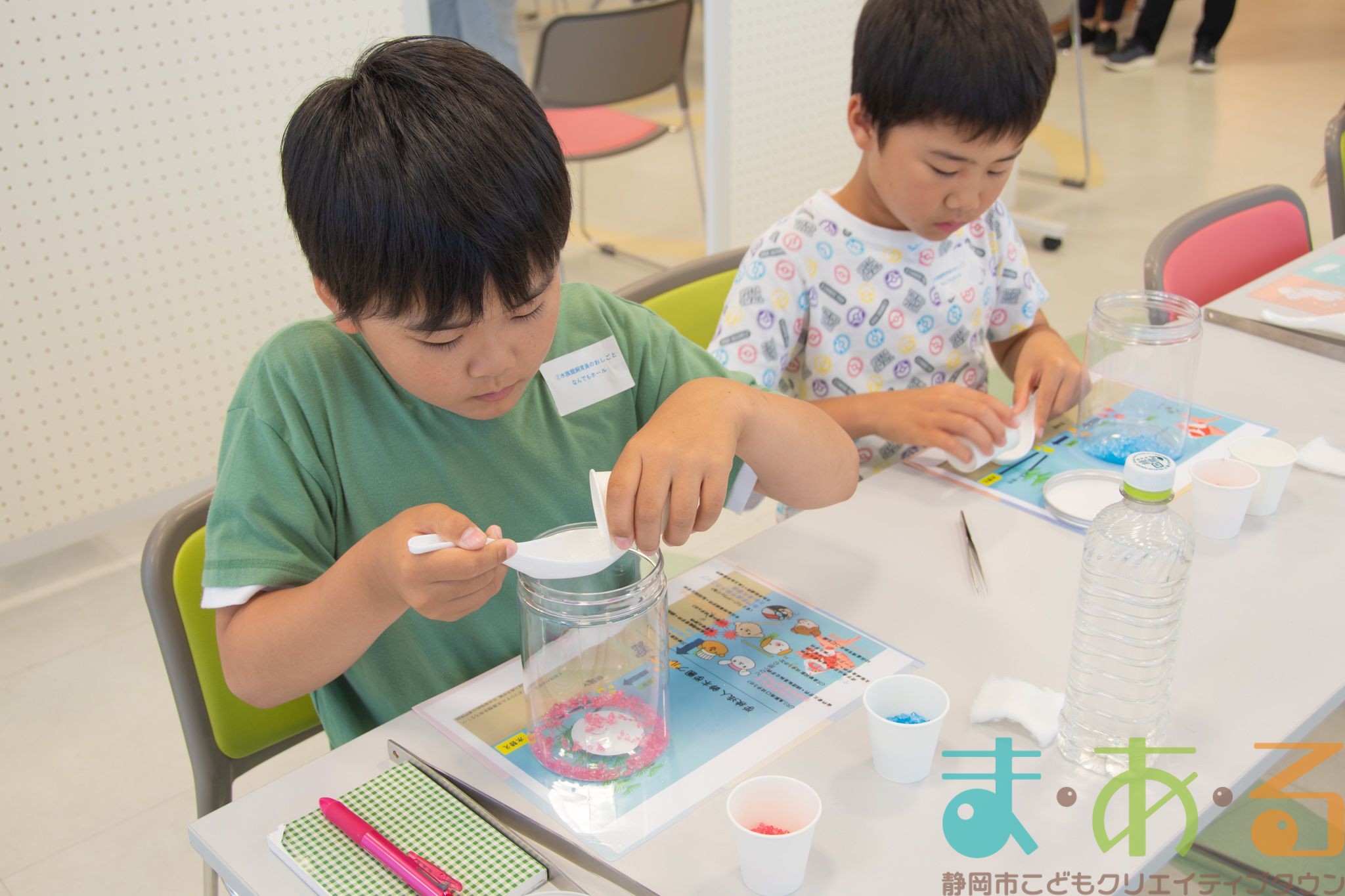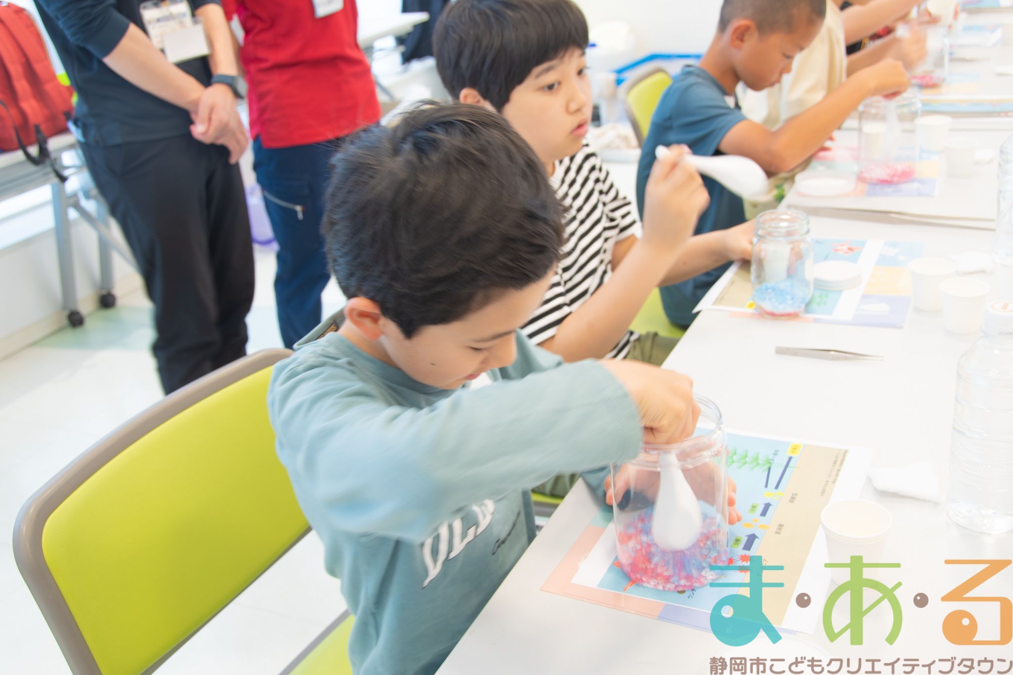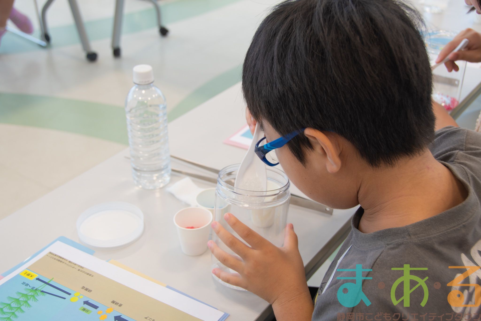 水を入れると貝殻やカラーサンドが浮いてきてしまうので、「沈め~」と念を送っている方もいましたよ。