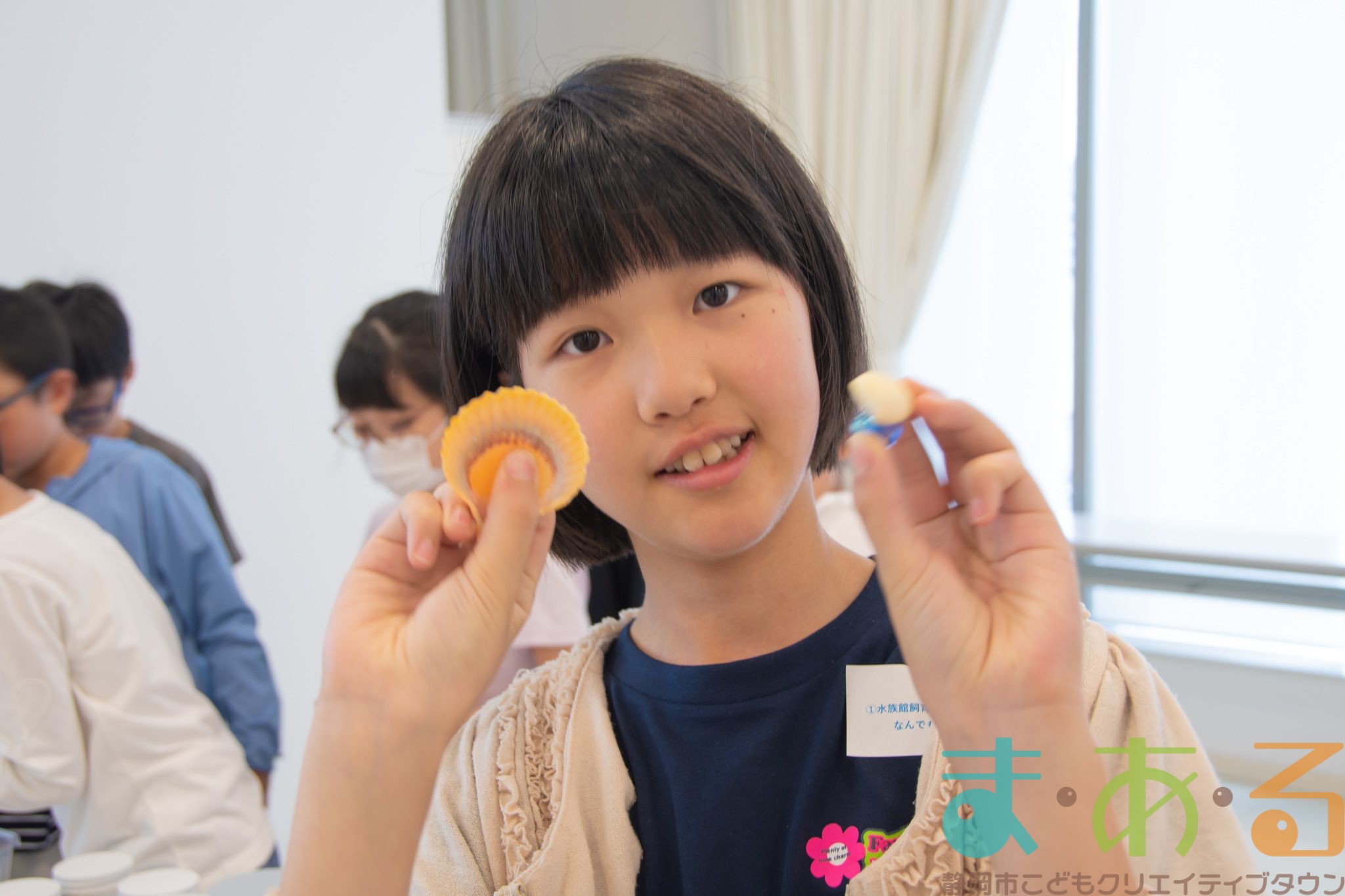 ビー玉と貝殻を組み合わせて真珠のようにしたり、貝殻を立てて入れてみたり、組み合わせ方は様々です。