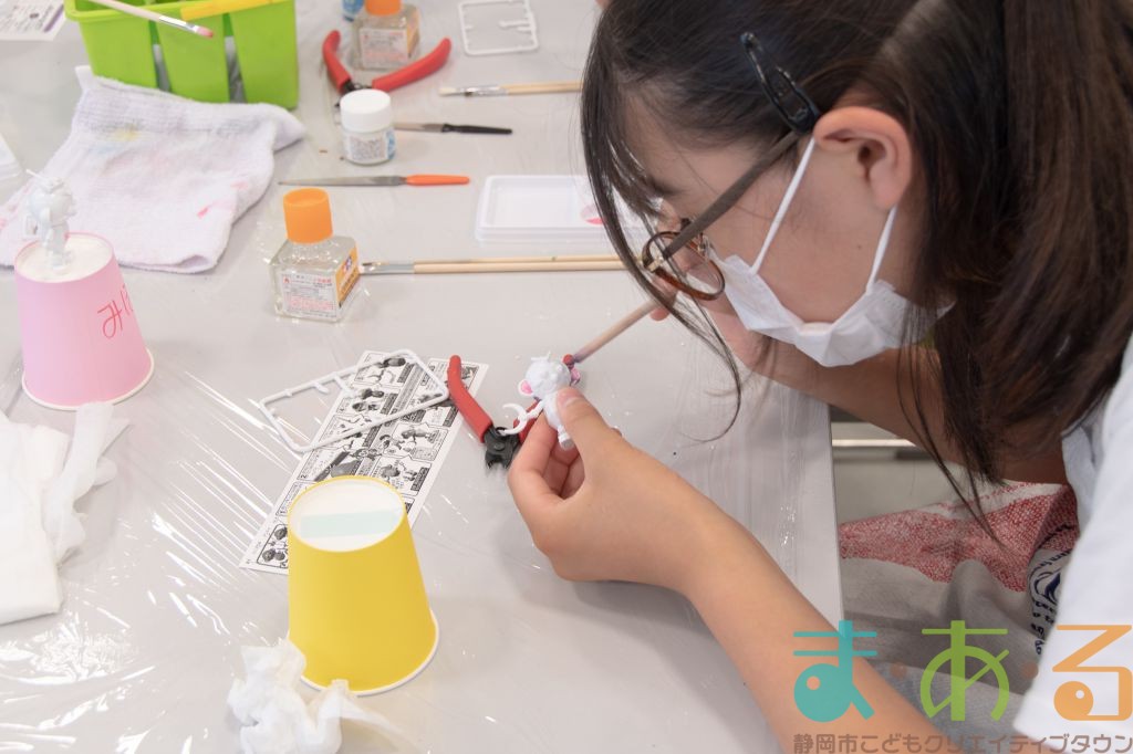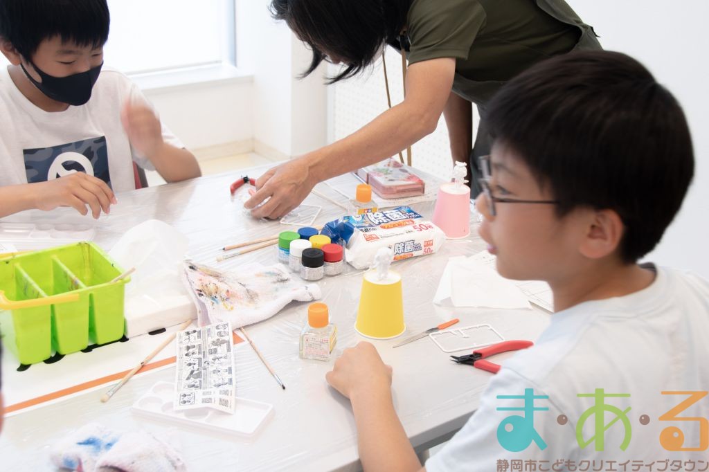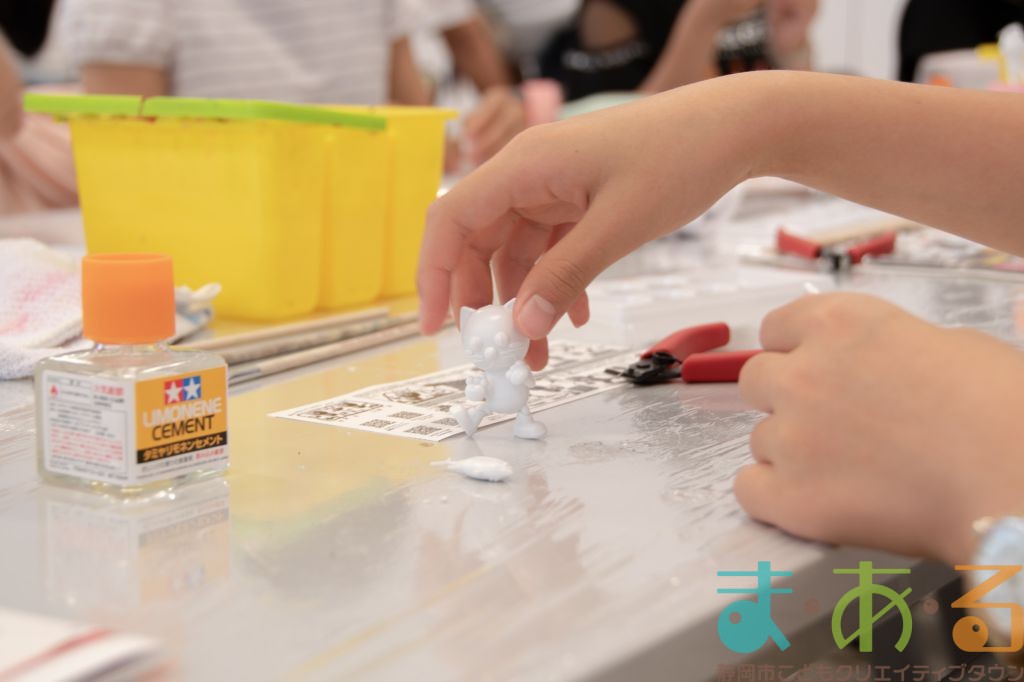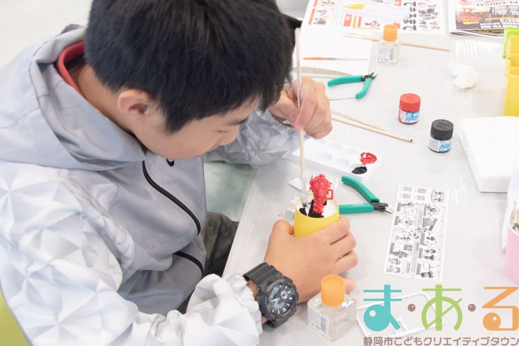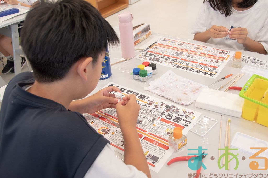 プラモデルメーカーのおしごと内容について、お話を聞いた後に実際にプラモデルを作ります。