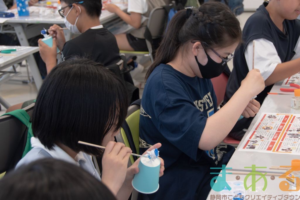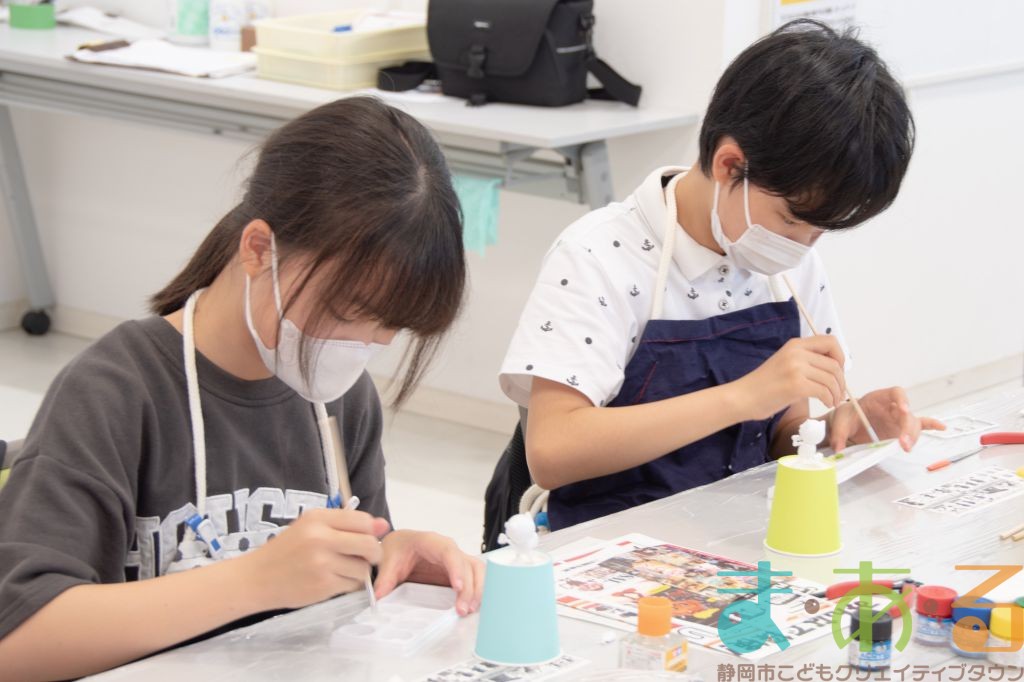 組み立てた後は、色を塗っていきます。「どんな色がいいかな?」と友達同士で相談しながら進める方もいましたよ。