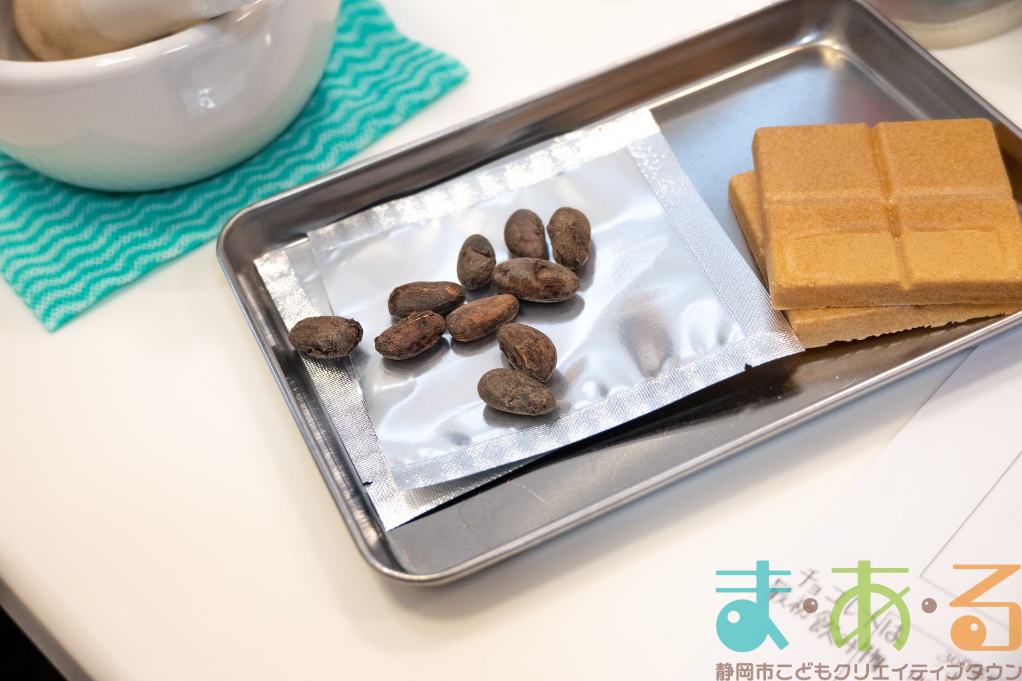 チョコレートができるまでのお話をいただきました。チョコレート作りはカカオ豆を焙煎するところから始まります。