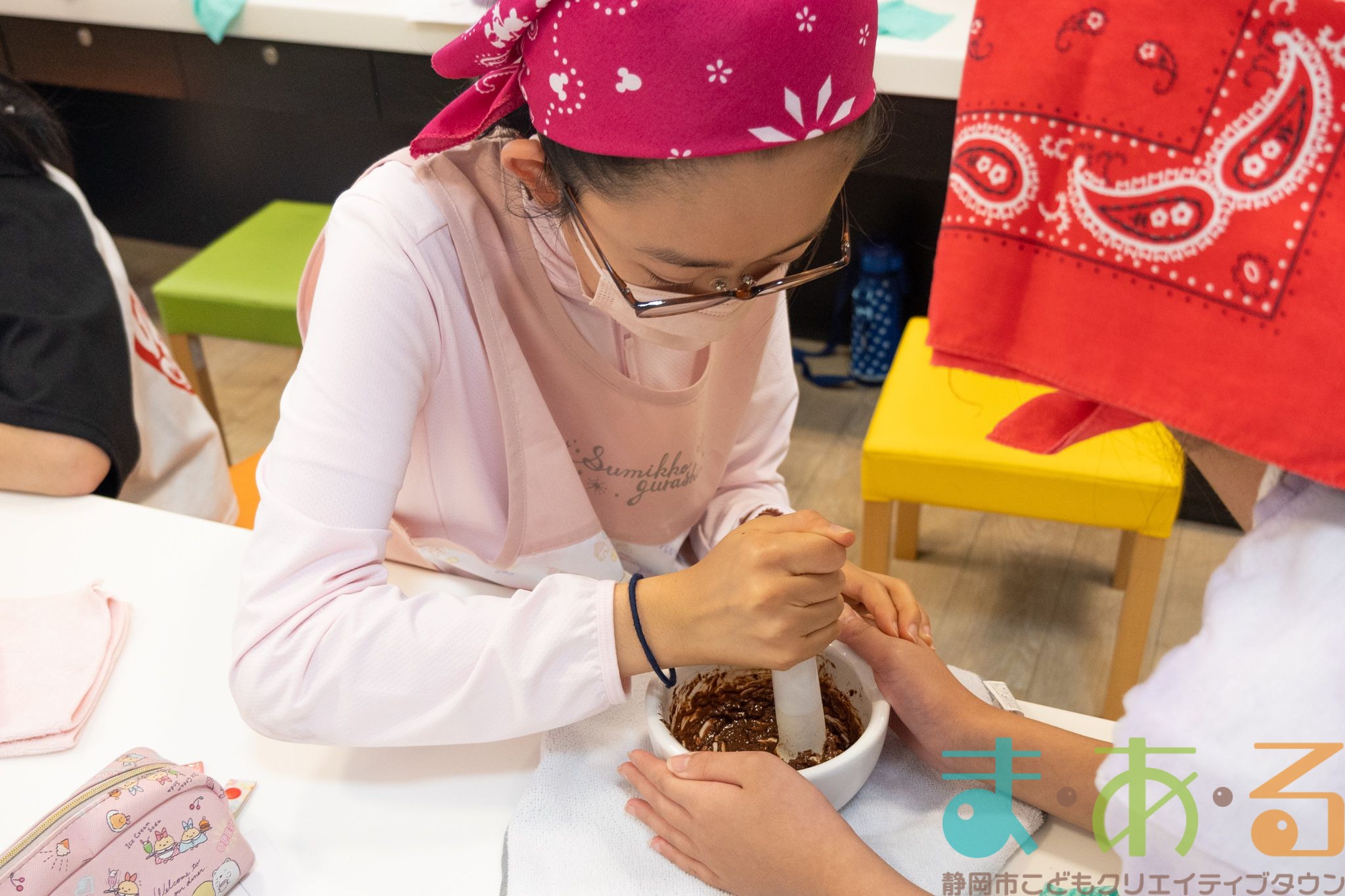 なかなか力がいる作業なため、器を持つ人とすりつぶす人で交代しながら作業を進めていきます。