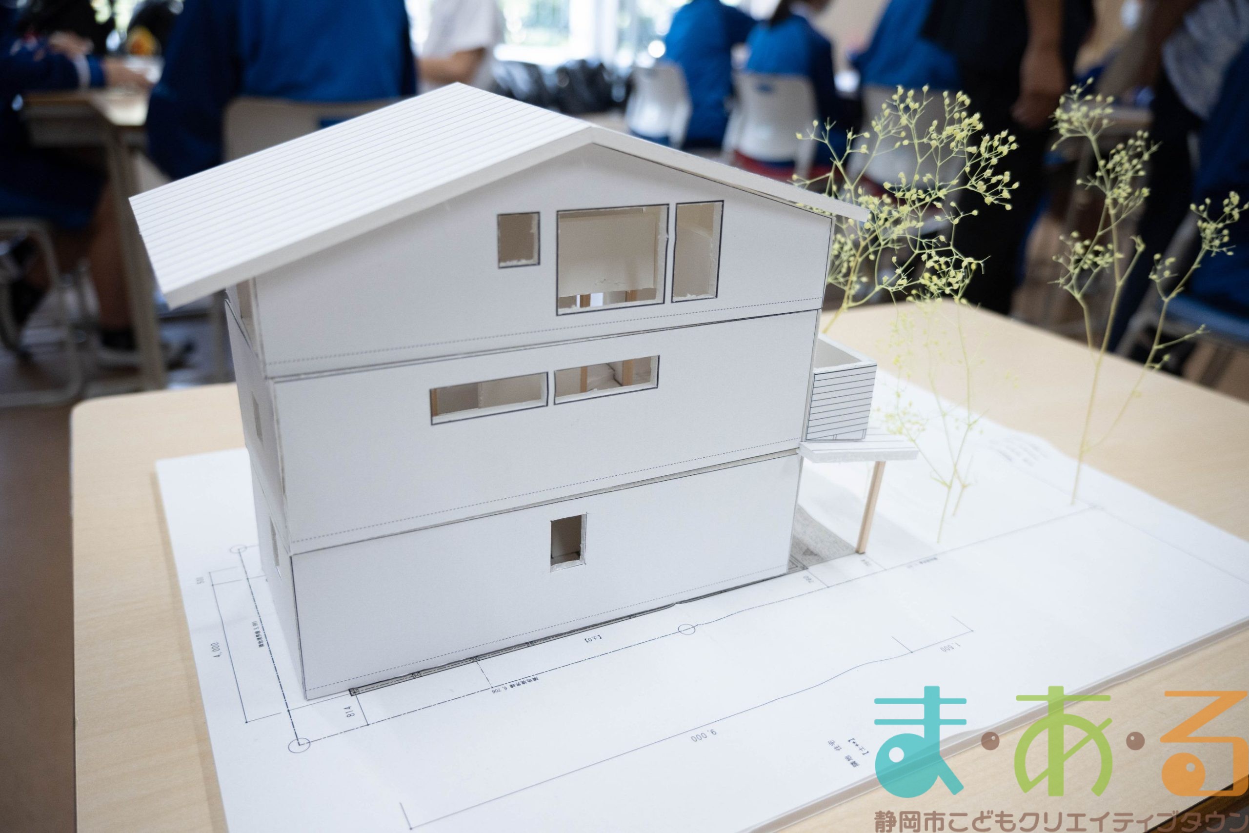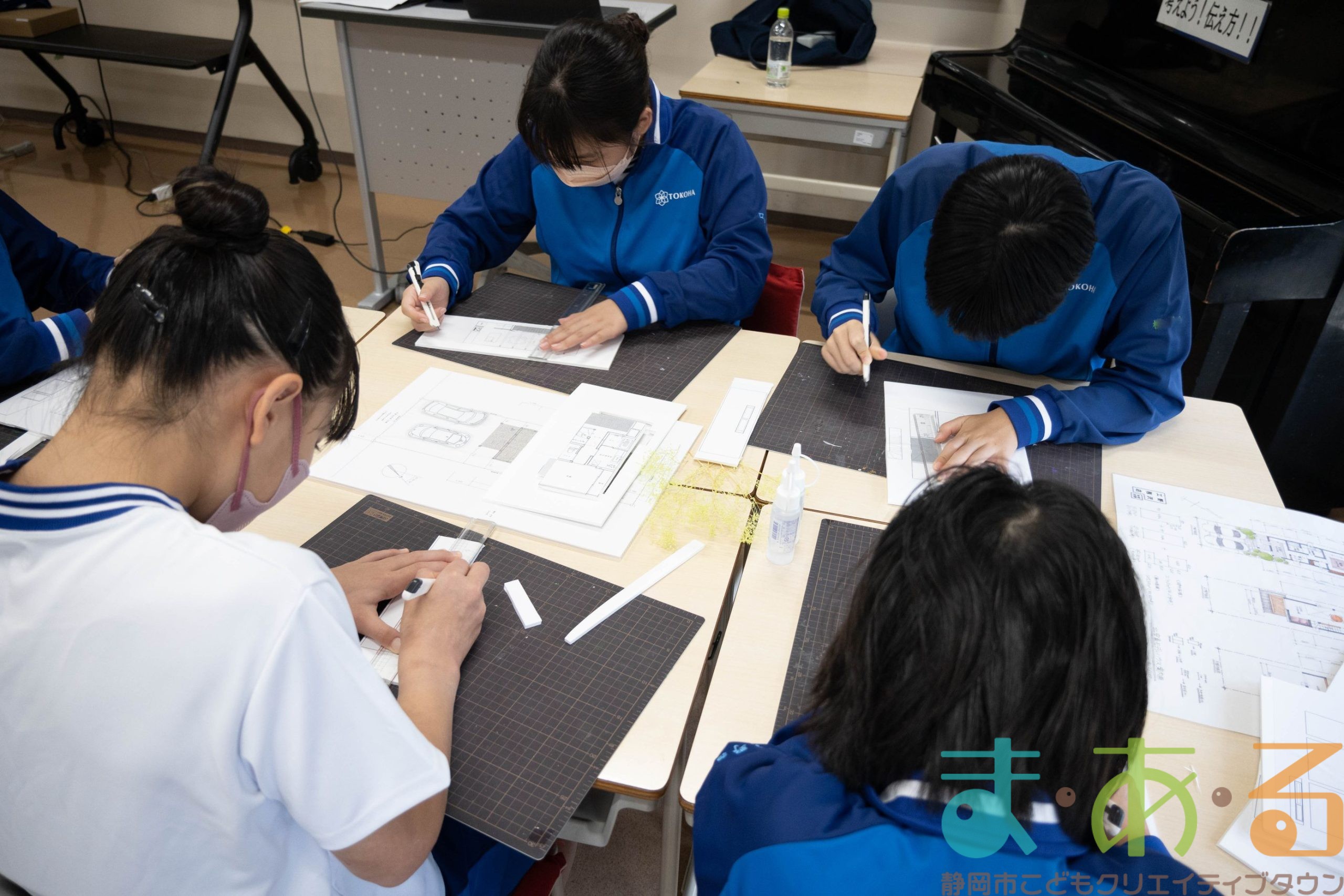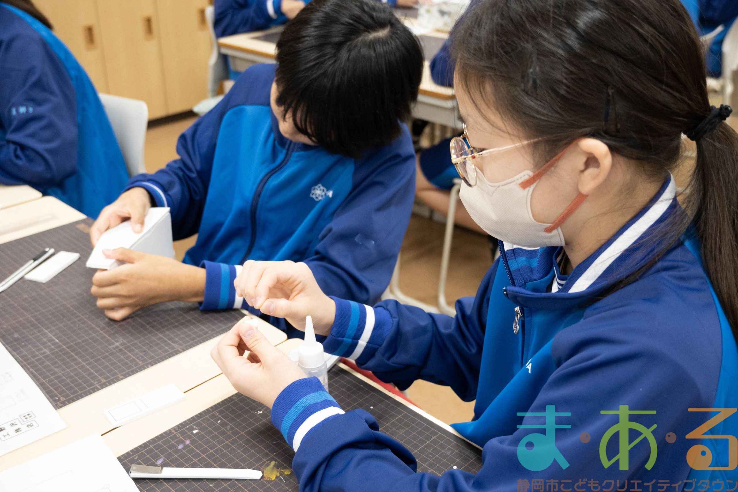 講話の後は生徒の皆さんにも建築模型作りを体験してもらいました。
