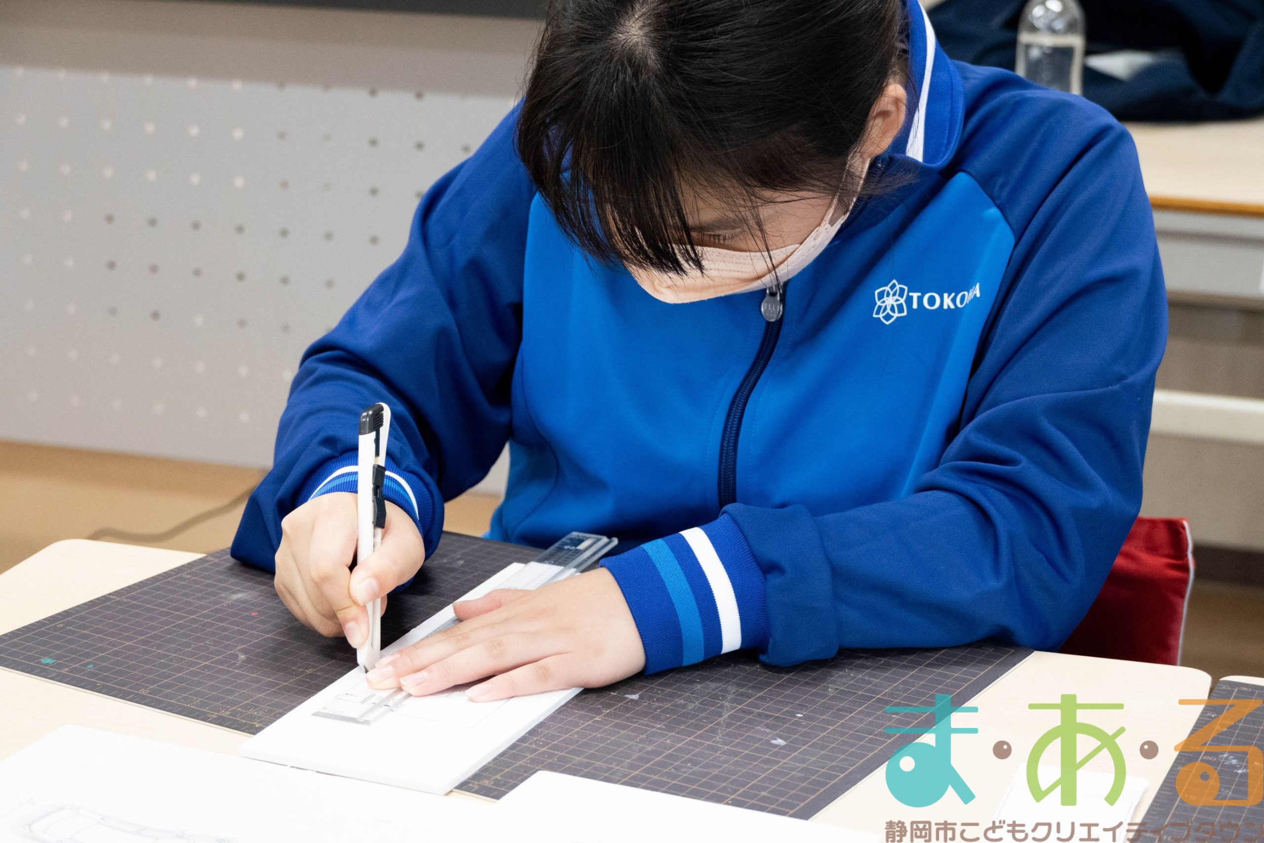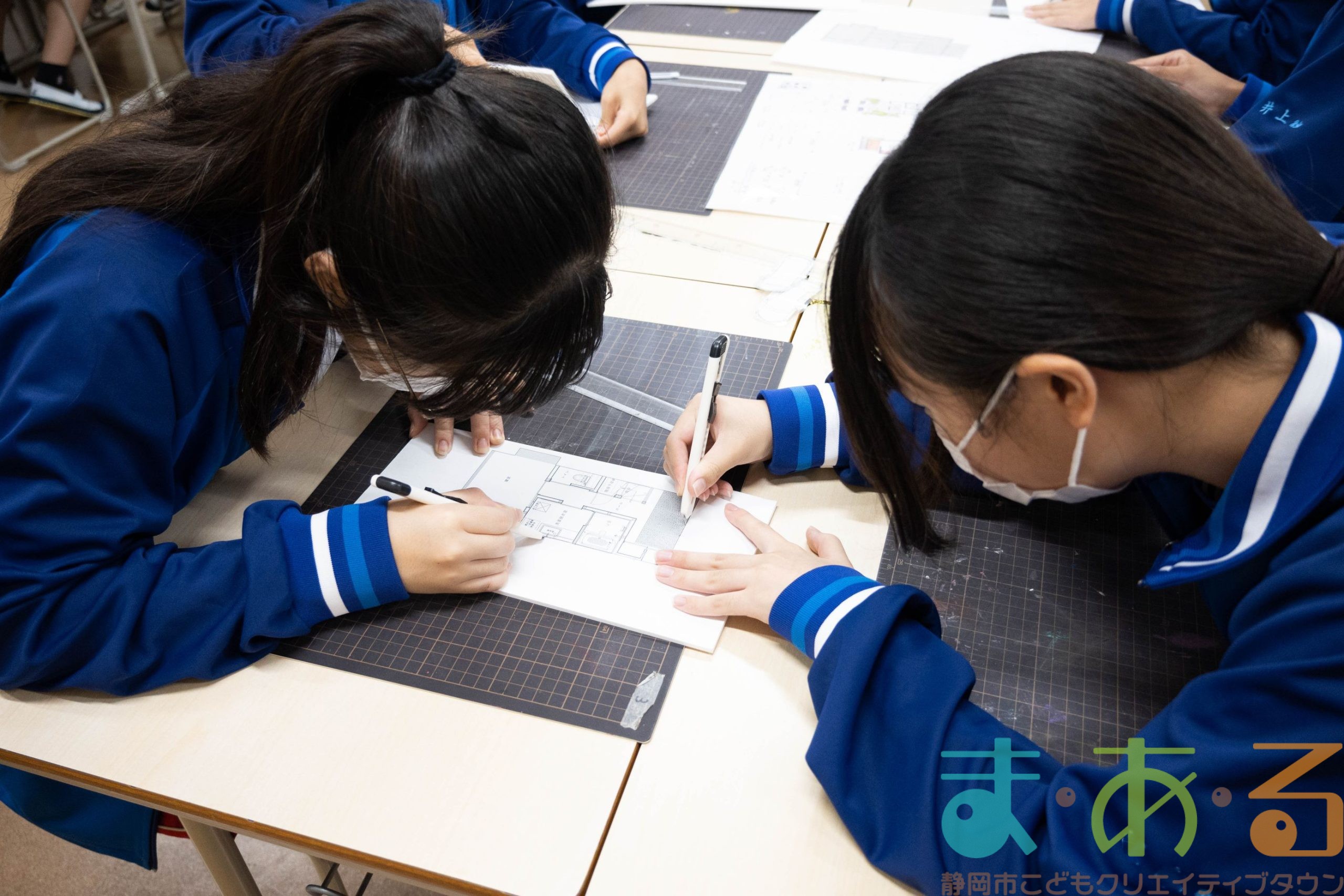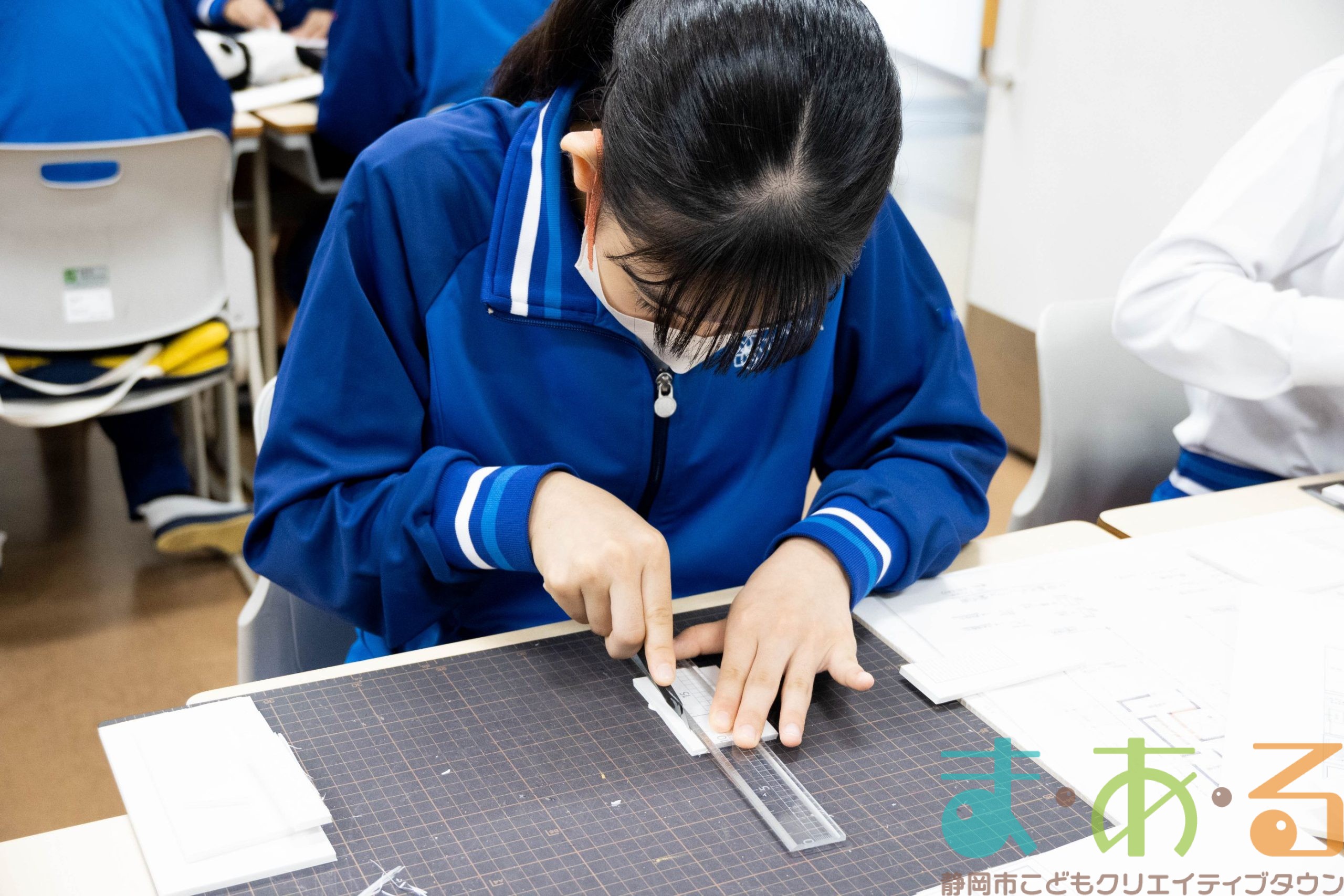 講話の後は生徒の皆さんにも建築模型作りを体験してもらいました。