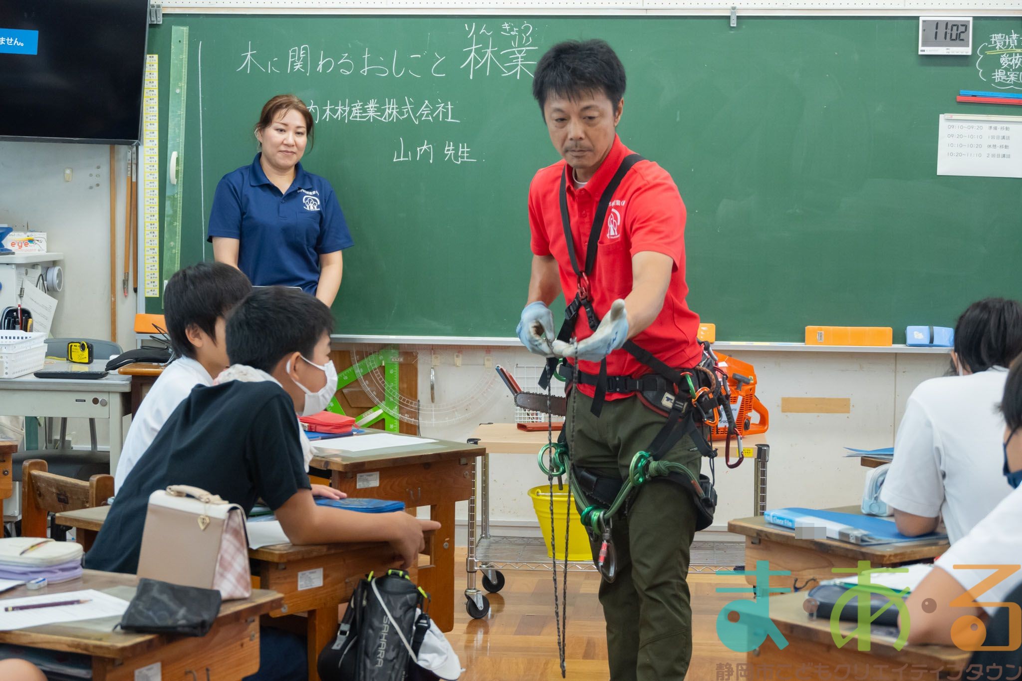 最初に林業は森林を守りながら「木材」を生産していく大事なおしごとというお話をしていただきました。