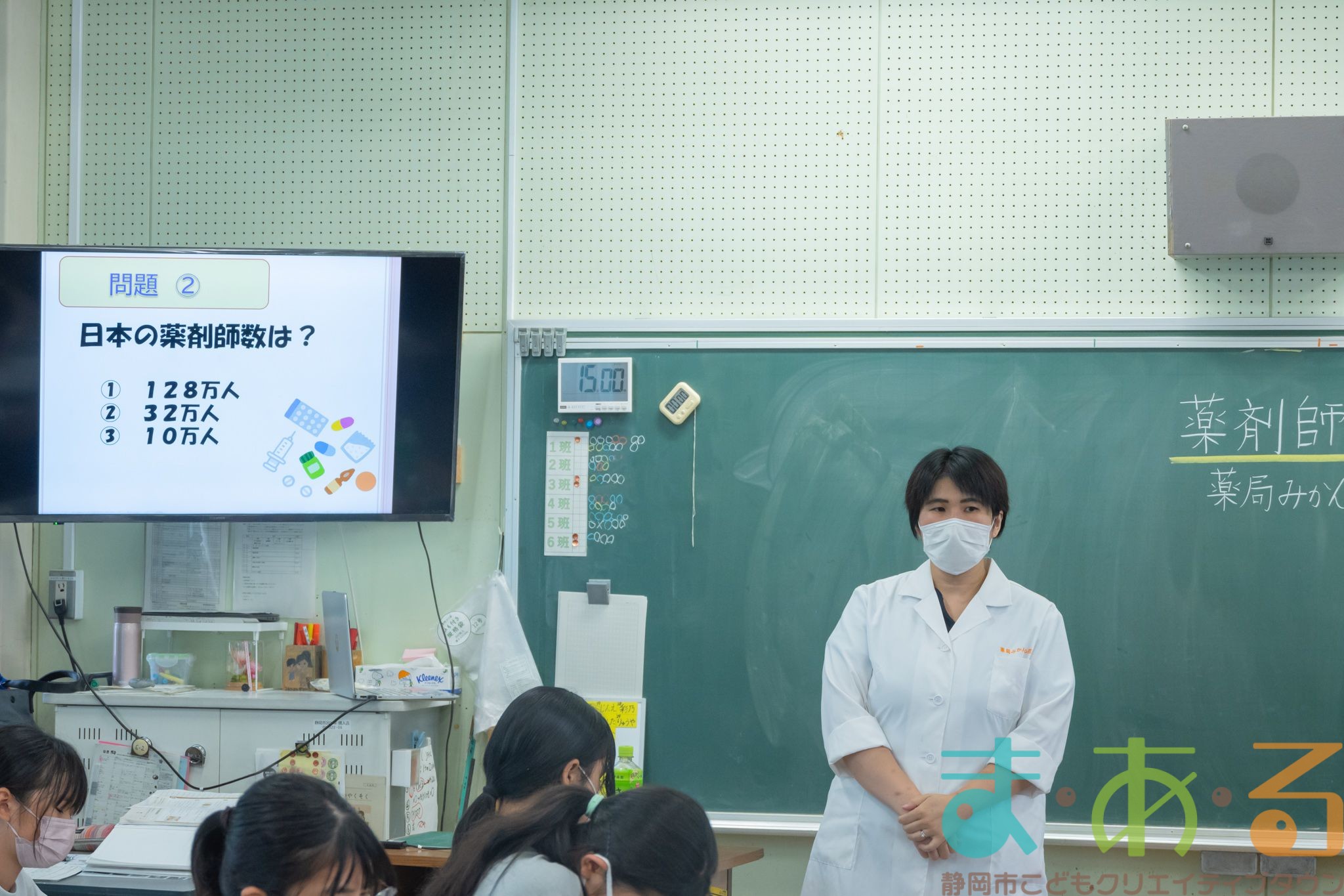 日本には、薬局が約6万店あるそうです。そこで働いている薬剤師さんは約32万人!とてもたくさんの薬剤師さんが薬局で働いていることがわかり、参加者のみなさんは、とても驚いていました。