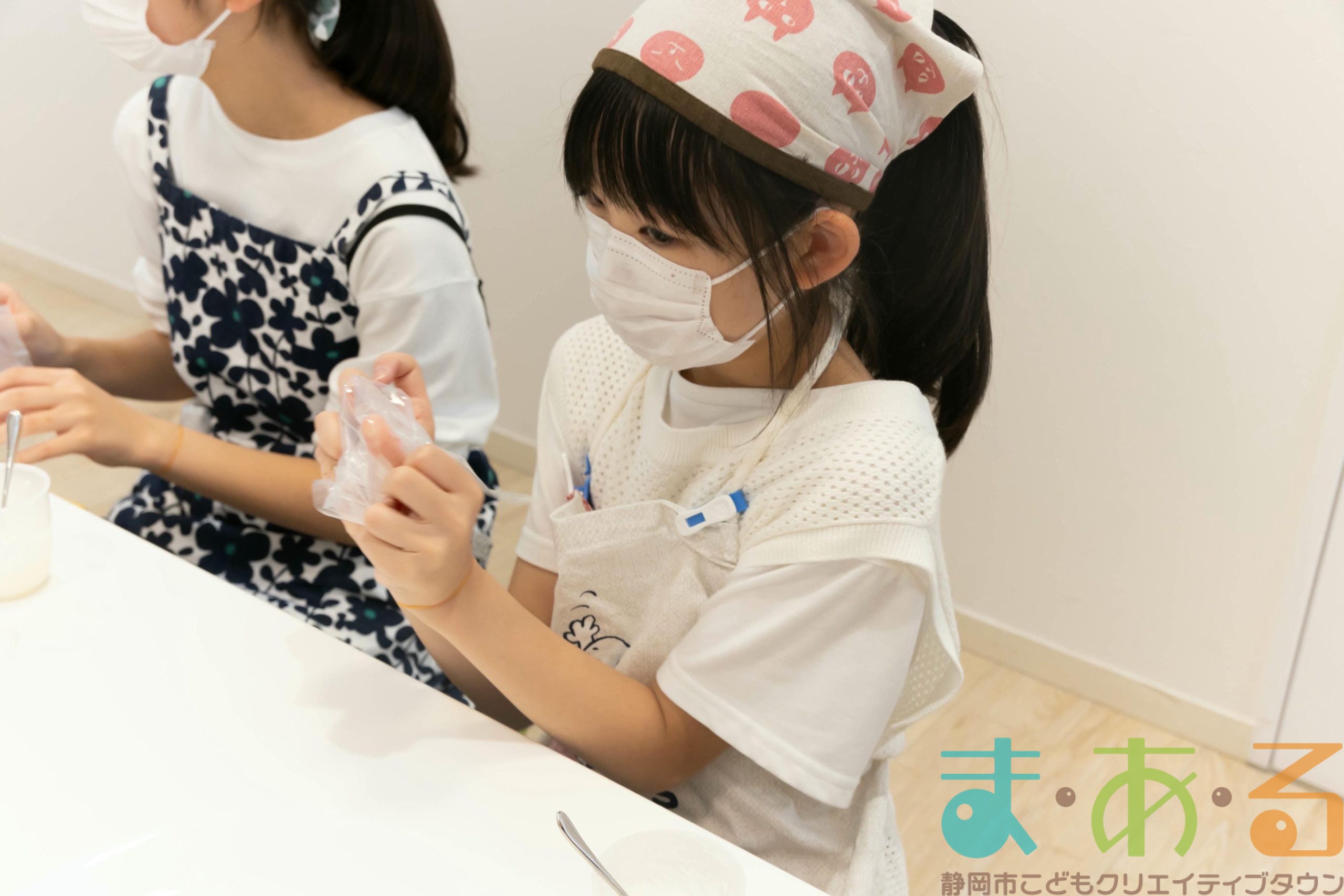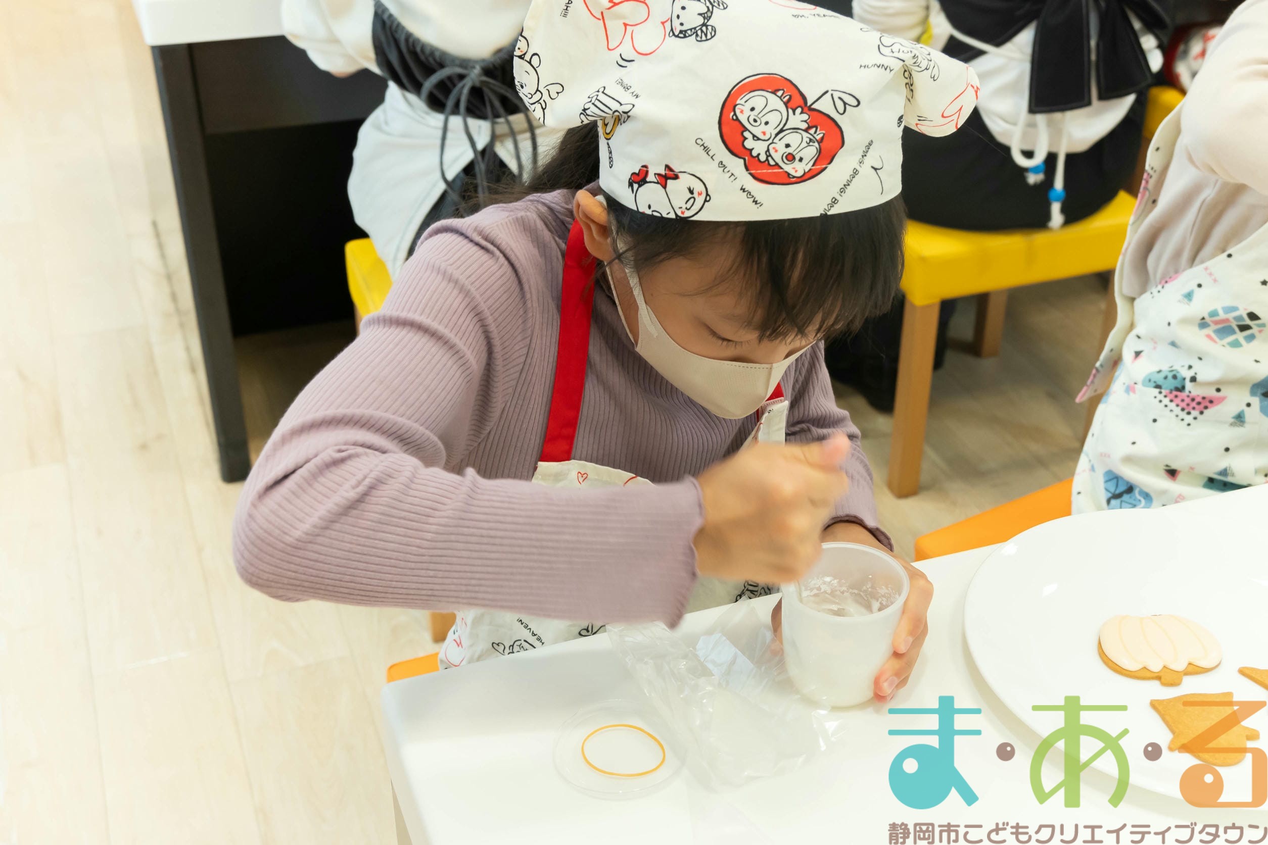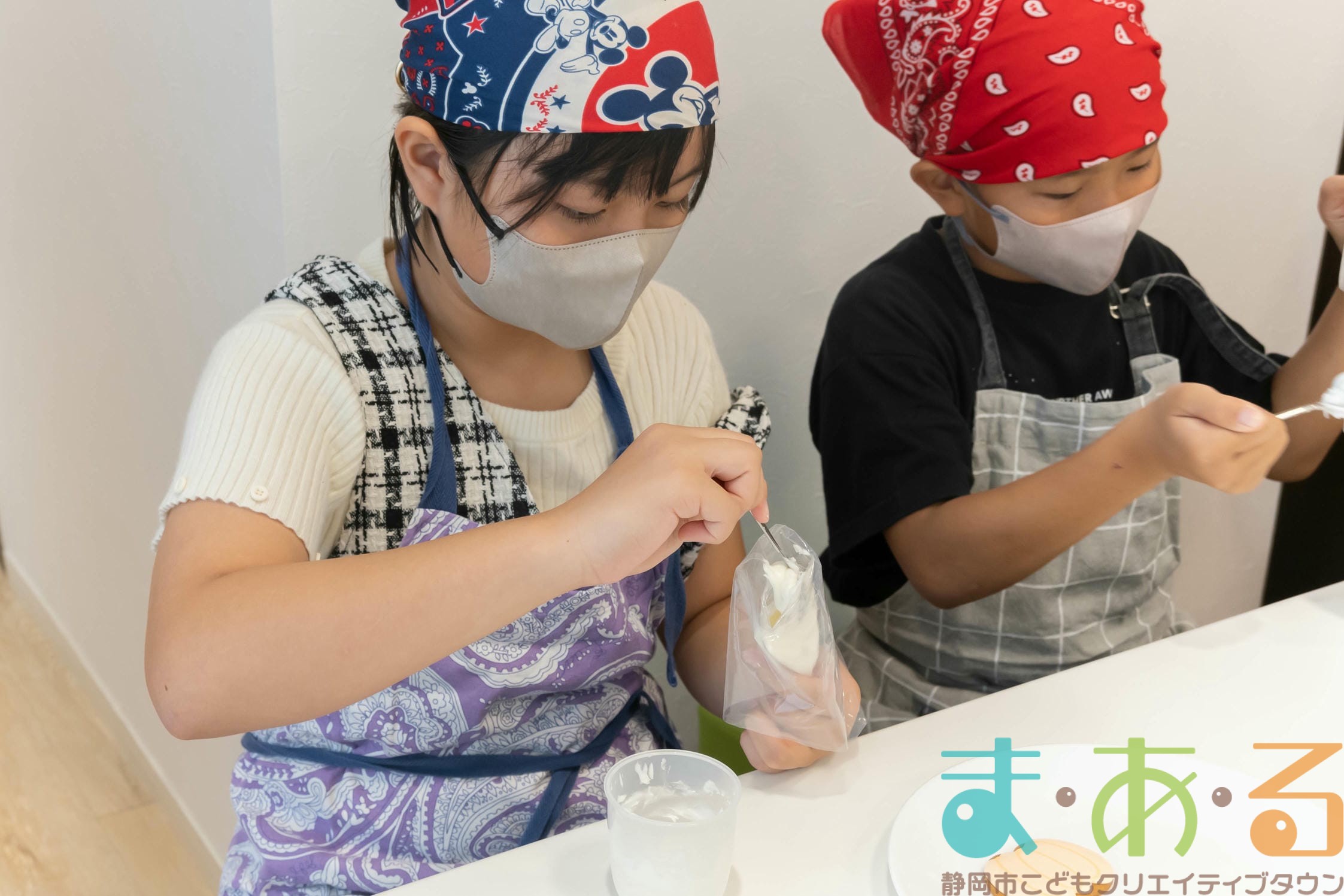 クリームが固い子にはレモン汁、やわらかい子には粉砂糖を加え先生が固さを調整してくれました。